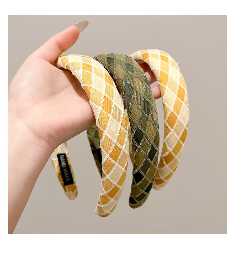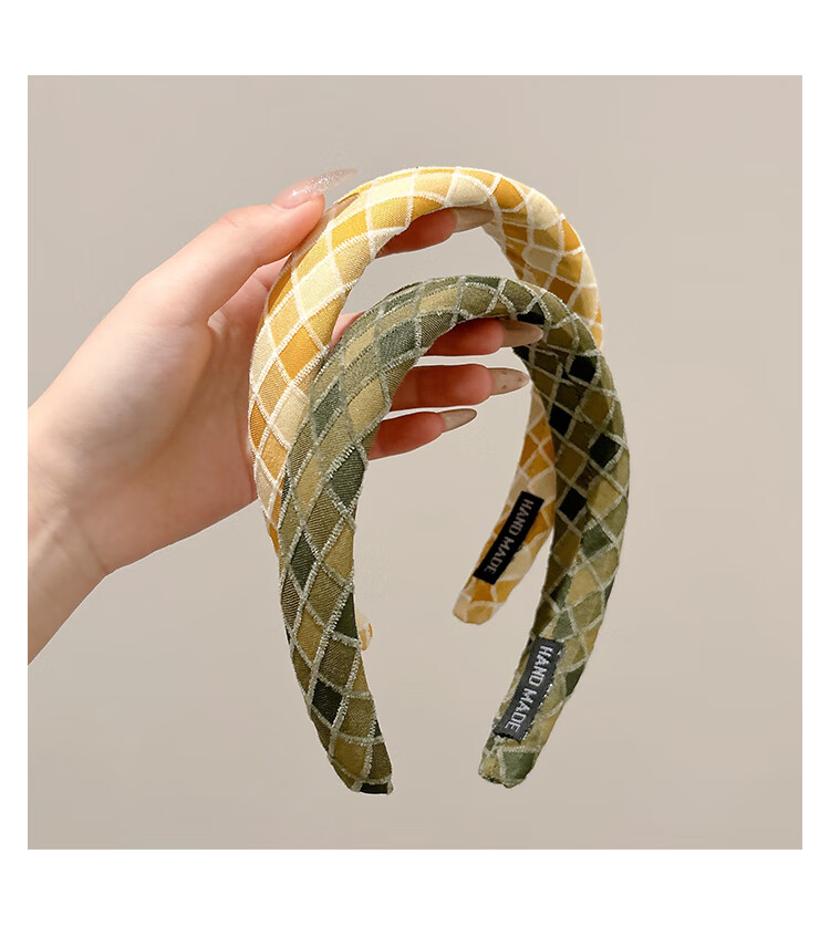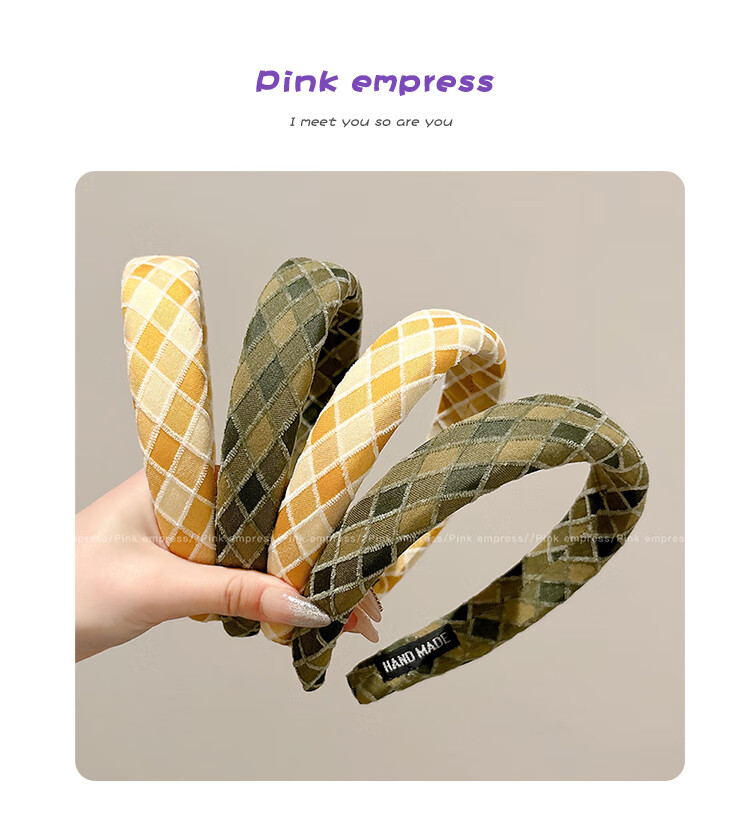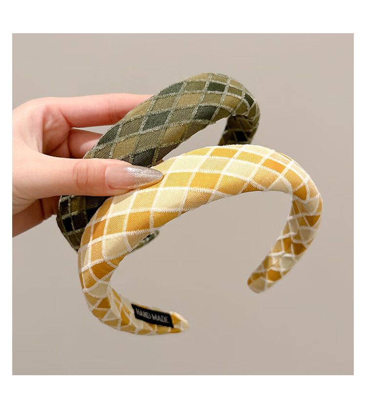 2025 new style sponge plaid high skull wide edge headband for women retro wind pressure hair headband high-end hairpin headwear 7# blue plaid headband-3cm