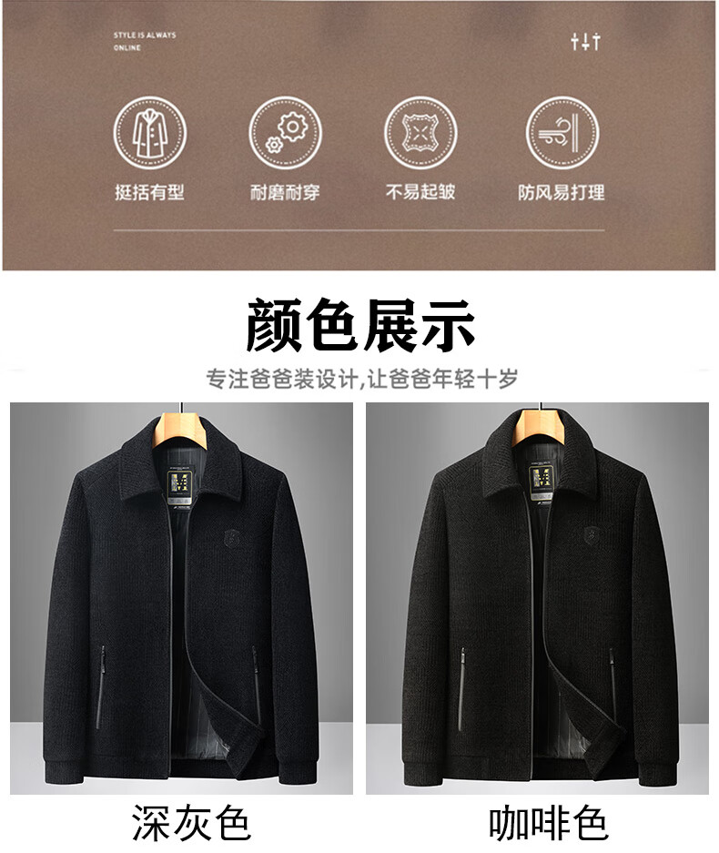 Dad's autumn jacket, middle-aged and elderly casual jacket, elderly loose chenille grandpa top, spring, autumn and winter men's clothing, brown 2XL 180 yards 120-140Jin Jin is equal to 0.5 kg