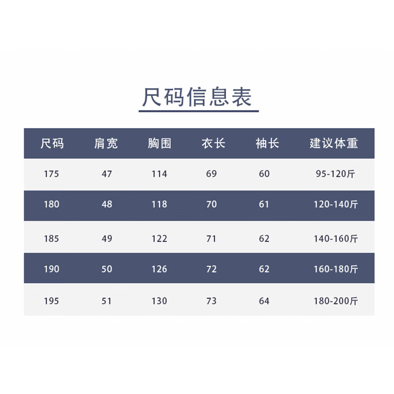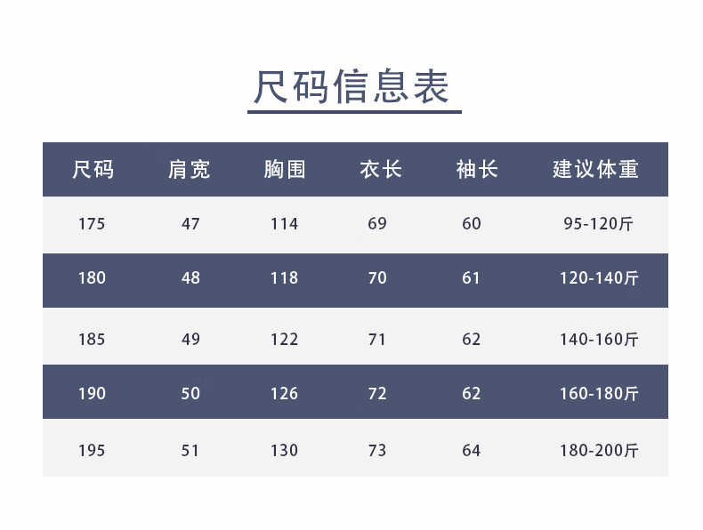 China (cm) 165 / 88-90 170 / 96-98 175 / 108-110 180 / 118-122 185 / 126-130
