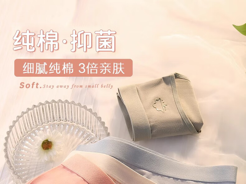 Pure cotton underwear for women, antibacterial and antibacterial, 100% cotton interior, comfortable, skin-friendly and breathable, mid-waist briefs for girls, 1 pack - random color L (105-125Jin Jin equals 0.5kg)