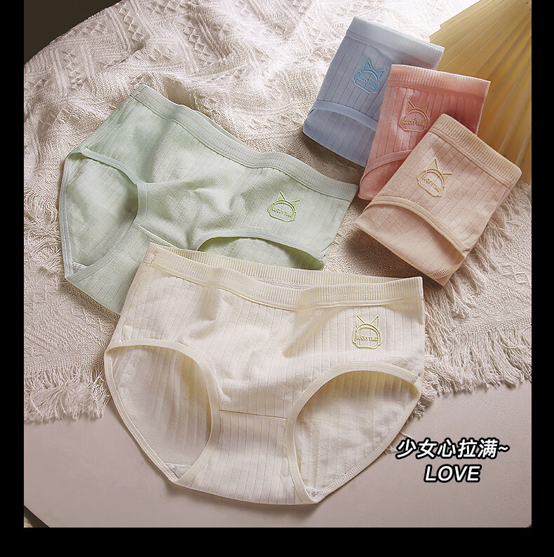 Simple cotton underwear for women 100% cotton 7A antibacterial inner profile, comfortable, breathable and skin-friendly women's mid-waist briefs 1 pair - random color L (100-125Jin Jin equals 0.5kg)