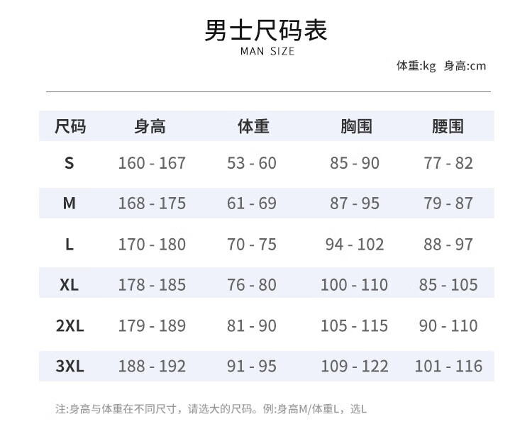 China (cm) 160-165/84-86 165-170 / 88-90 167-172 / 92-96 168-173 / 98-102 170-176 / 106-110