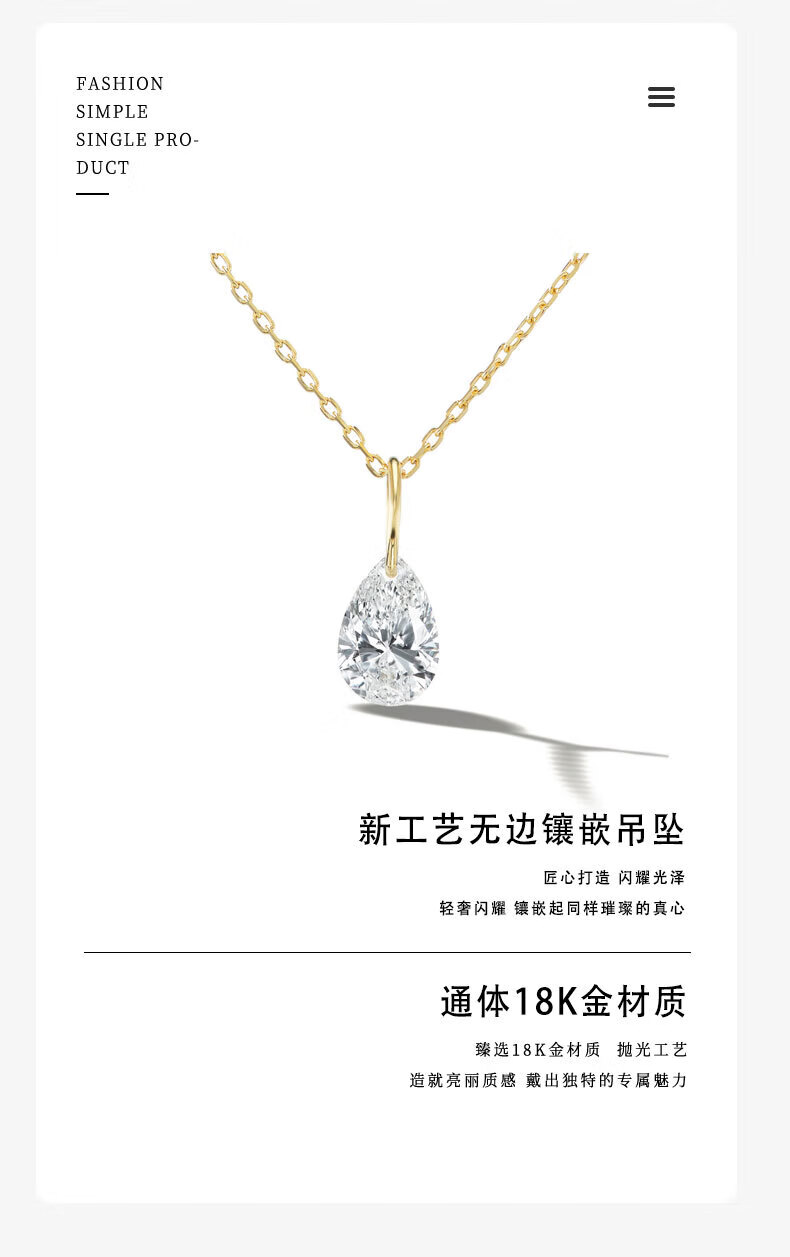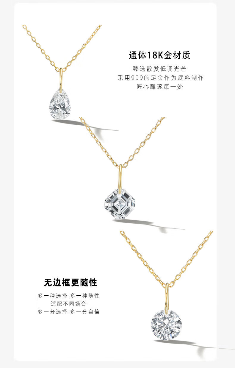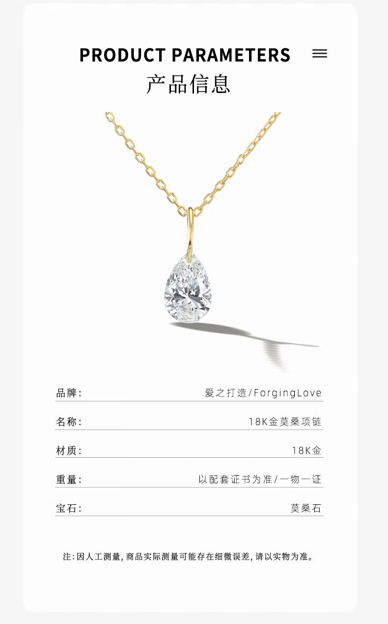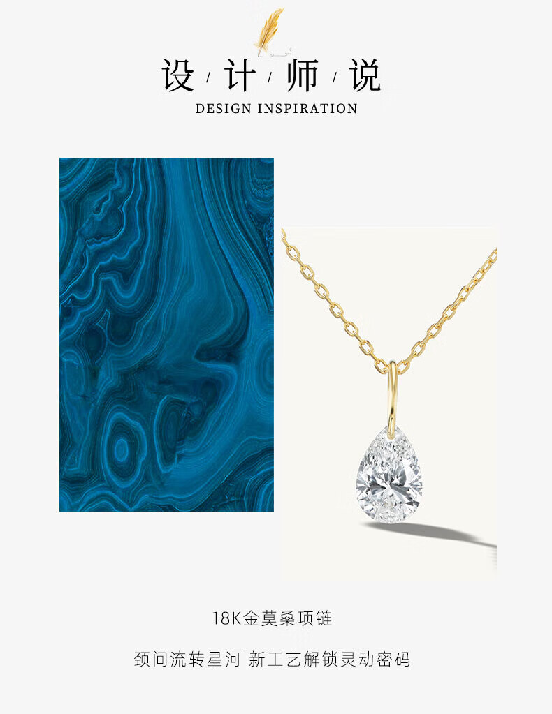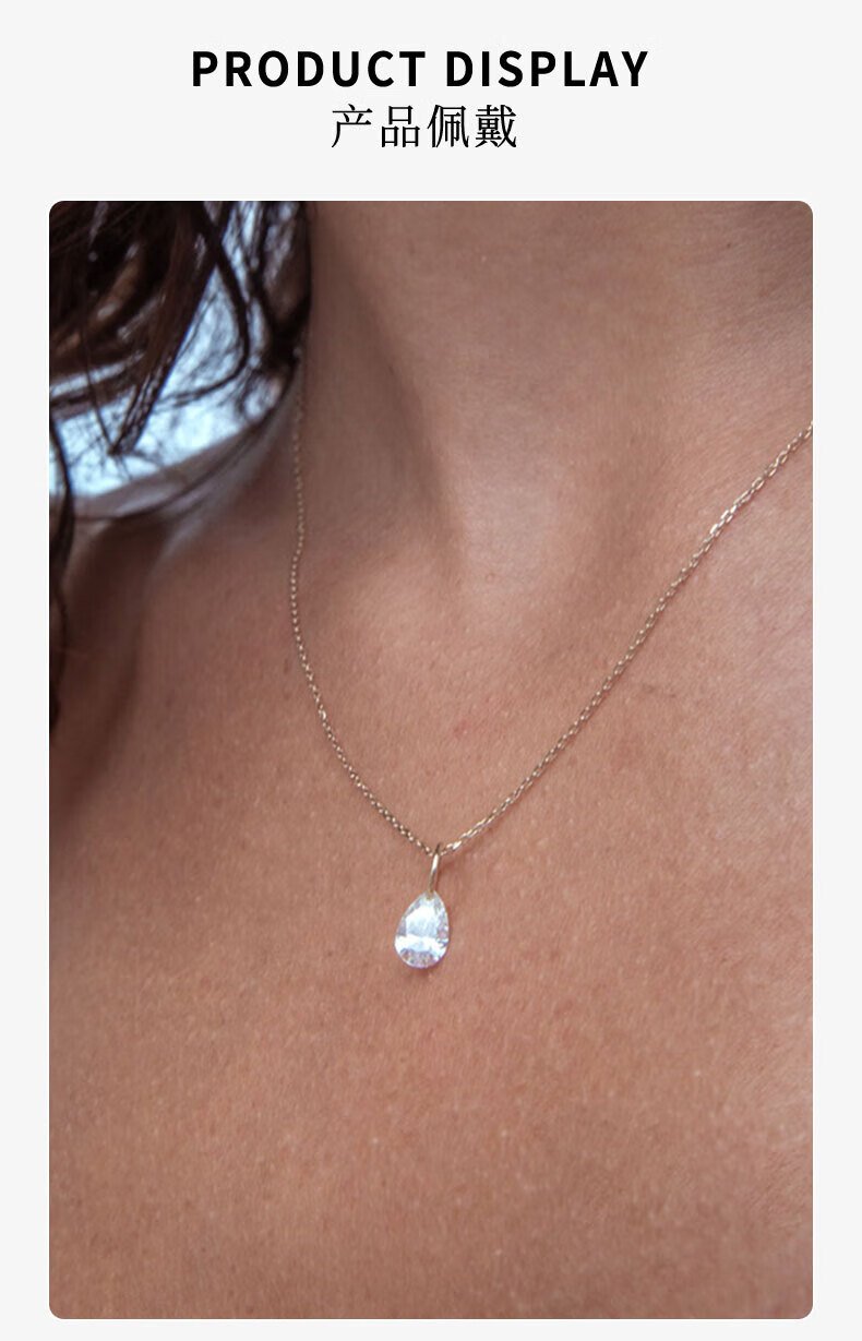 Quan Yin Pure 18K Gold Needle Pull Necklace for Women Perforated Moissanite Clavicle Set 520 Gift for Girlfriend Water Drop Pendant + Necklace Set