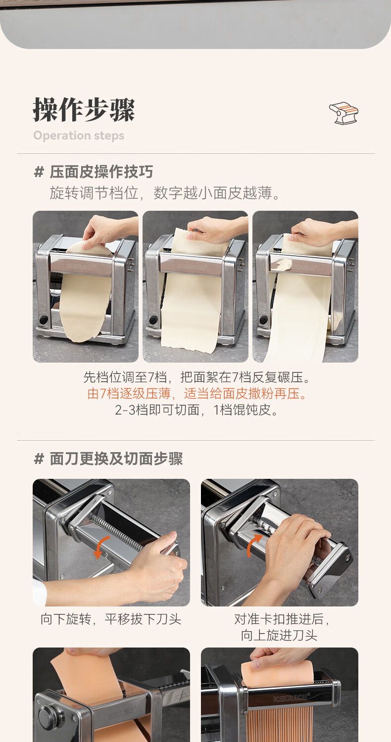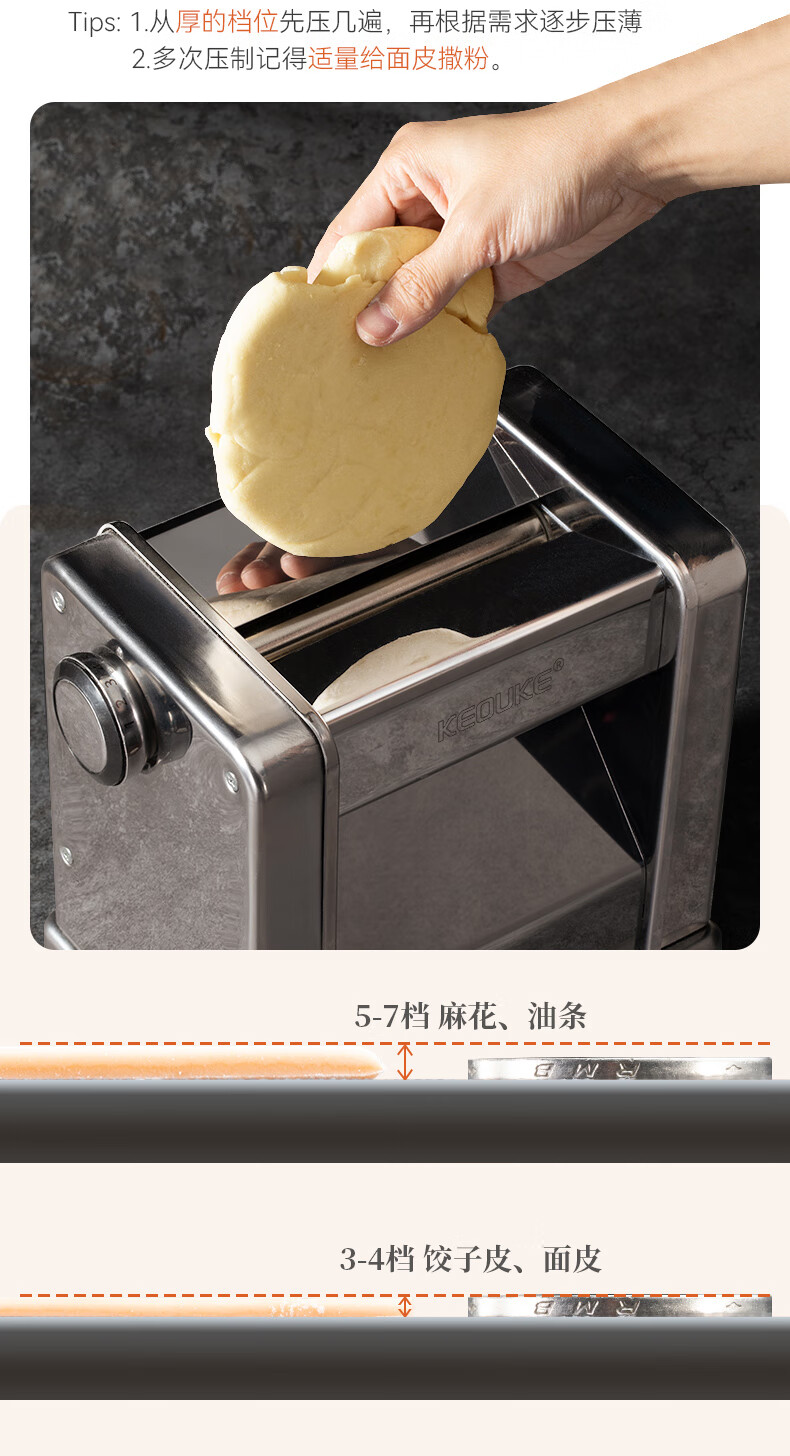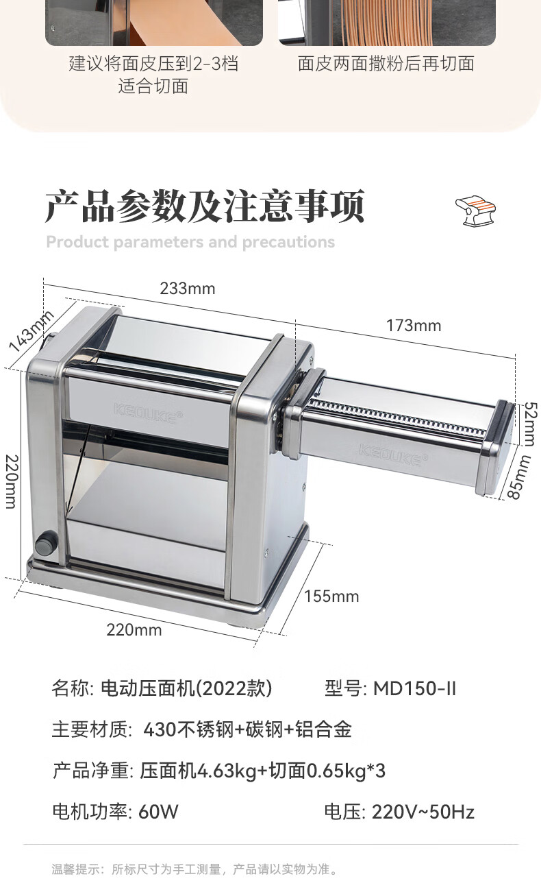 Keok noodle press machine noodle cutter household stainless steel electric noodle machine small pressed noodle machine wonton wrapper dumpling wrapper .5mm)
