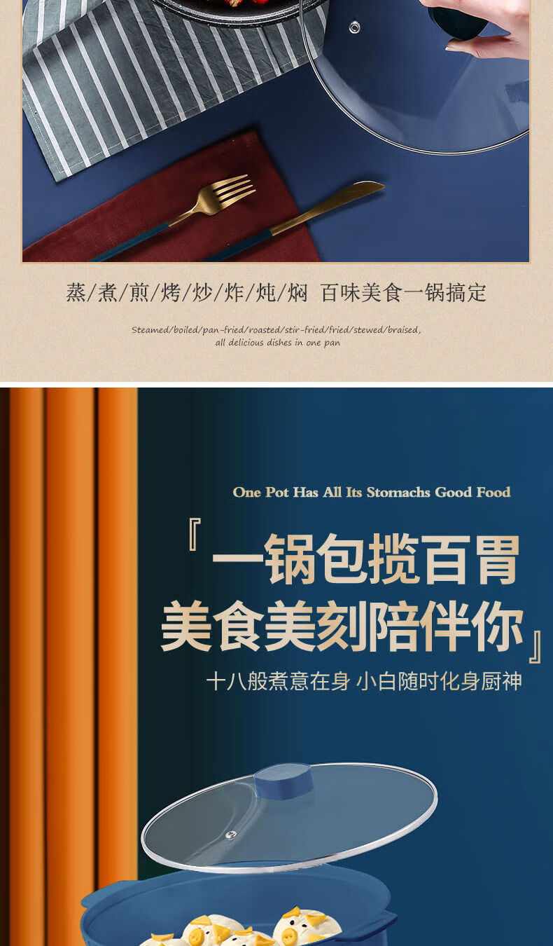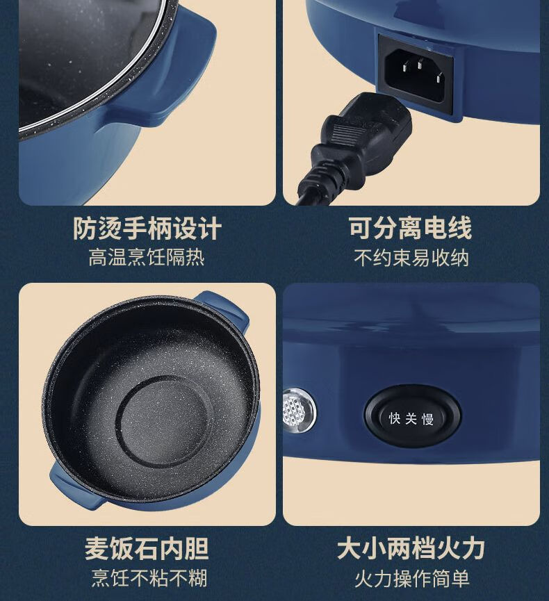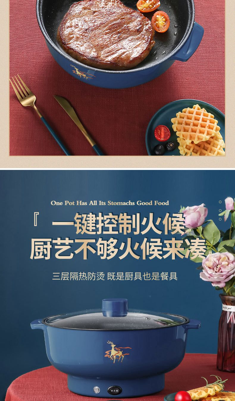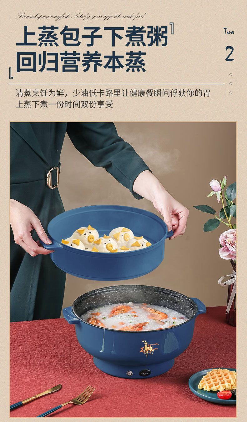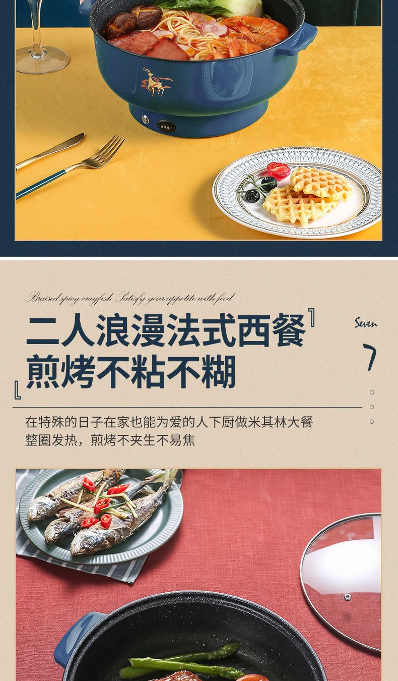 WESTT RIVER exports German electric hot pot for household all-in-one cooking, electric wok, multi-functional cooking pot, steaming, frying and non-stick white old double-eared pot 0cm 2.5L anti-leakage (non-stick pot) for frying and rinsing, for 1-3 people 20