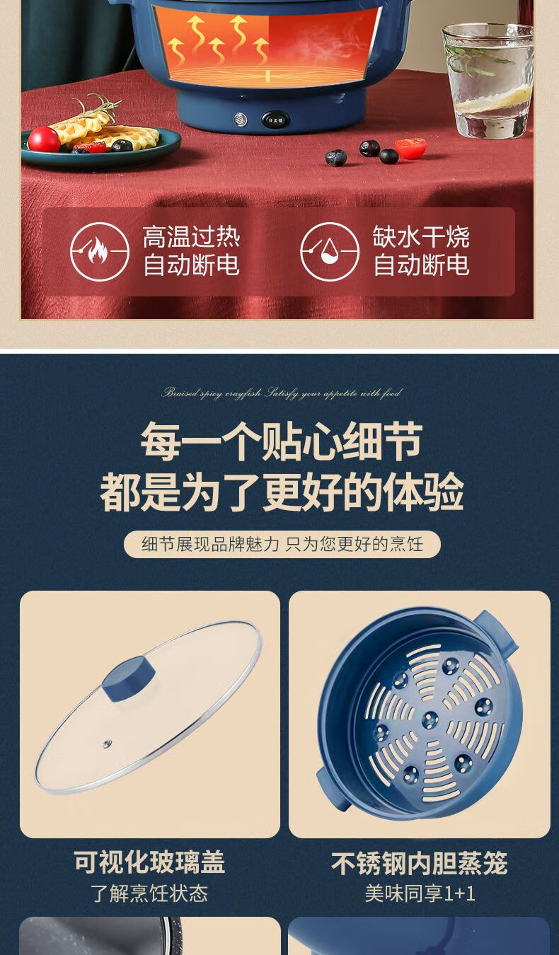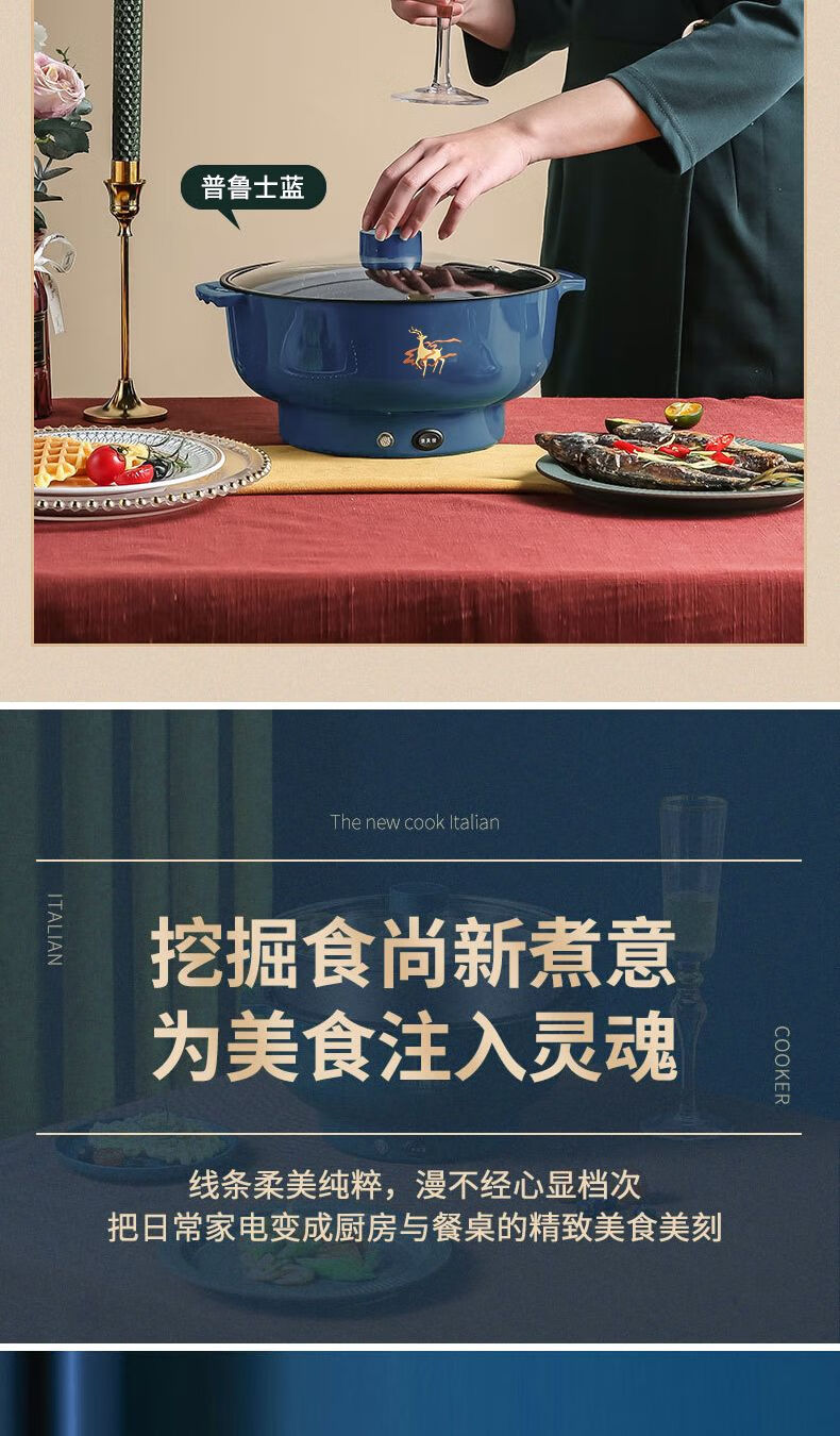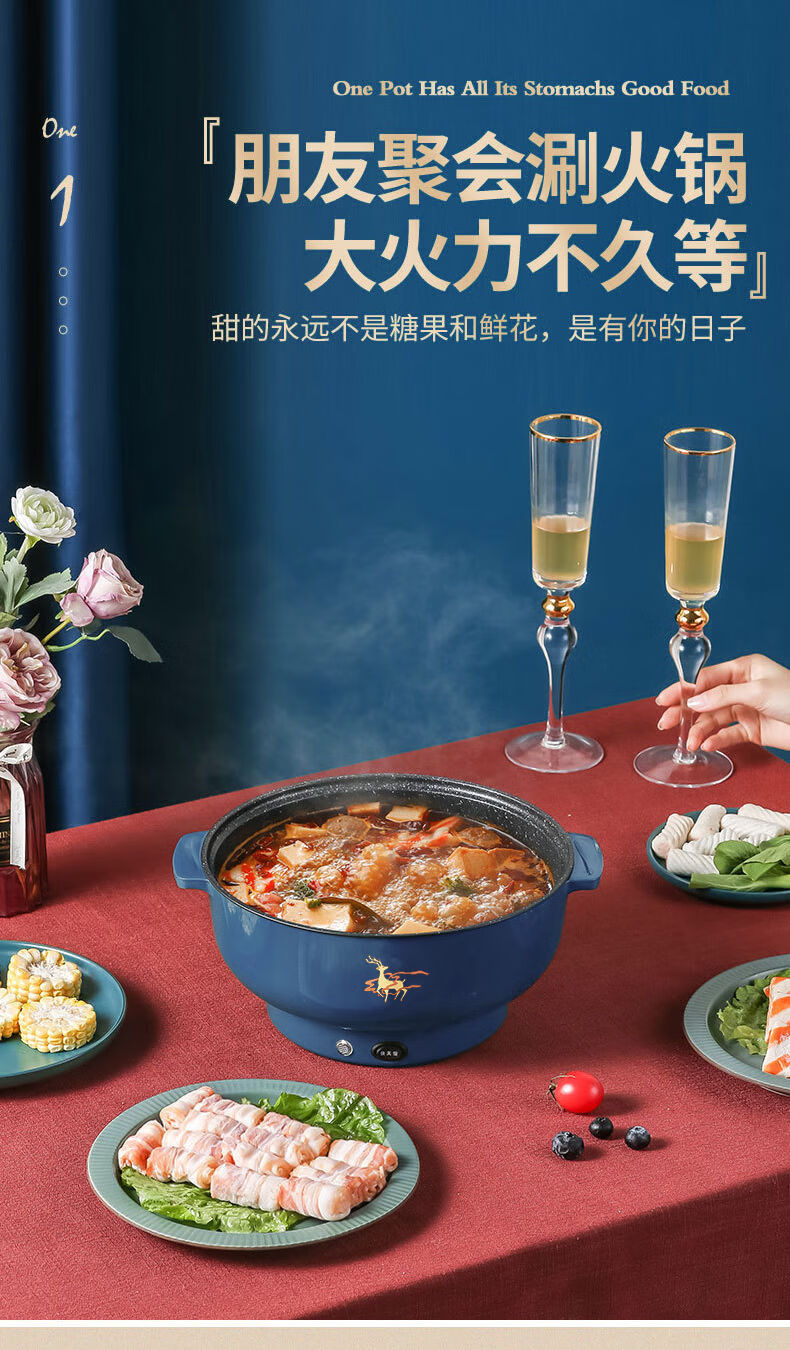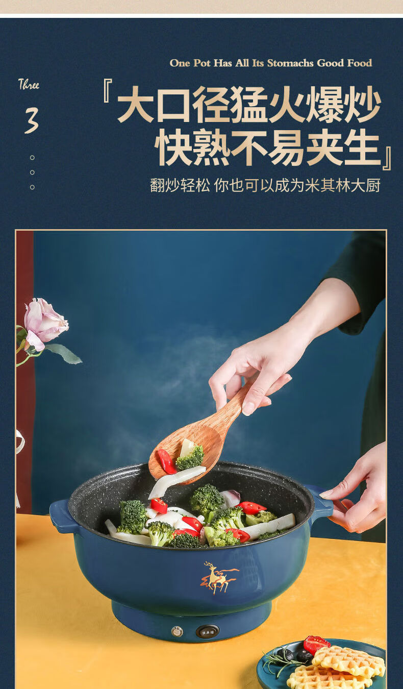 WESTT RIVER exports German electric hot pot for household all-in-one cooking, electric wok, multi-functional cooking pot, steaming, frying and non-stick white old double-eared pot 0cm 2.5L anti-leakage (non-stick pot) for frying and rinsing, for 1-3 people 20