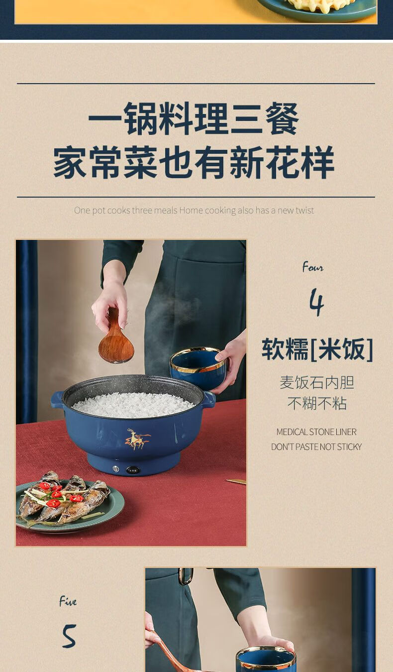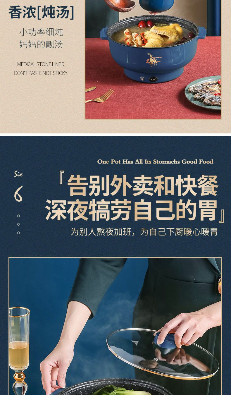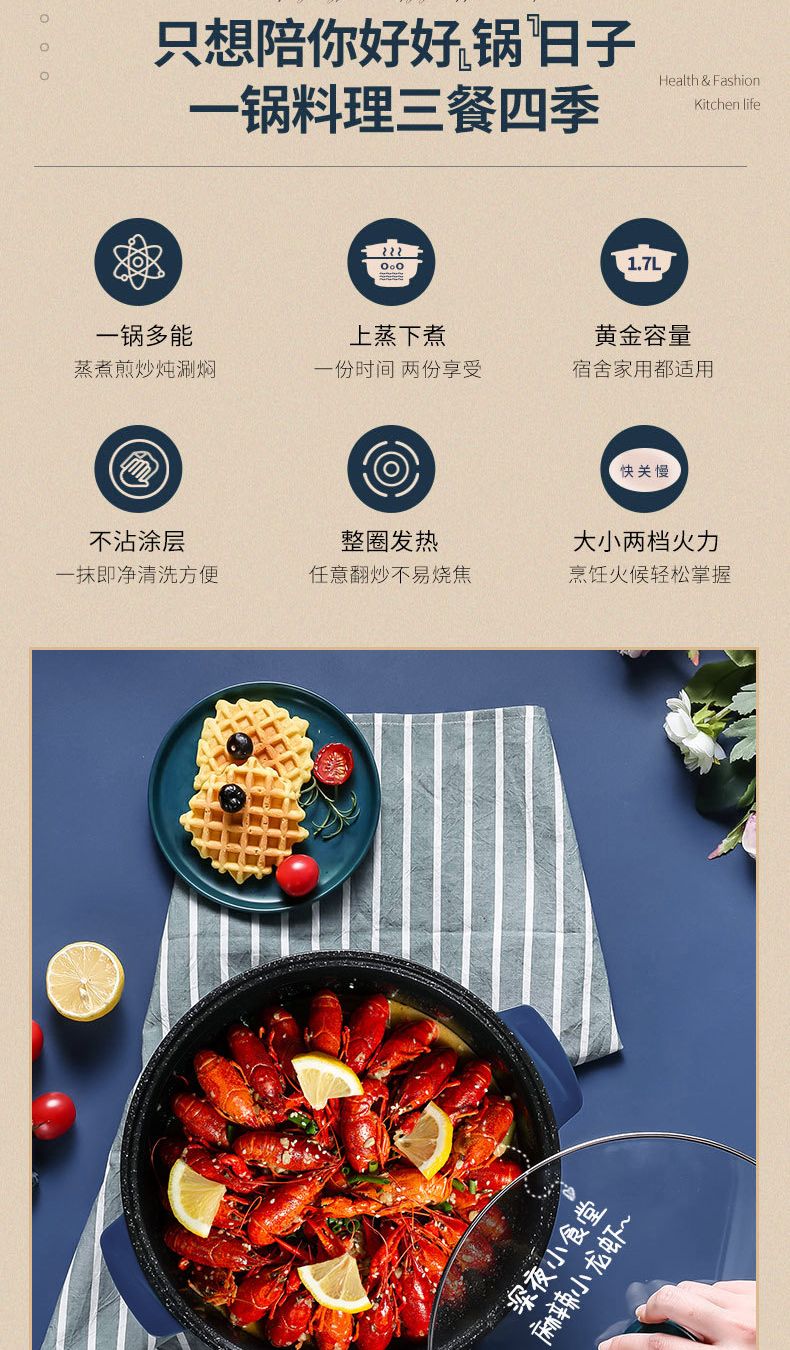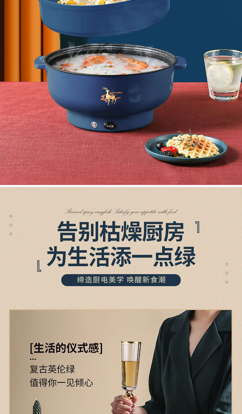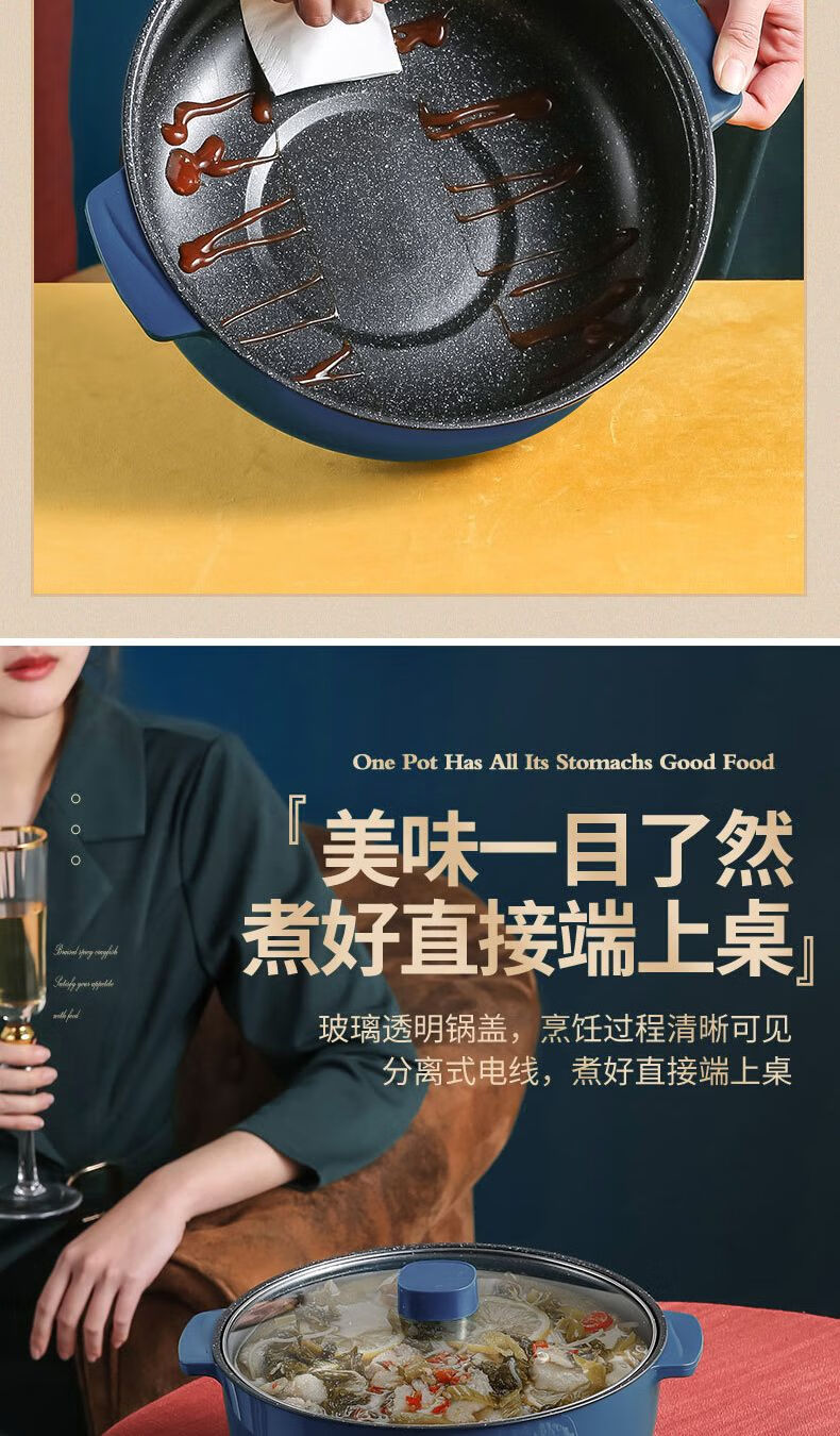 WESTT RIVER exports German electric hot pot for household all-in-one cooking, electric wok, multi-functional cooking pot, steaming, frying and non-stick white old double-eared pot 0cm 2.5L anti-leakage (non-stick pot) for frying and rinsing, for 1-3 people 20