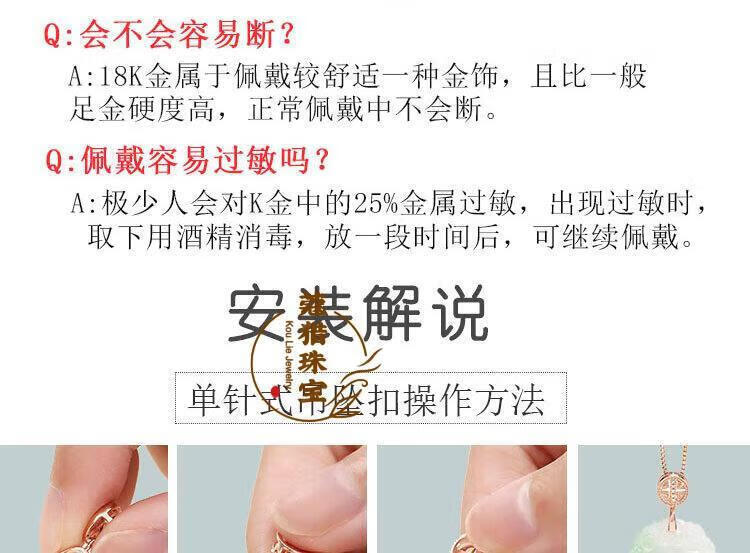 Lanlian jade buckle 18k gold pendant buckle jade buckle clip Au750 rose gold gold platinum Pt950 platinum jade pendant rose gold safety buckle pendant buckle