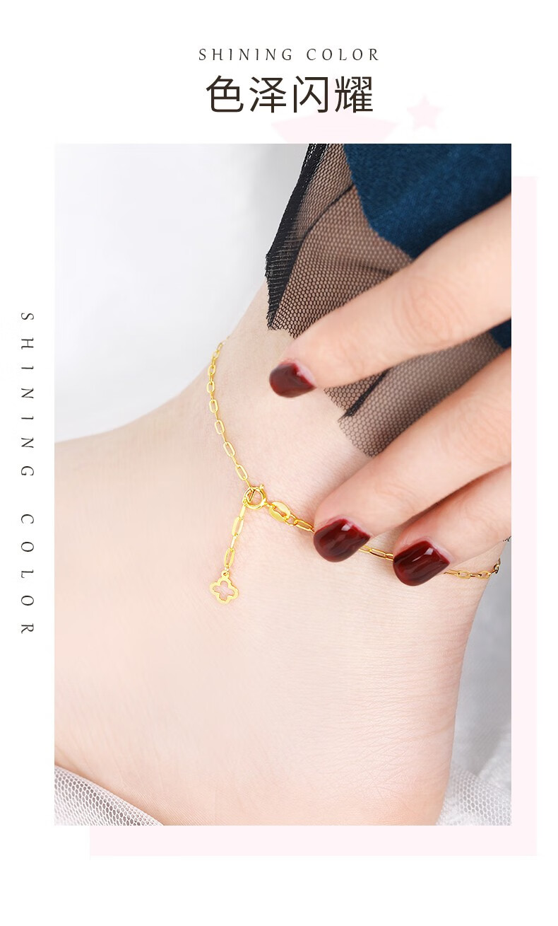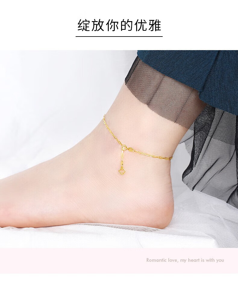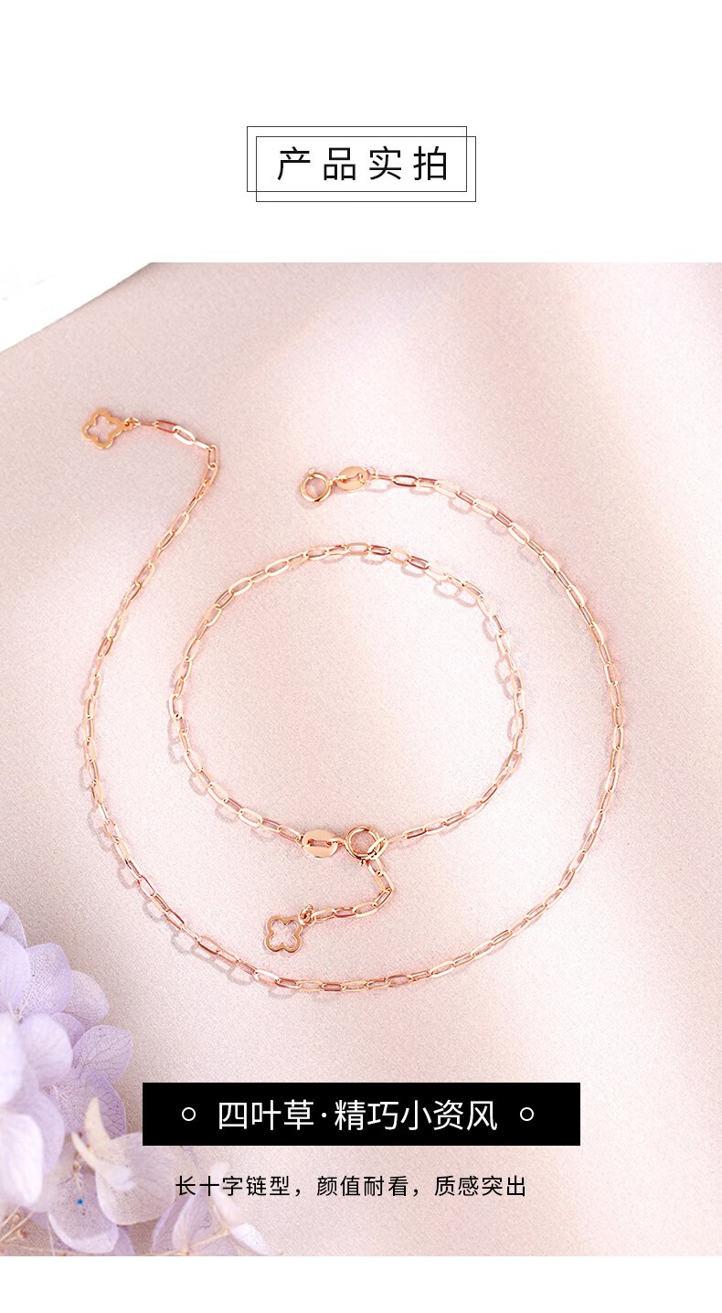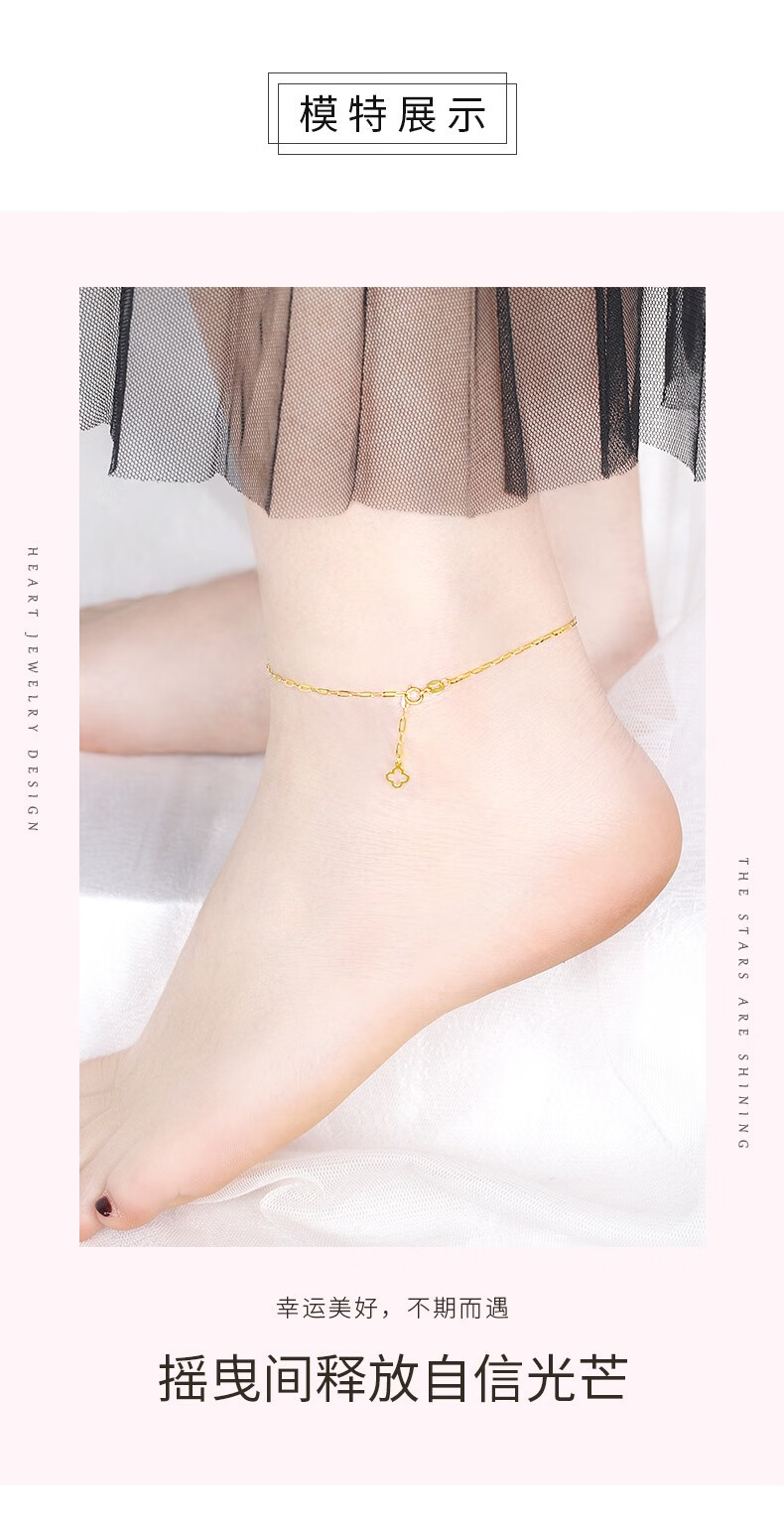 Lanlian 18K gold anklet for women, gold four-leaf clover chain chain, Valentine's Day gift for girlfriend and wife's birthday, rose gold