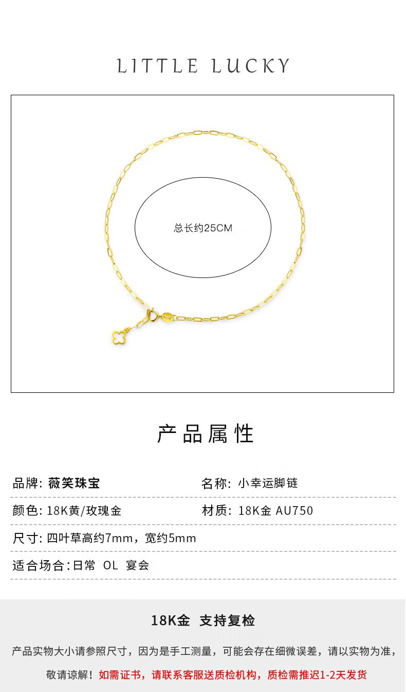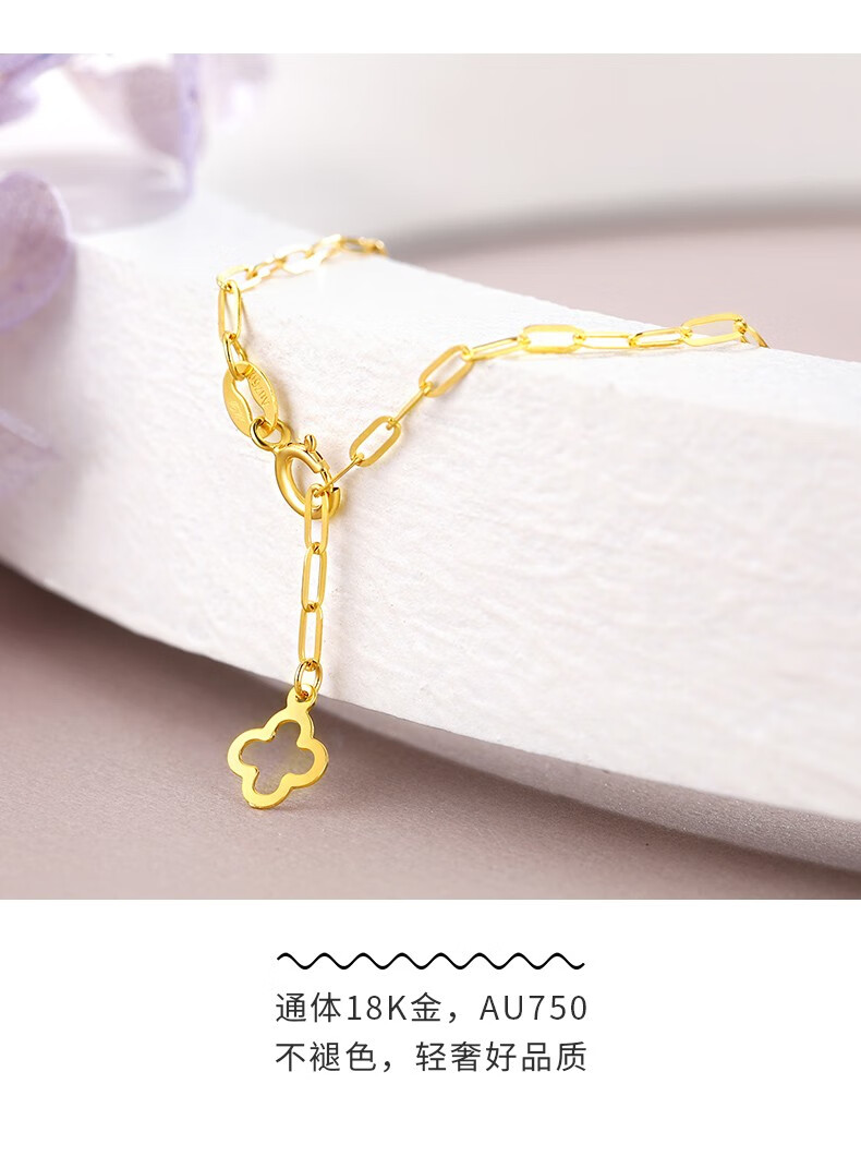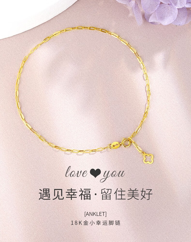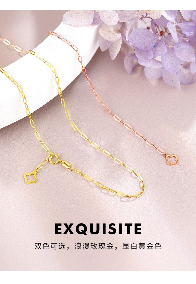 Lanlian 18K gold anklet for women, gold four-leaf clover chain chain, Valentine's Day gift for girlfriend and wife's birthday, rose gold
