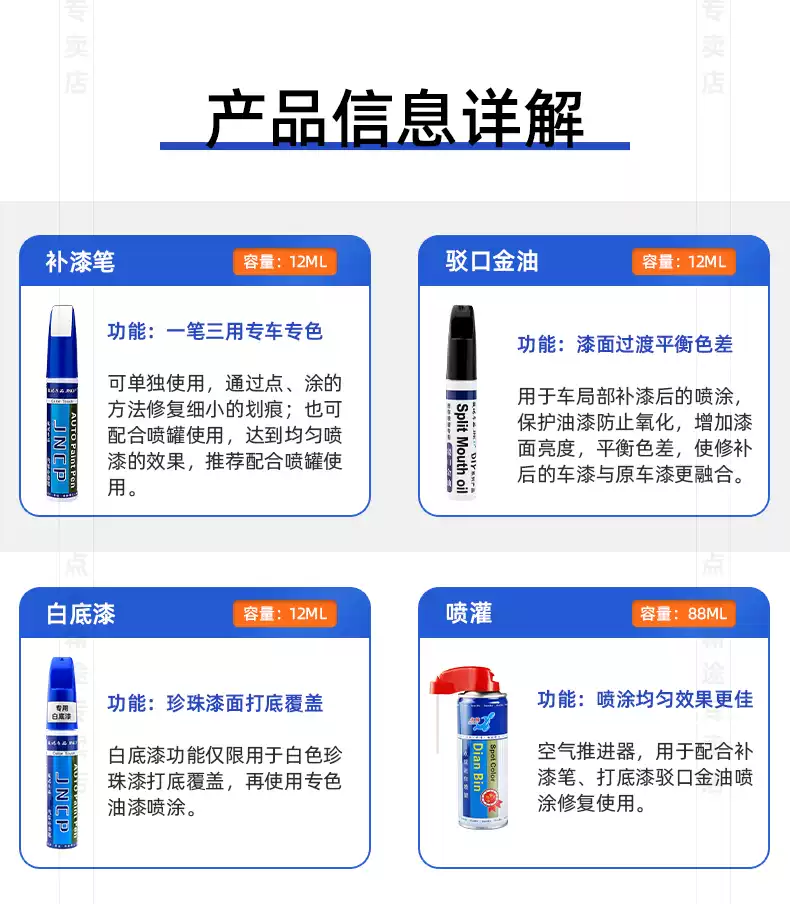 Mi Lan applies Ford Mondeo touch-up pen, Mingyue White car scratch repair artifact, Neon Gray winning self-spray paint, Tanzanite Blue 18-20 Mondeo touch-up paint set