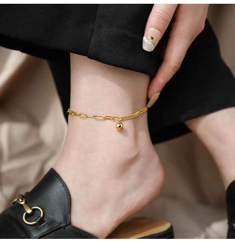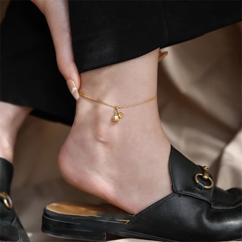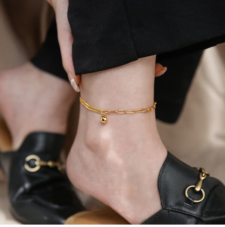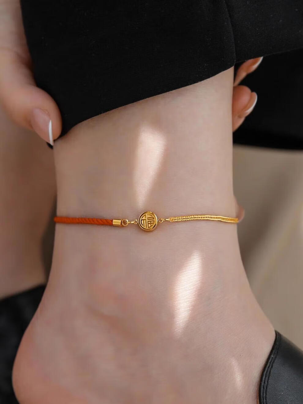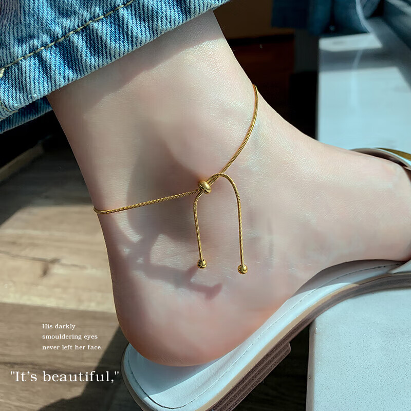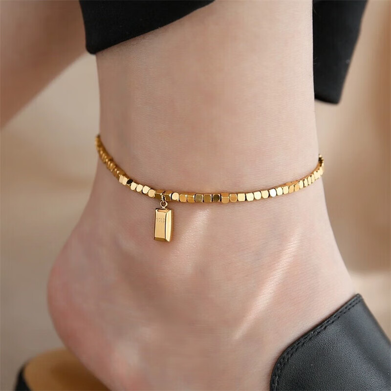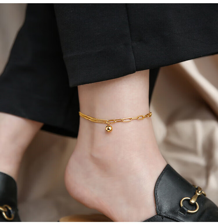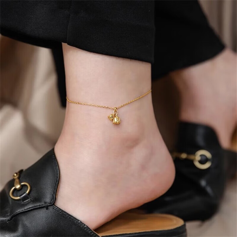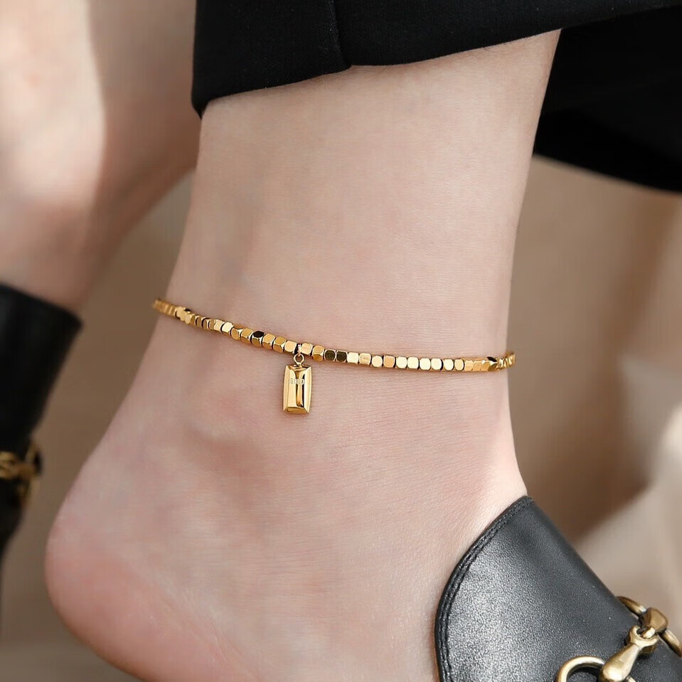 Lanlian quality 18k gold anklet titanium steel non-fading 2025 trendy design K gold-plated summer chain with blessing character