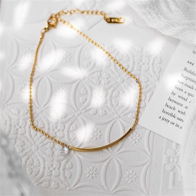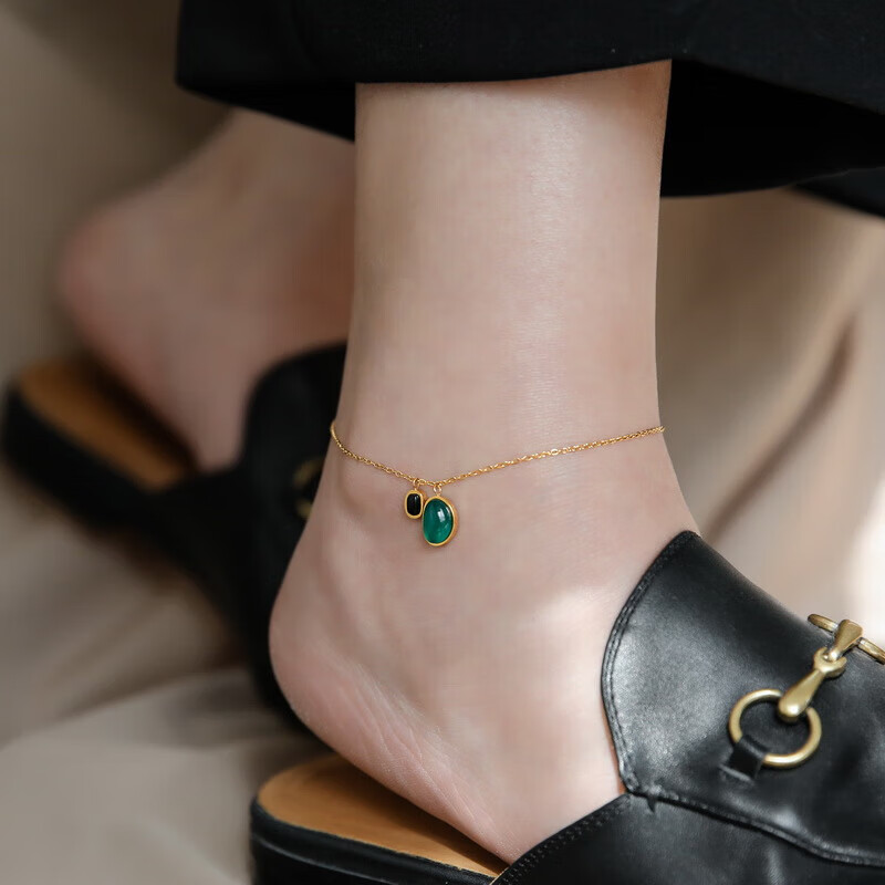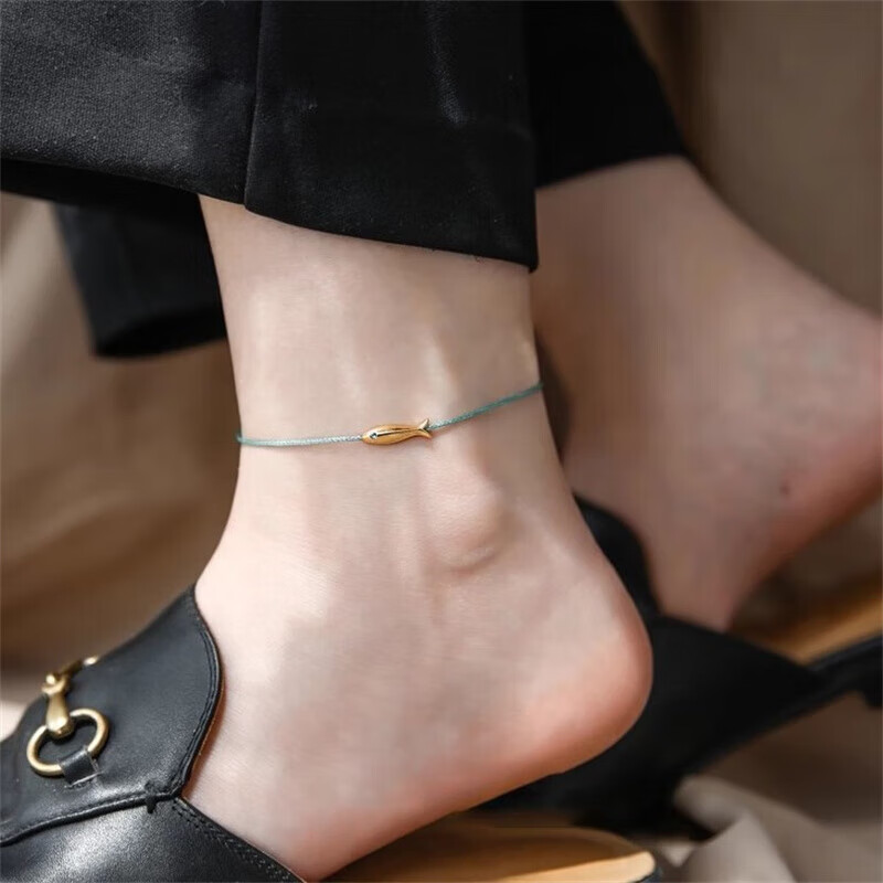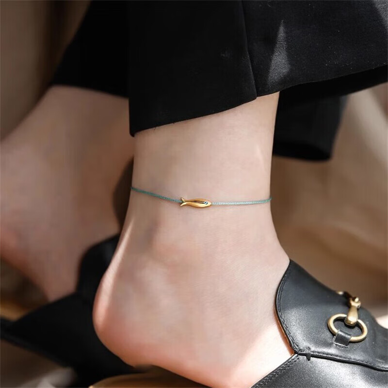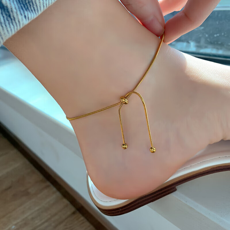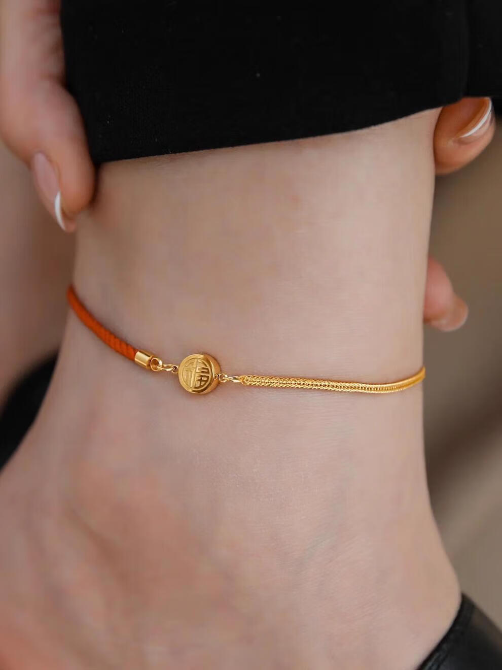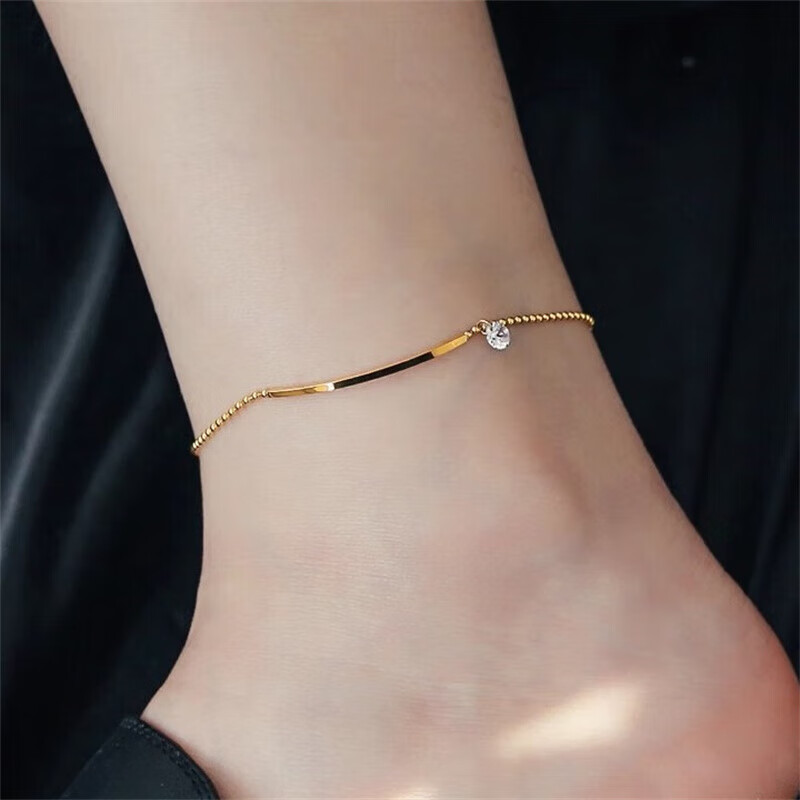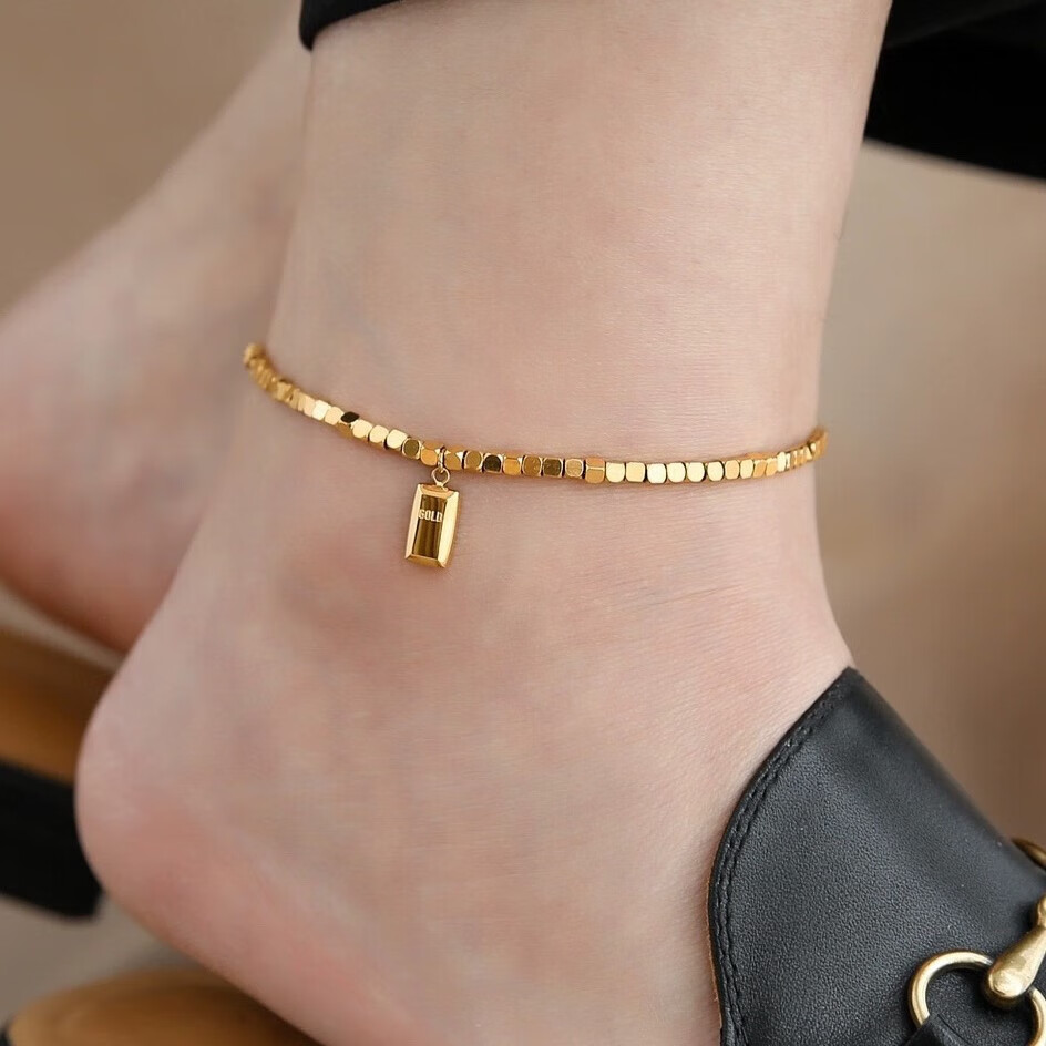 Lanlian quality 18k gold anklet titanium steel non-fading 2025 trendy design K gold-plated summer chain with blessing character