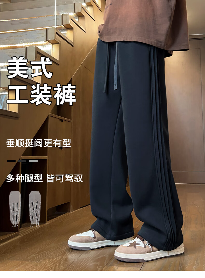 Jeanswest sweatpants men's autumn straight loose sports wide-leg casual pants 2025 new youth long pants high-grade gray XL 130-150Jin Jin equals 0.5 kg