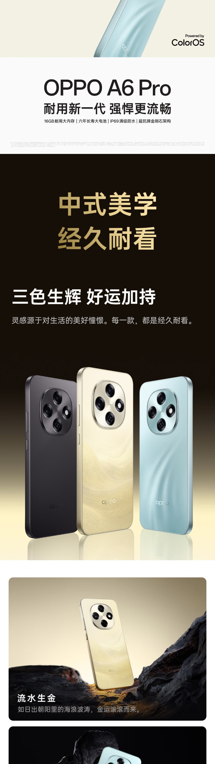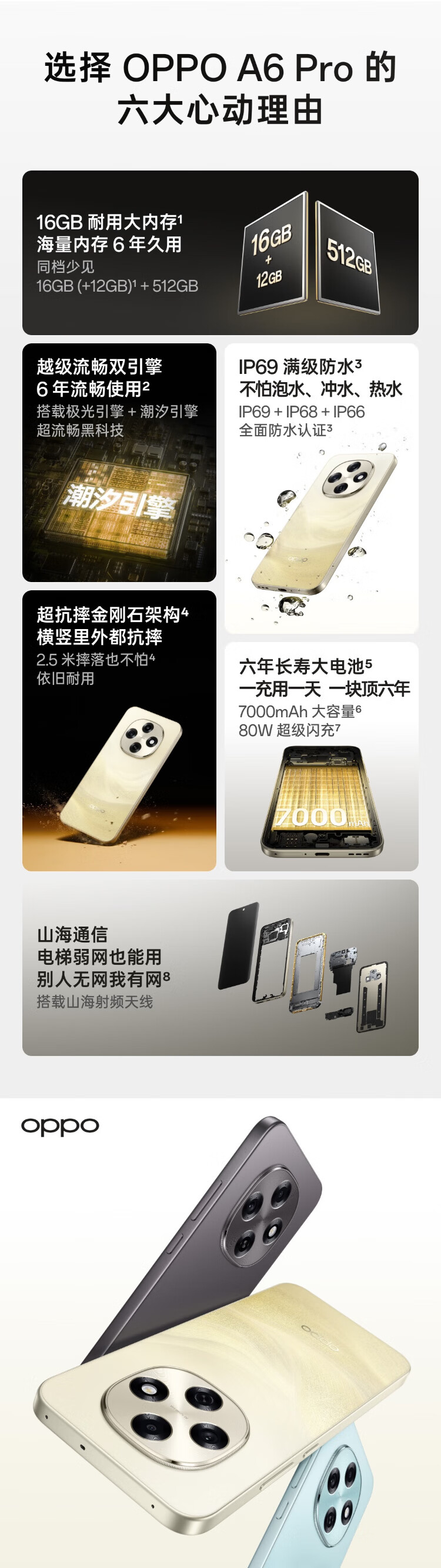 OPPO A6 Pro 5G mobile phone, durable, new generation, more powerful and smoother, 16GB, durable and large memory, super smooth dual engine, IP69, fully waterproof, money made from water, 16GB+512GB