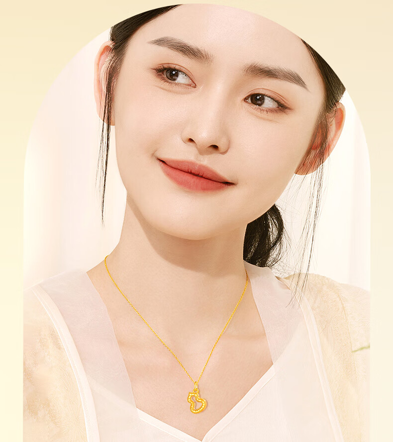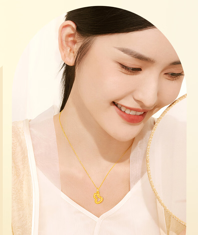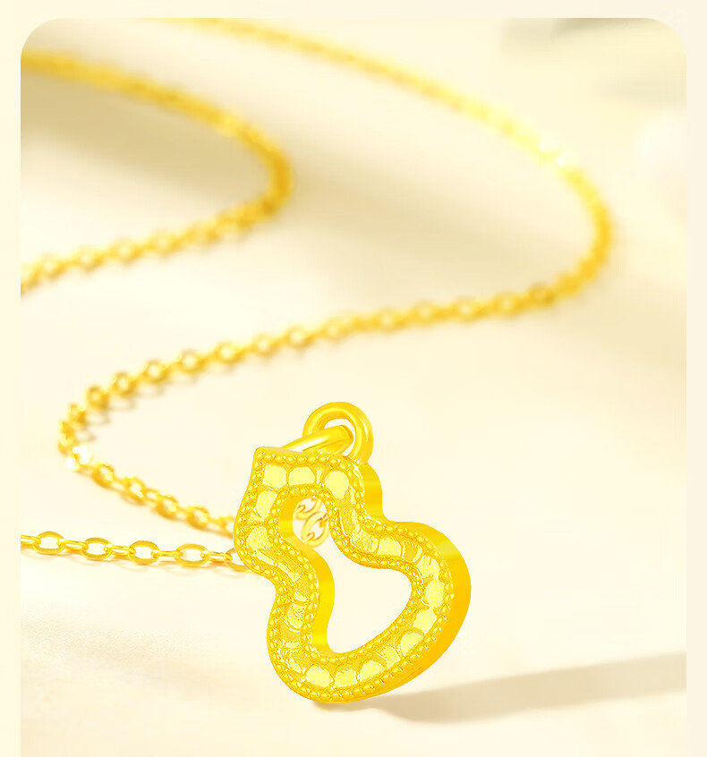 CHINA GOLD Gourd Gold Necklace Women's 18K Gold Pendant Jewelry Birthday Gift for Girlfriend Mom Wife Wedding Anniversary 18k Hollow Gourd Pendant - Free 925 Silver Chain