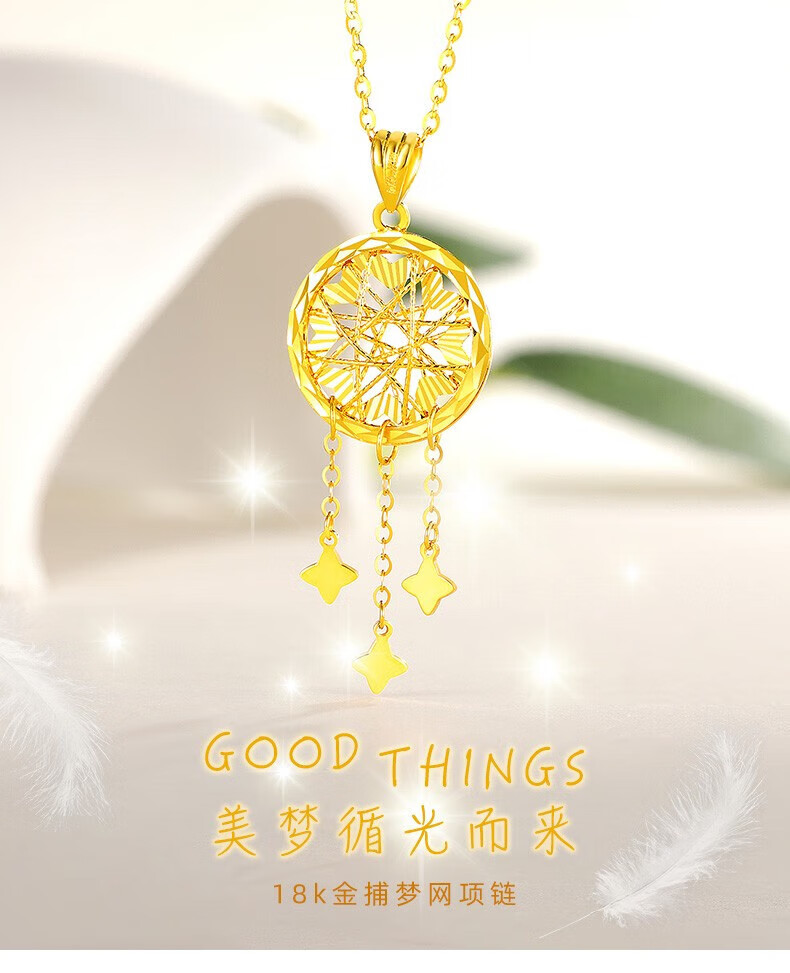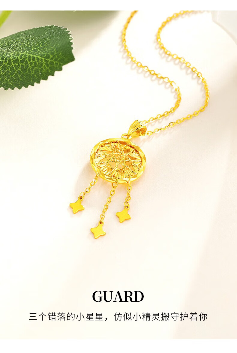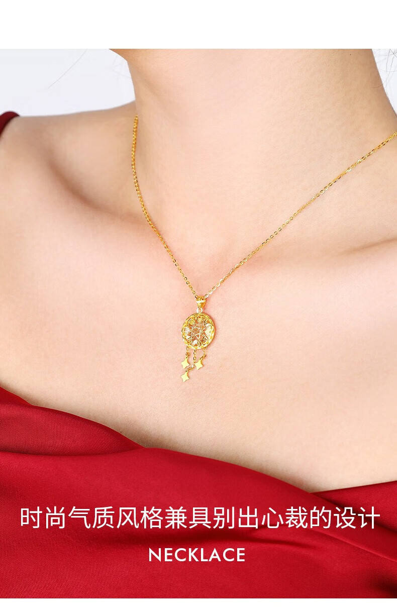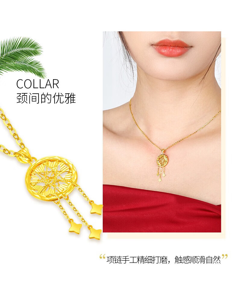 Xingu 18K gold necklace for women, gold dream catcher tassel pendant, lover's gift for girlfriend and wife's birthday, dream catcher single pendant + 18k gold chain