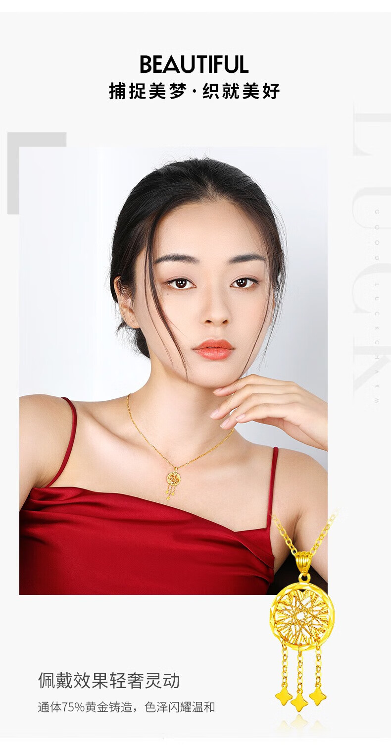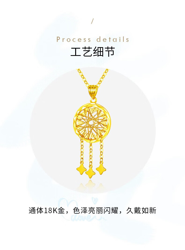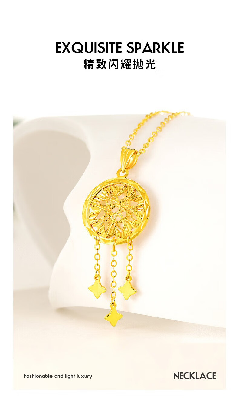 Xingu 18K gold necklace for women, gold dream catcher tassel pendant, lover's gift for girlfriend and wife's birthday, dream catcher single pendant + 18k gold chain