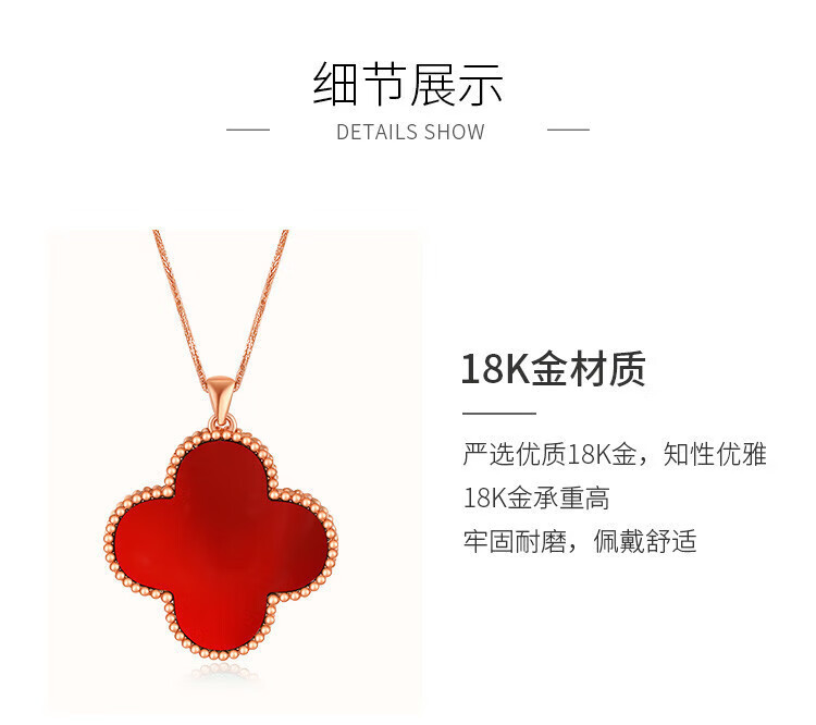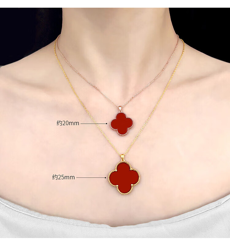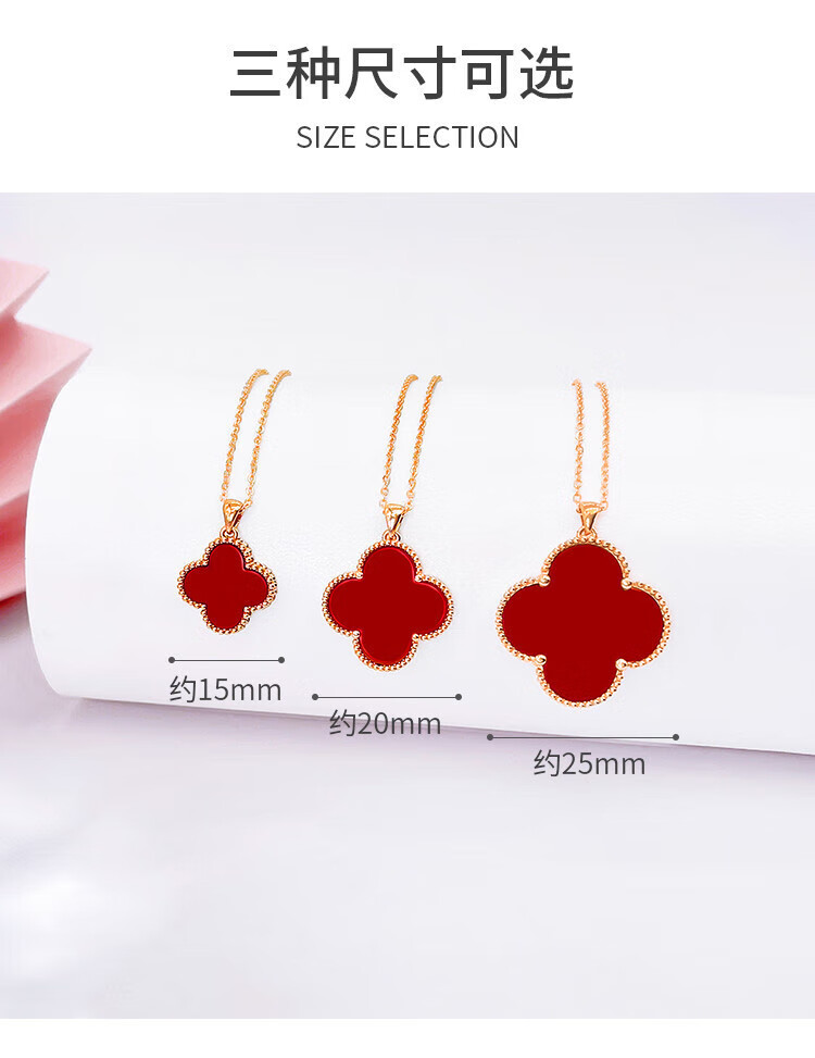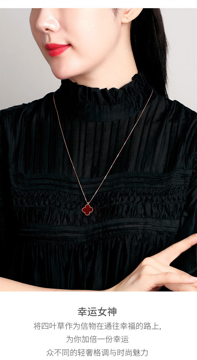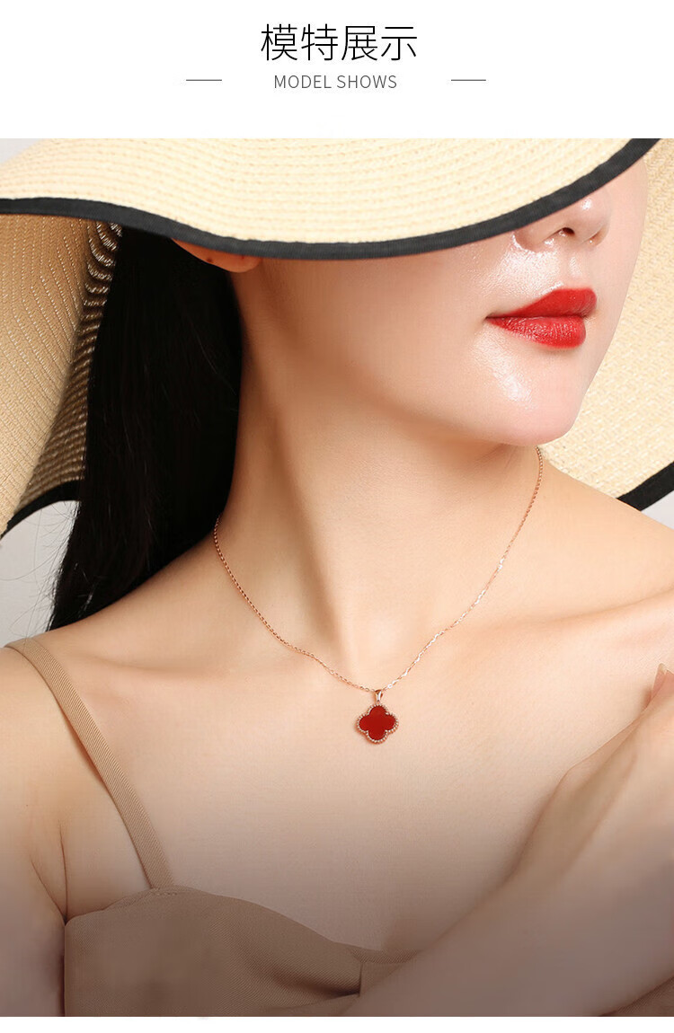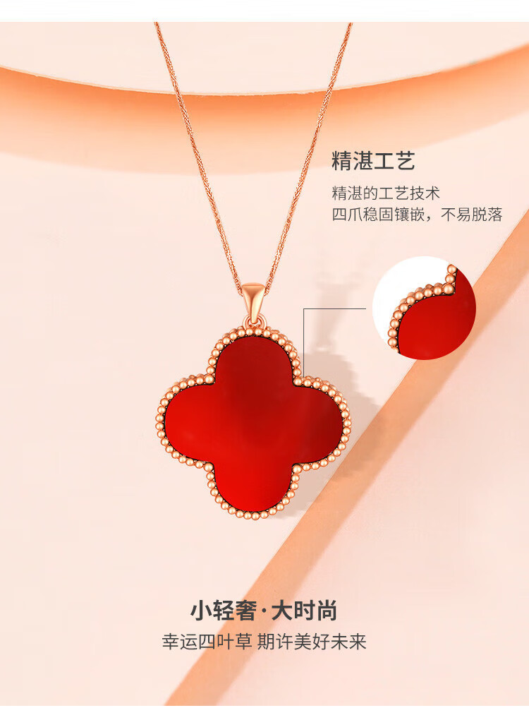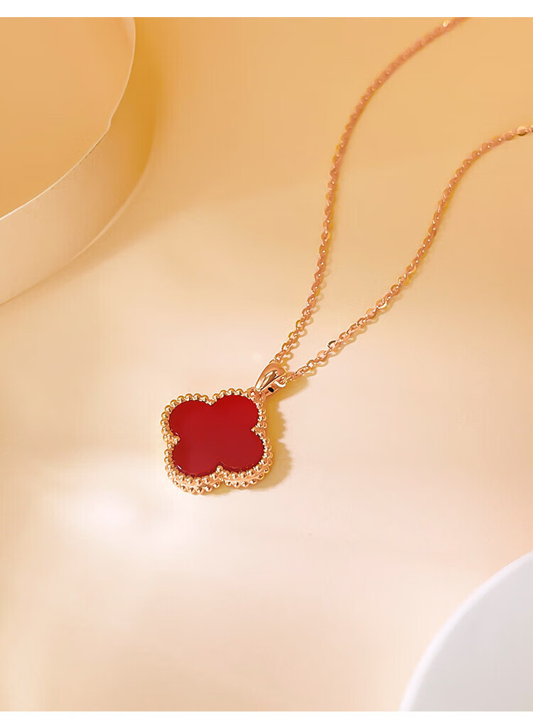 Xingu 18K gold four-leaf clover pendant color gold rose gold gold necklace au750 clavicle chain birthday gift for girlfriend red agate 18K rose gold (single pendant)