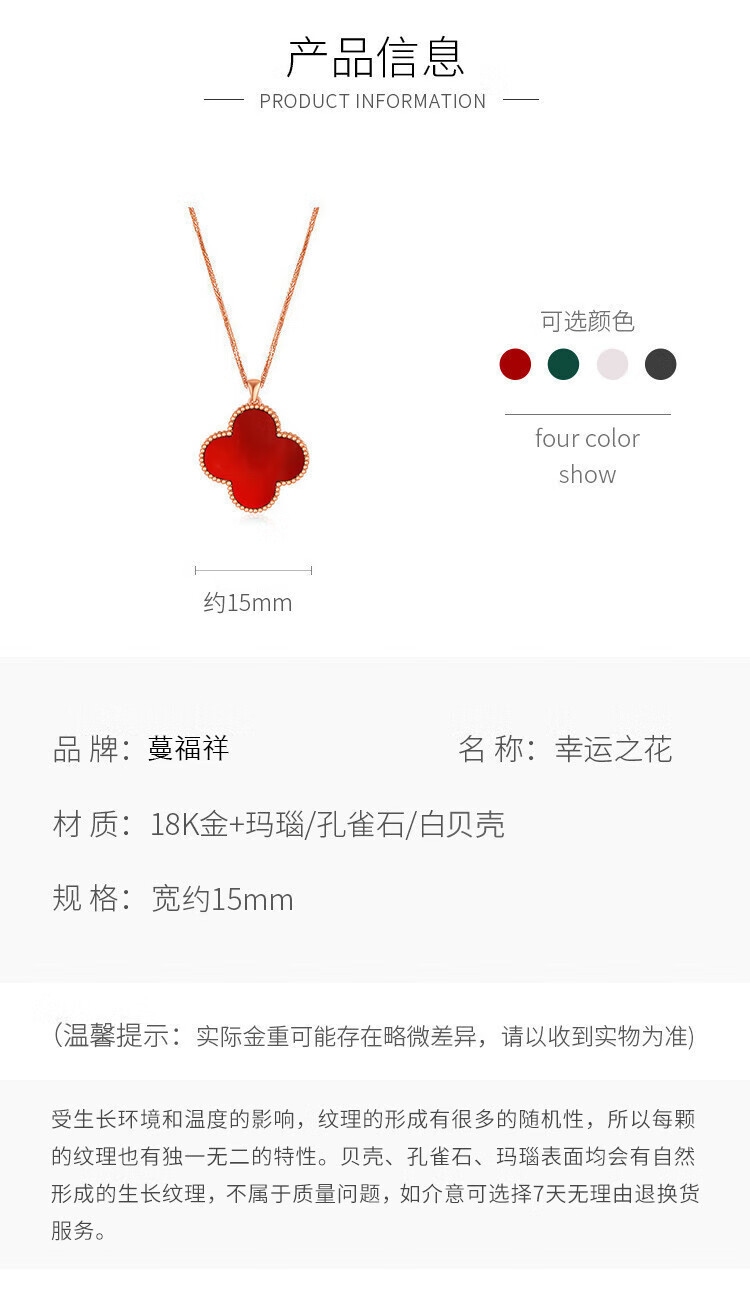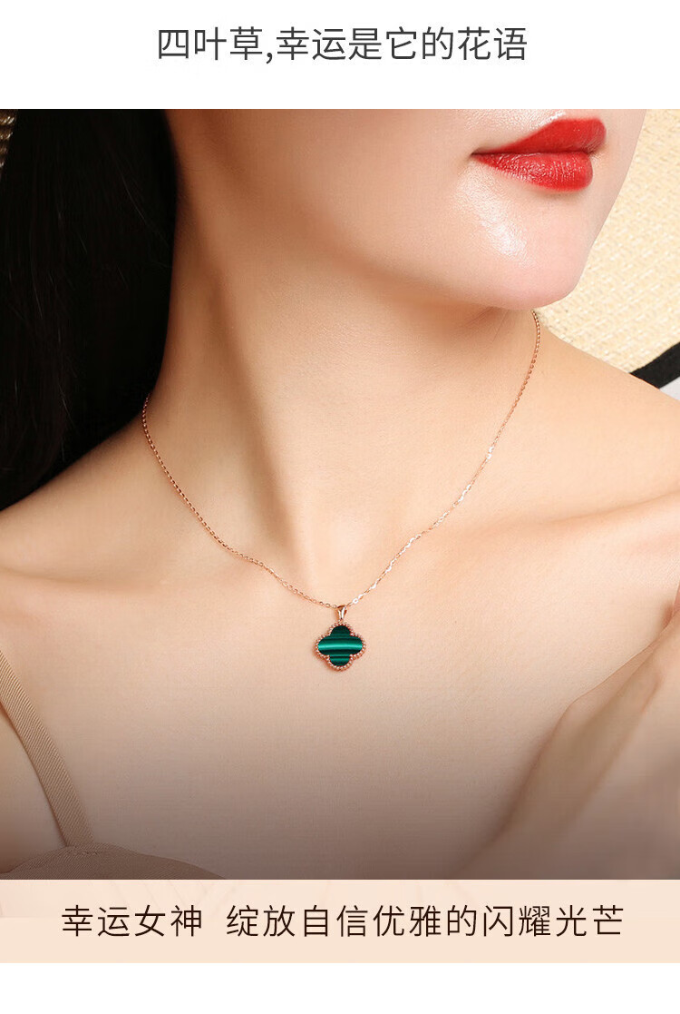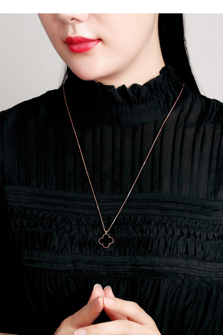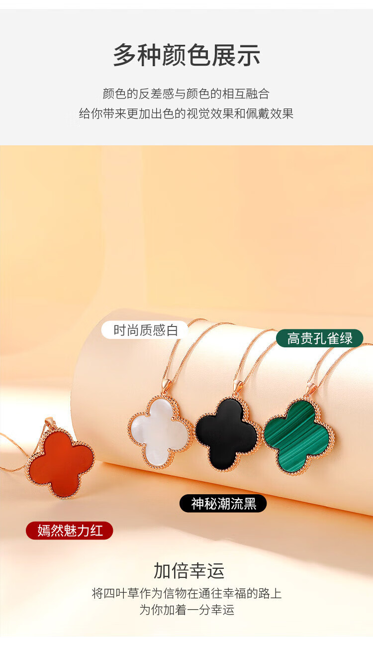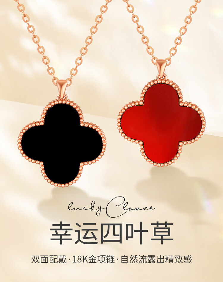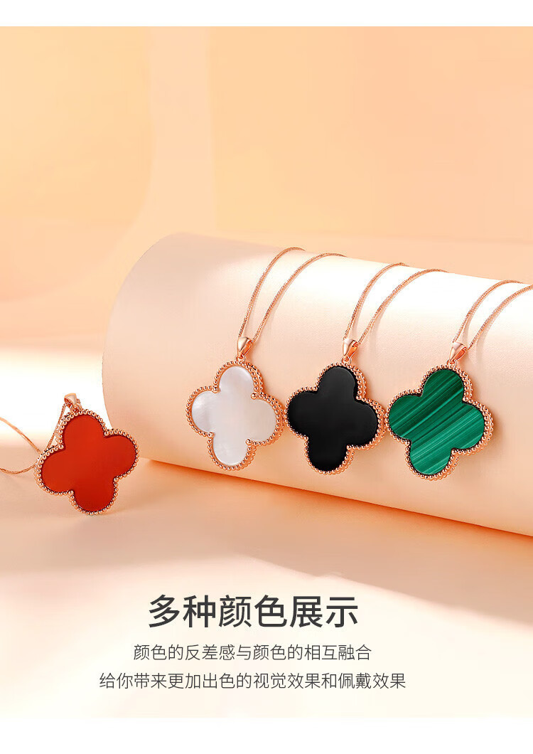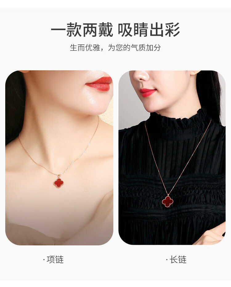 Xingu 18K gold four-leaf clover pendant color gold rose gold gold necklace au750 clavicle chain birthday gift for girlfriend red agate 18K rose gold (single pendant)