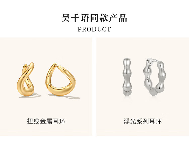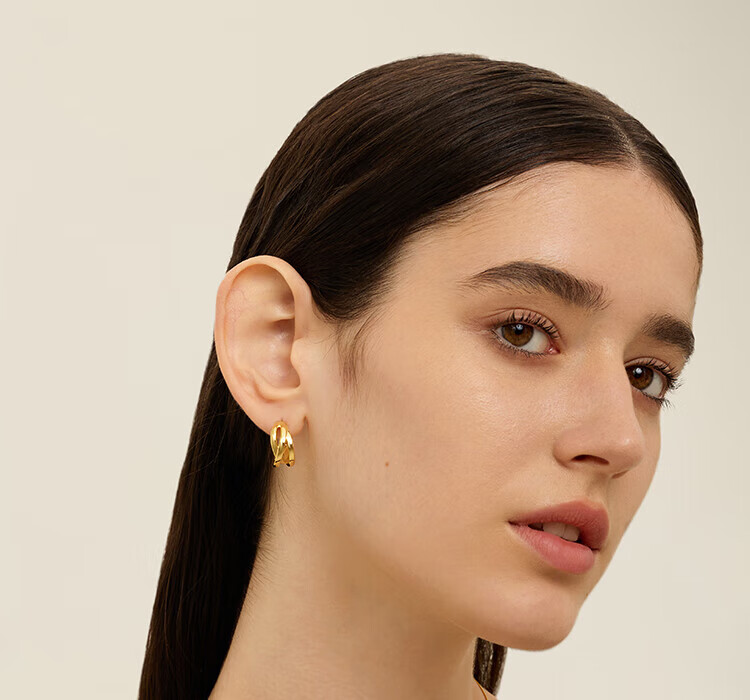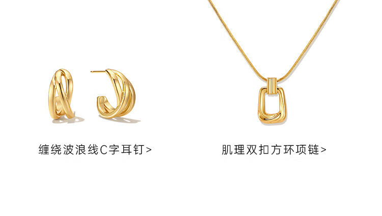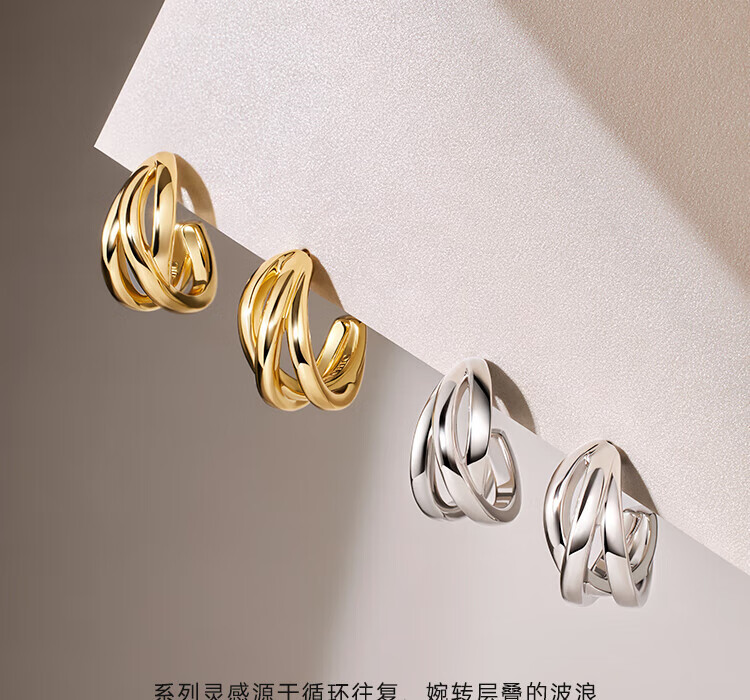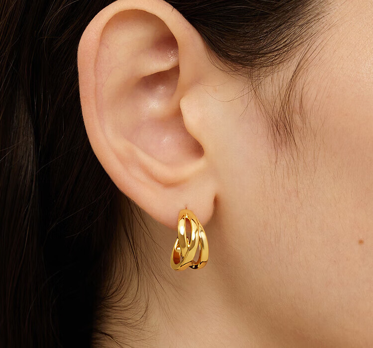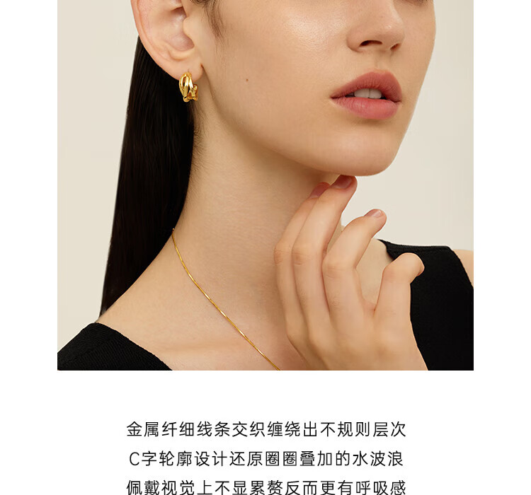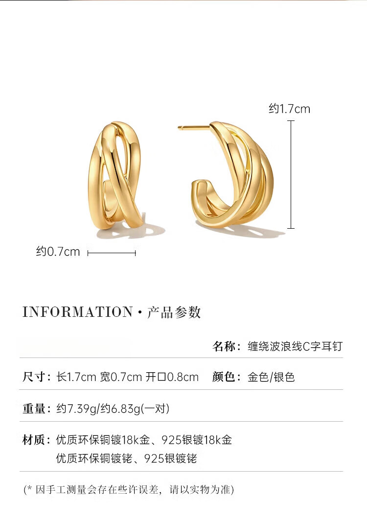 Xingu Boutique 18k gold earrings Wu Qianyu Tong Onchic earrings for women, plated earrings, very light, wrapped wavy line C-shaped earrings (gold)
