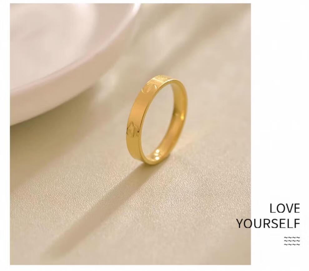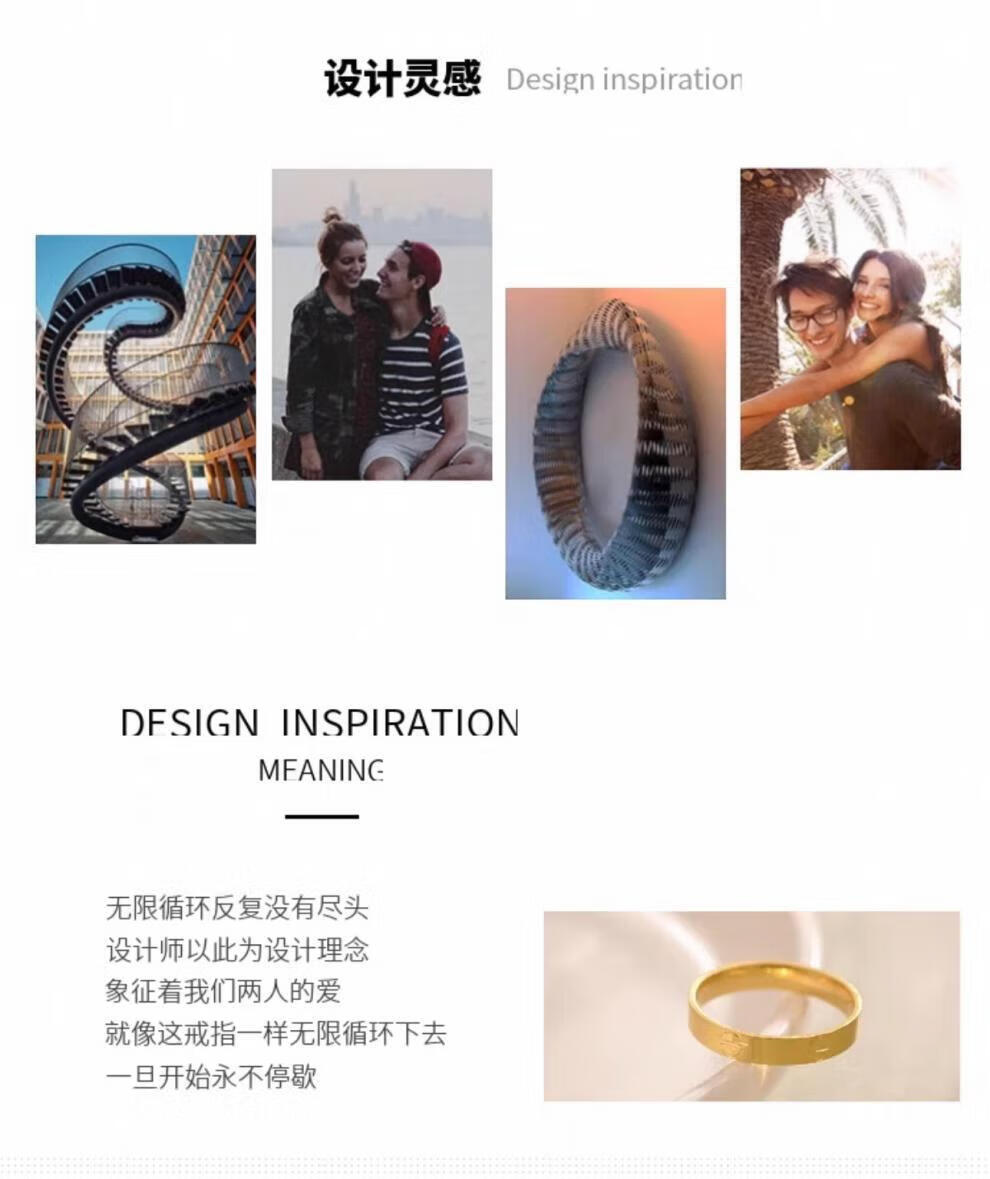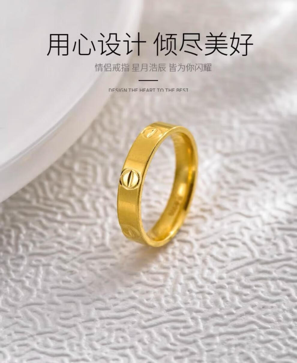 Heart ancient solid 999 pure gold-plated silver gold ring for men and women plain circle glossy fashion one word lov ring couple ring US size 5 contains gold 0.05