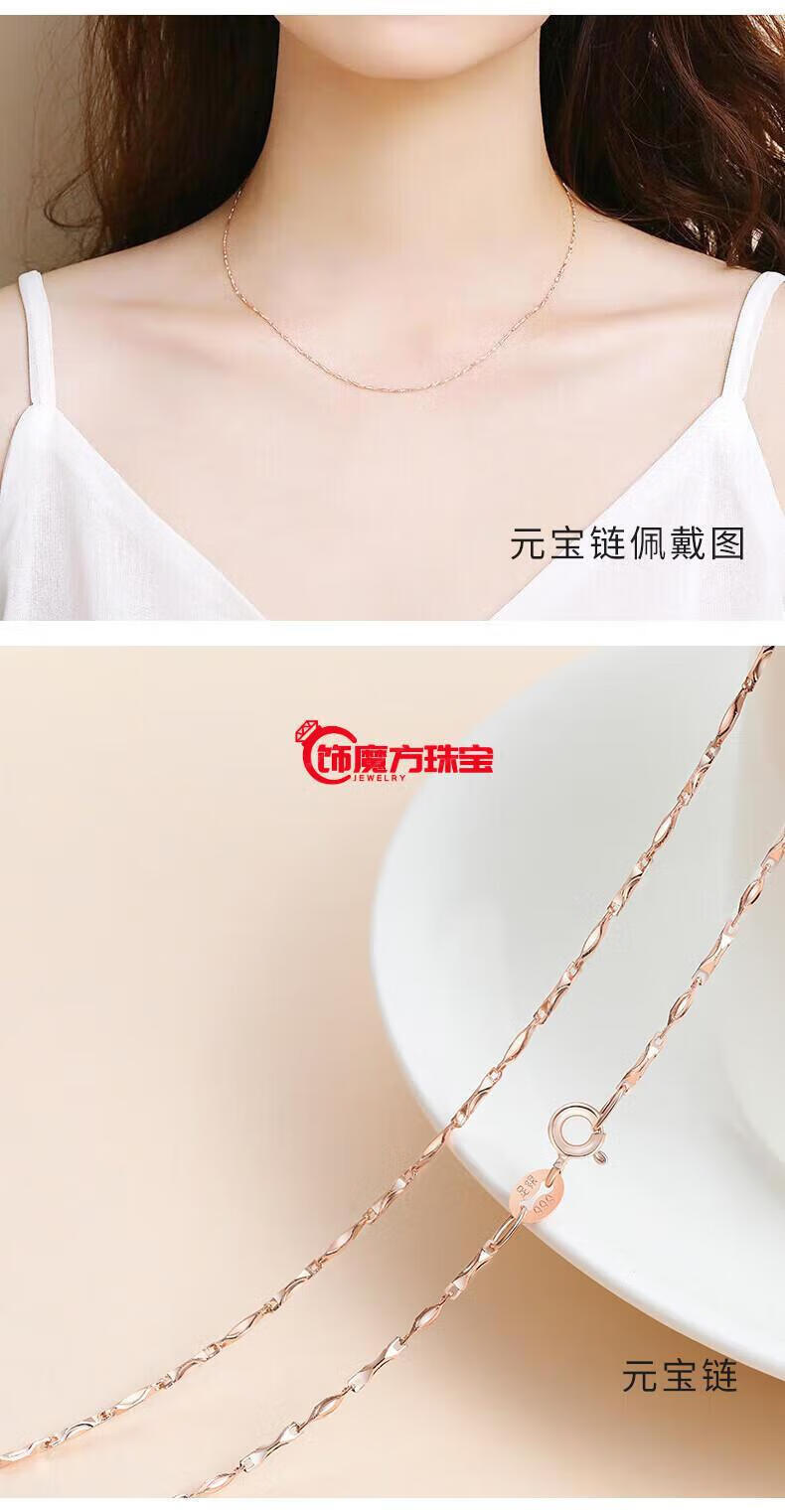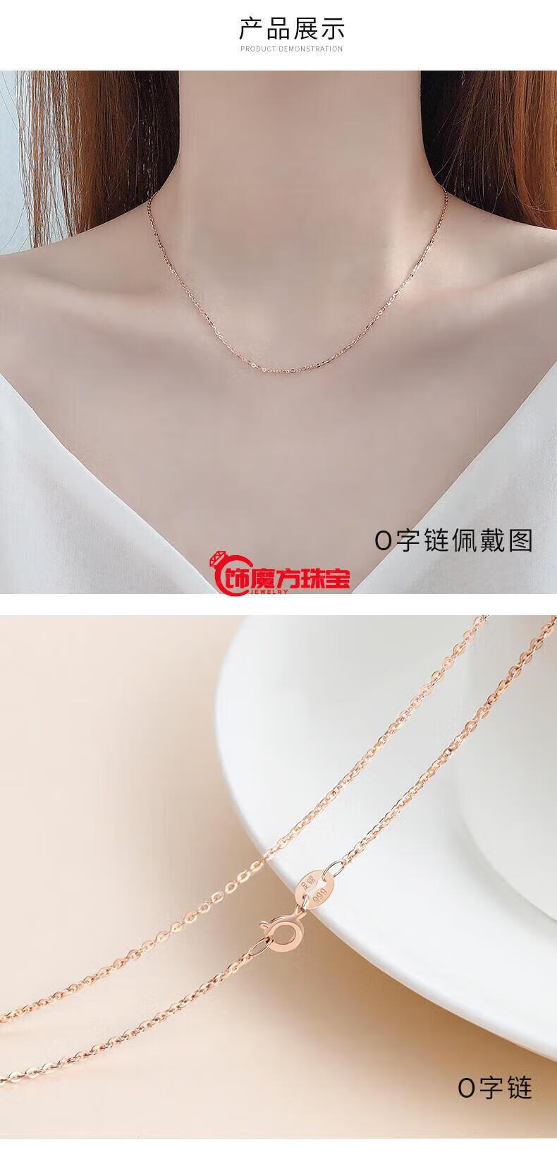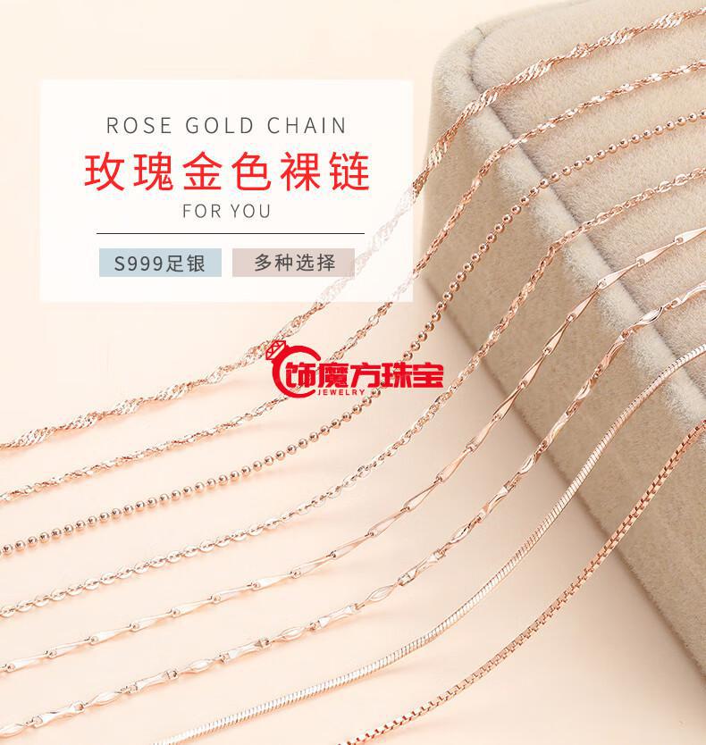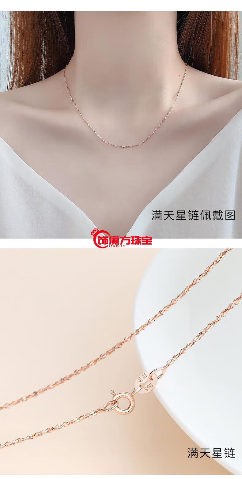 Ancient quality 18K rose gold necklace for women 925 color gold without pendant clavicle chain single chain starry chain snake light bead chain 45cm