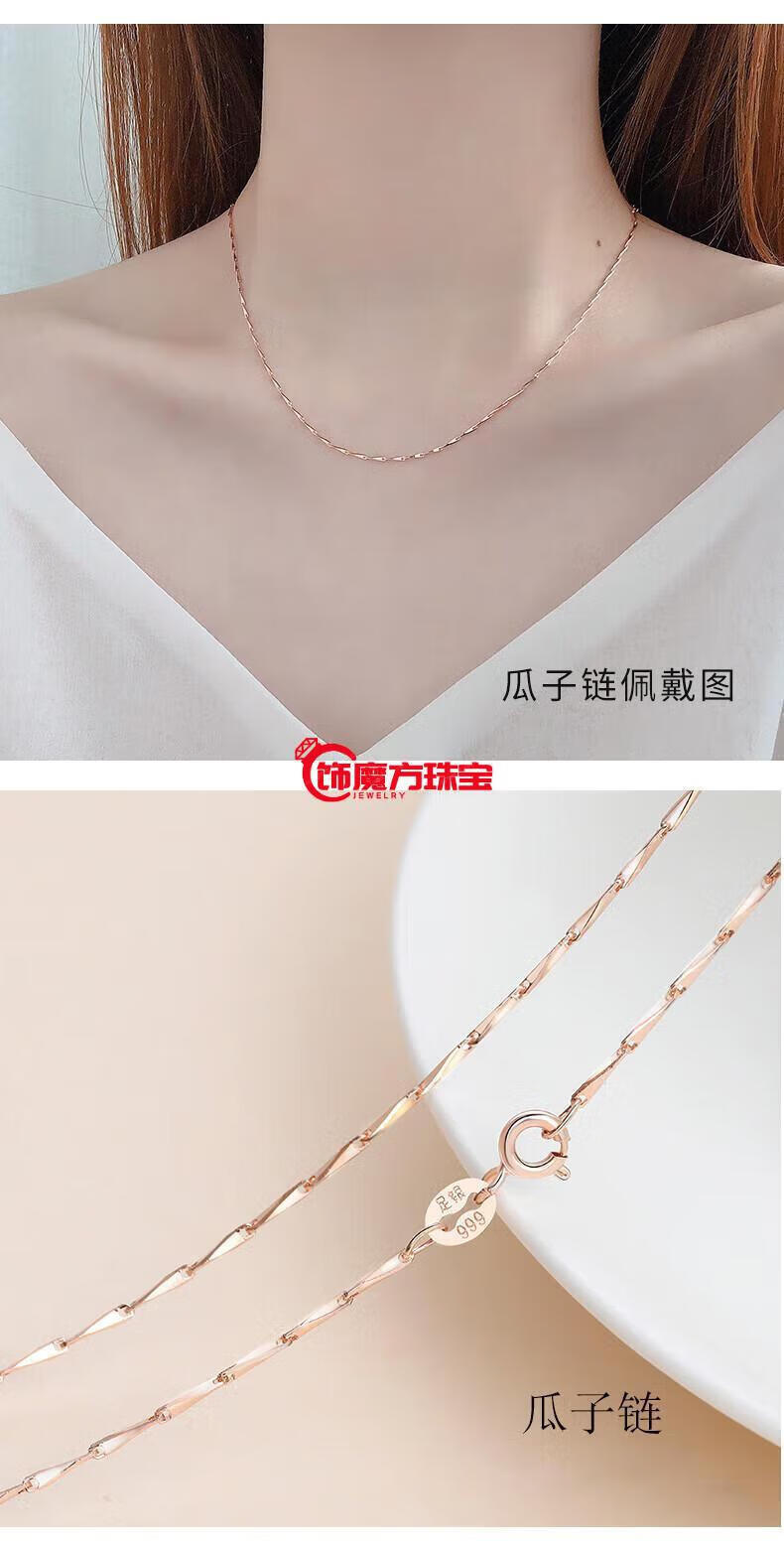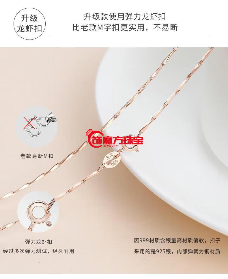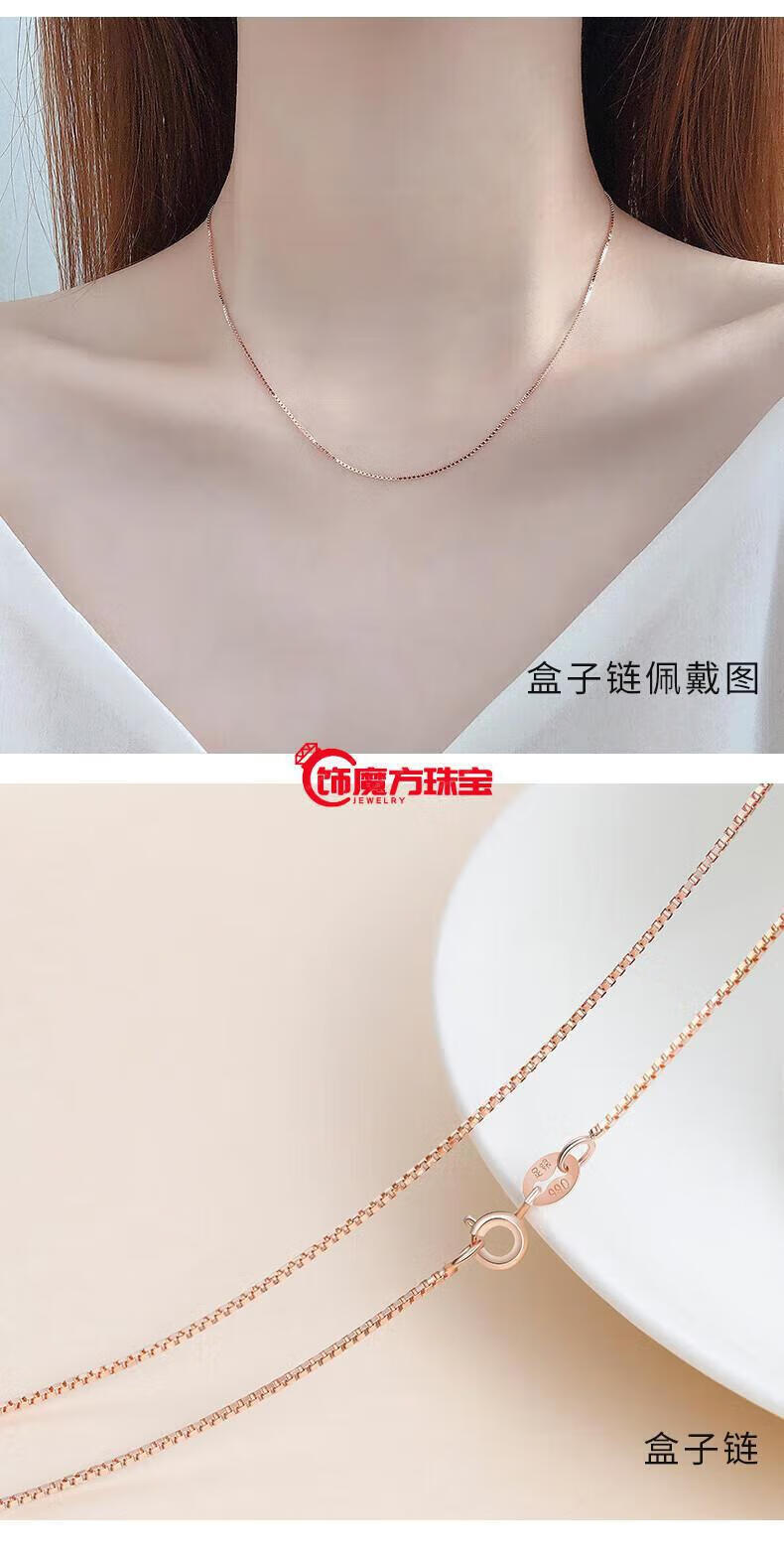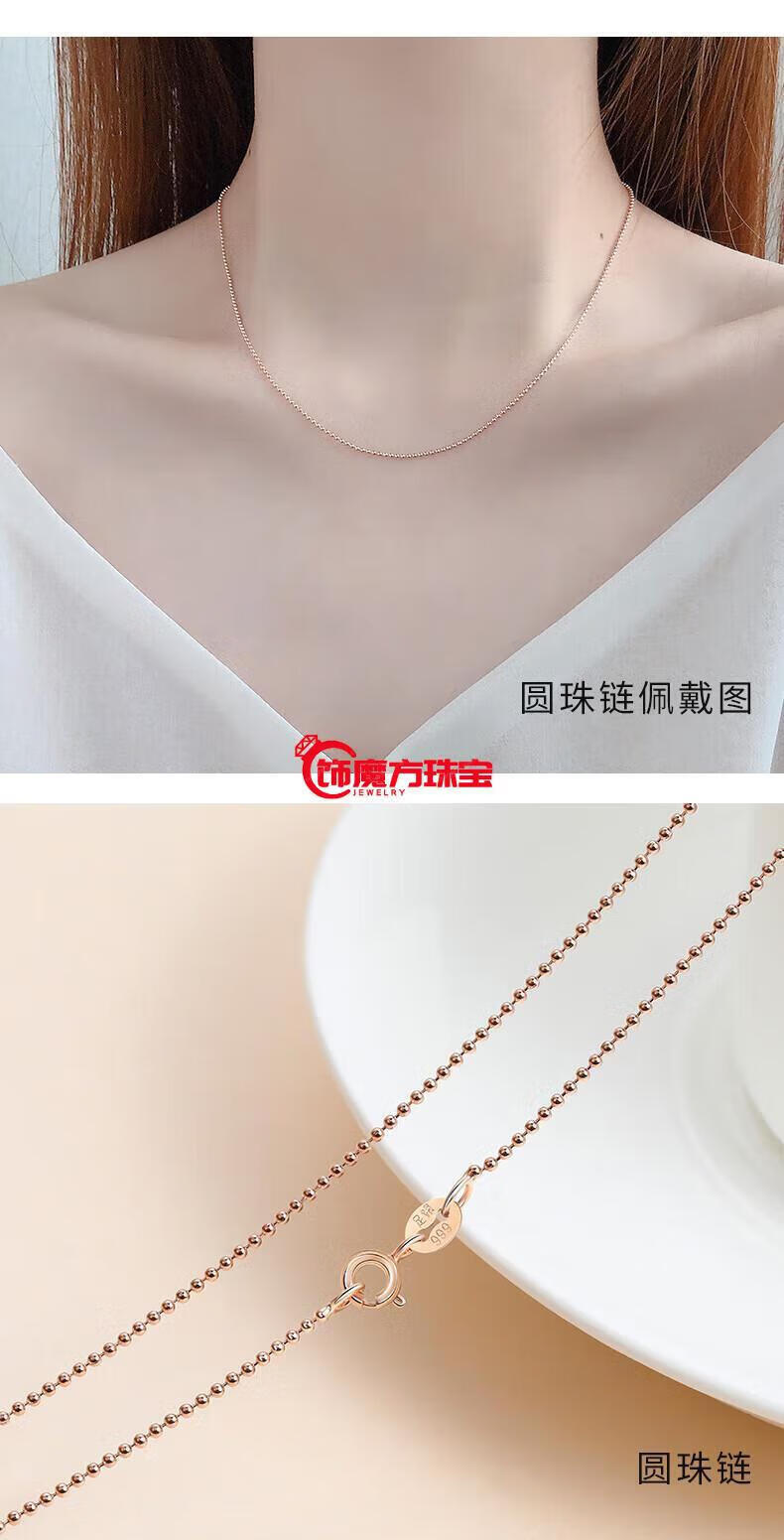 Ancient quality 18K rose gold necklace for women 925 color gold without pendant clavicle chain single chain starry chain snake light bead chain 45cm