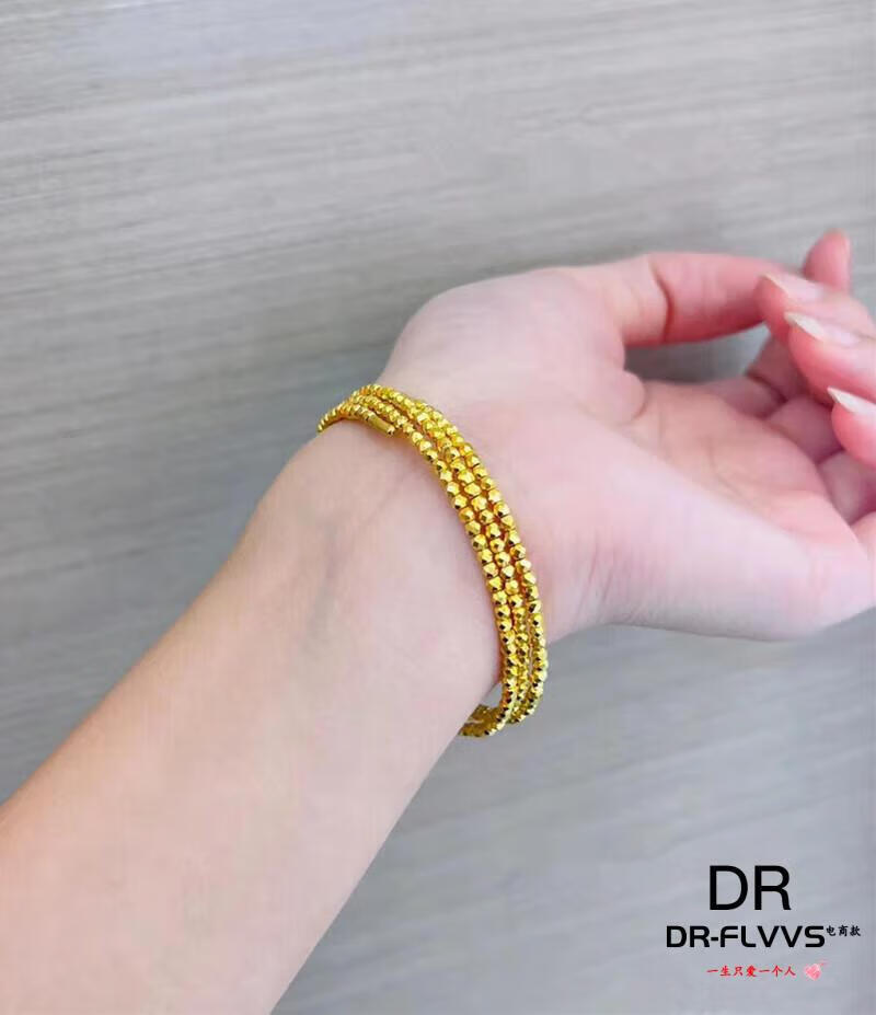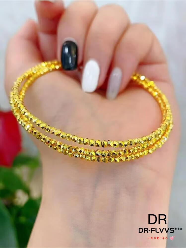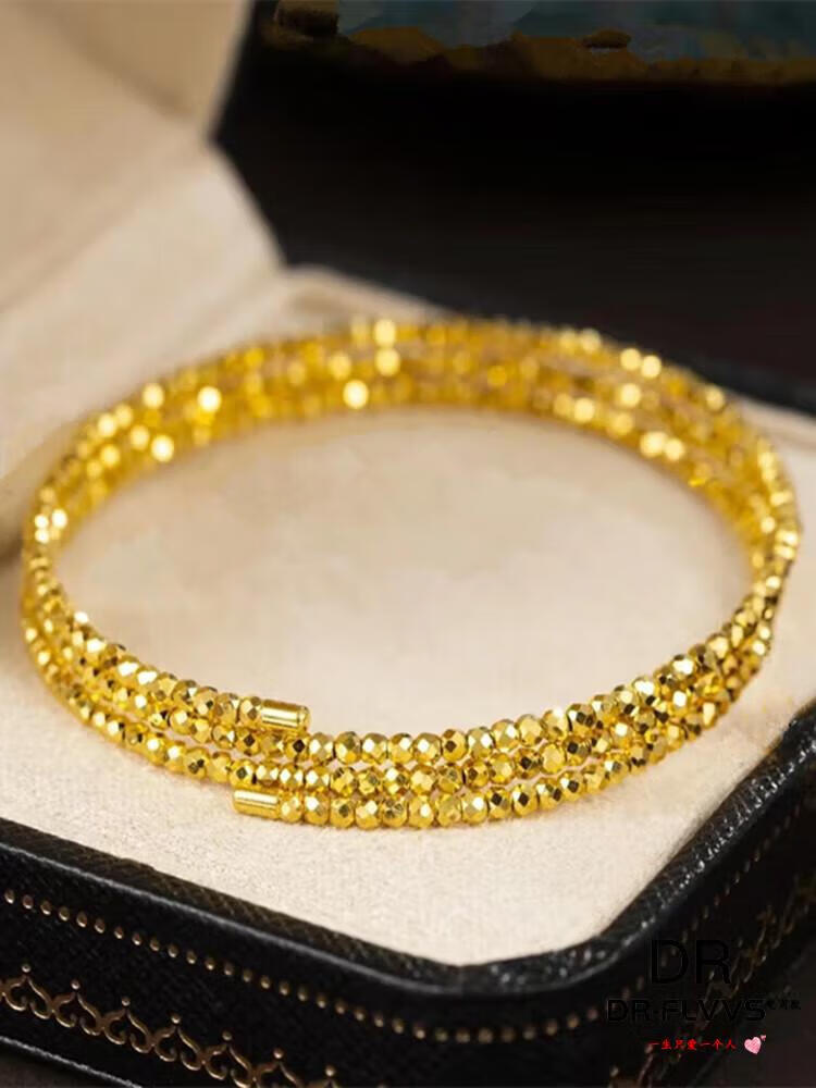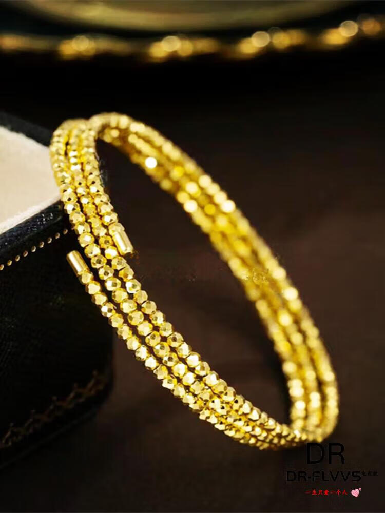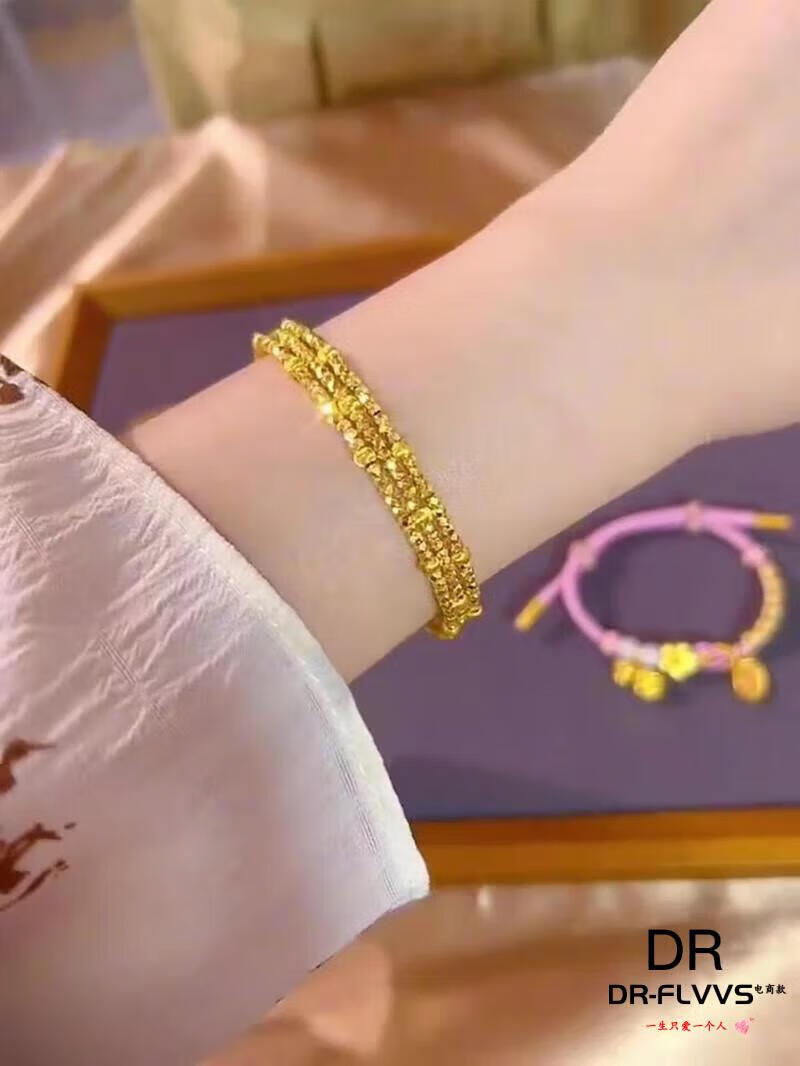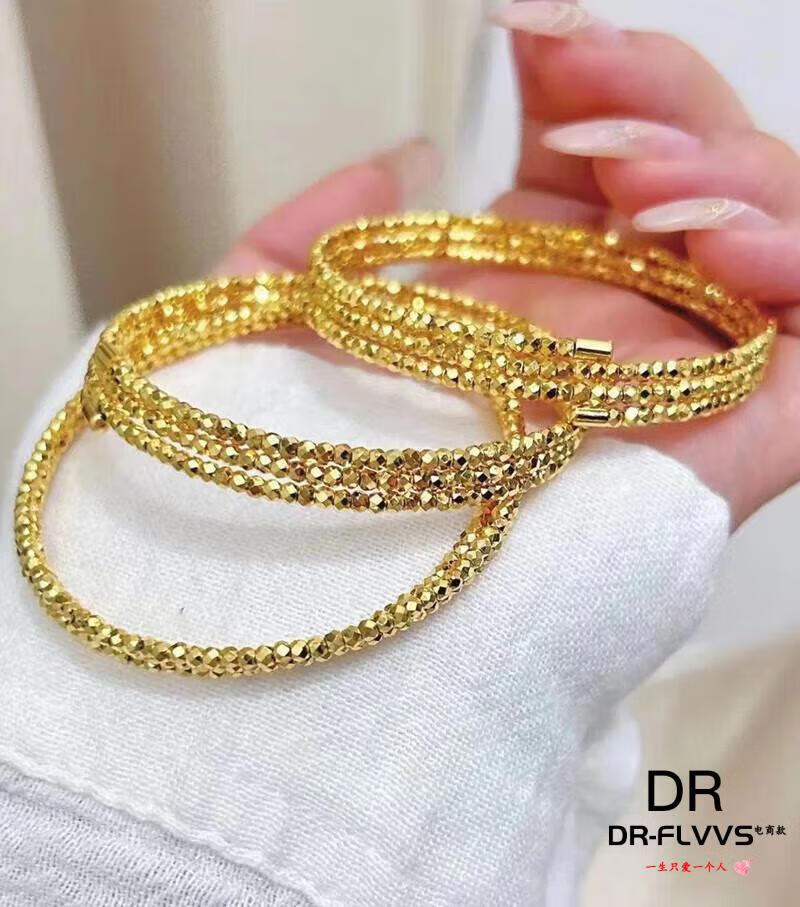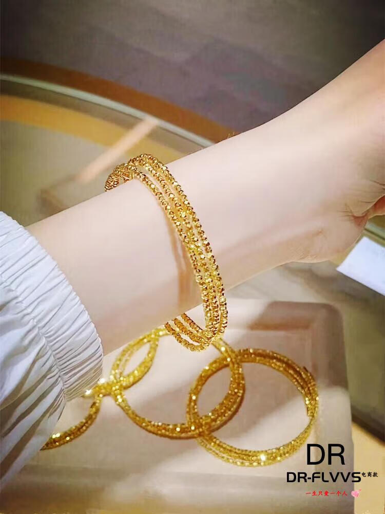 Heart ancient quality broken gold bundi bead bracelet yellow K gold three-circle memory elastic silver bracelet girl 520 gift bundi