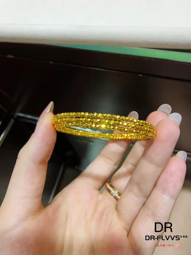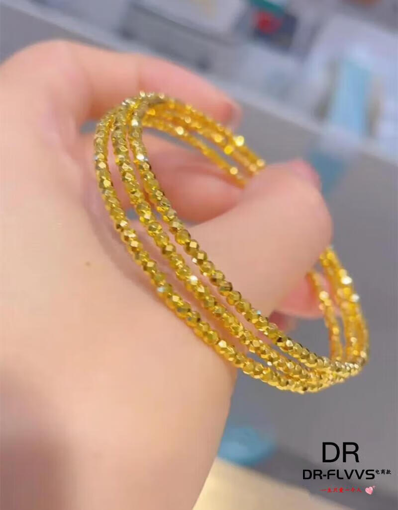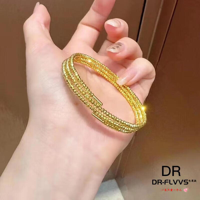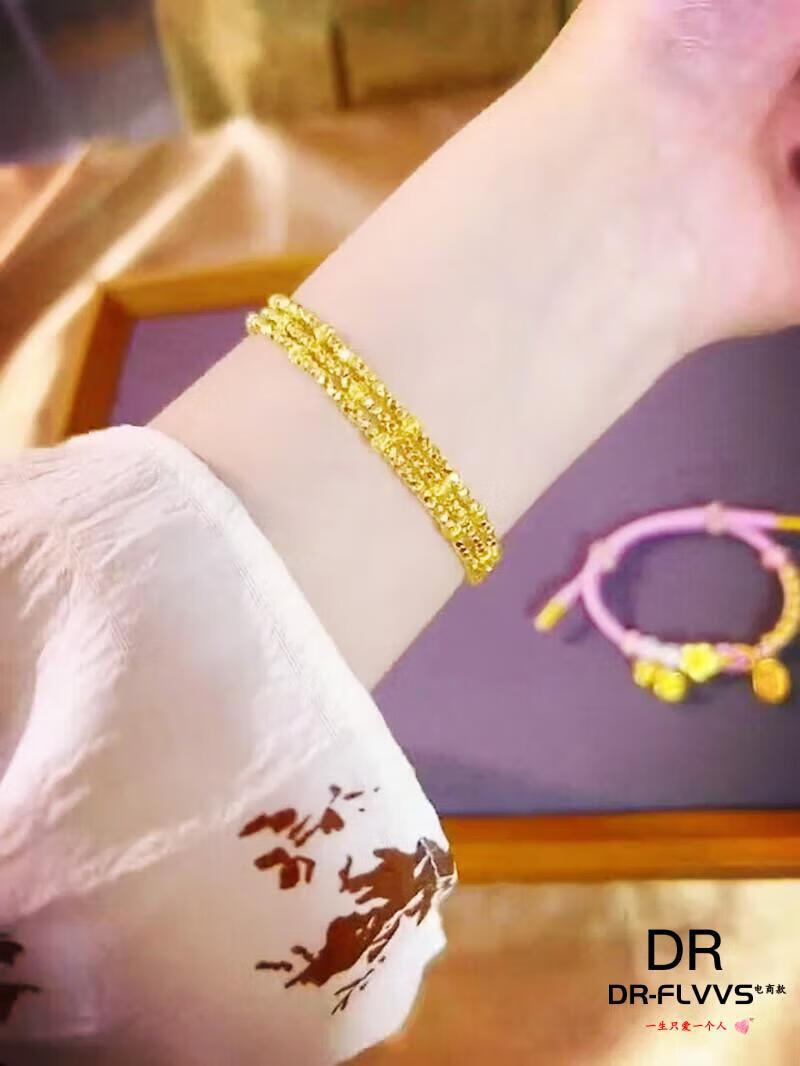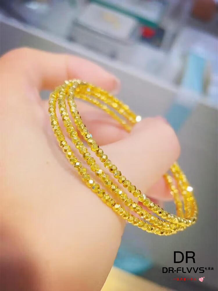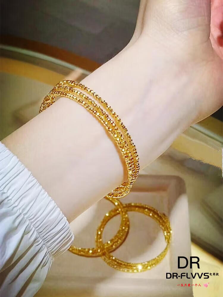 Heart ancient quality broken gold bundi bead bracelet yellow K gold three-circle memory elastic silver bracelet girl 520 gift bundi