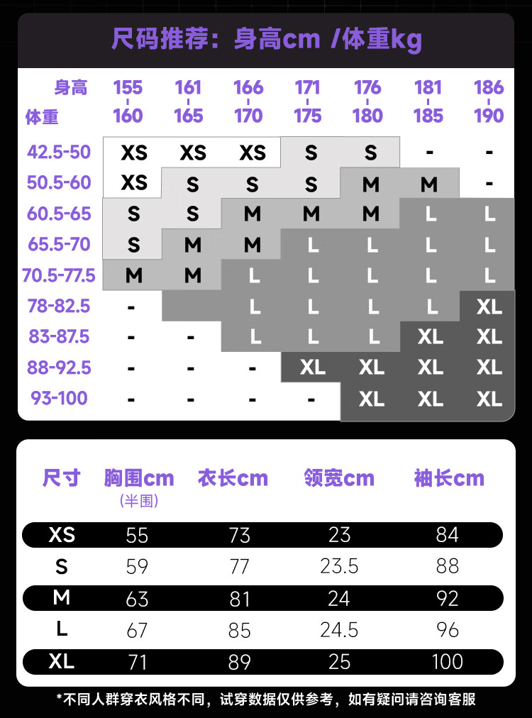 China (cm) 160-165/84-86 165-170 / 88-90 167-172 / 92-96 168-173 / 98-102 170-176 / 106-110