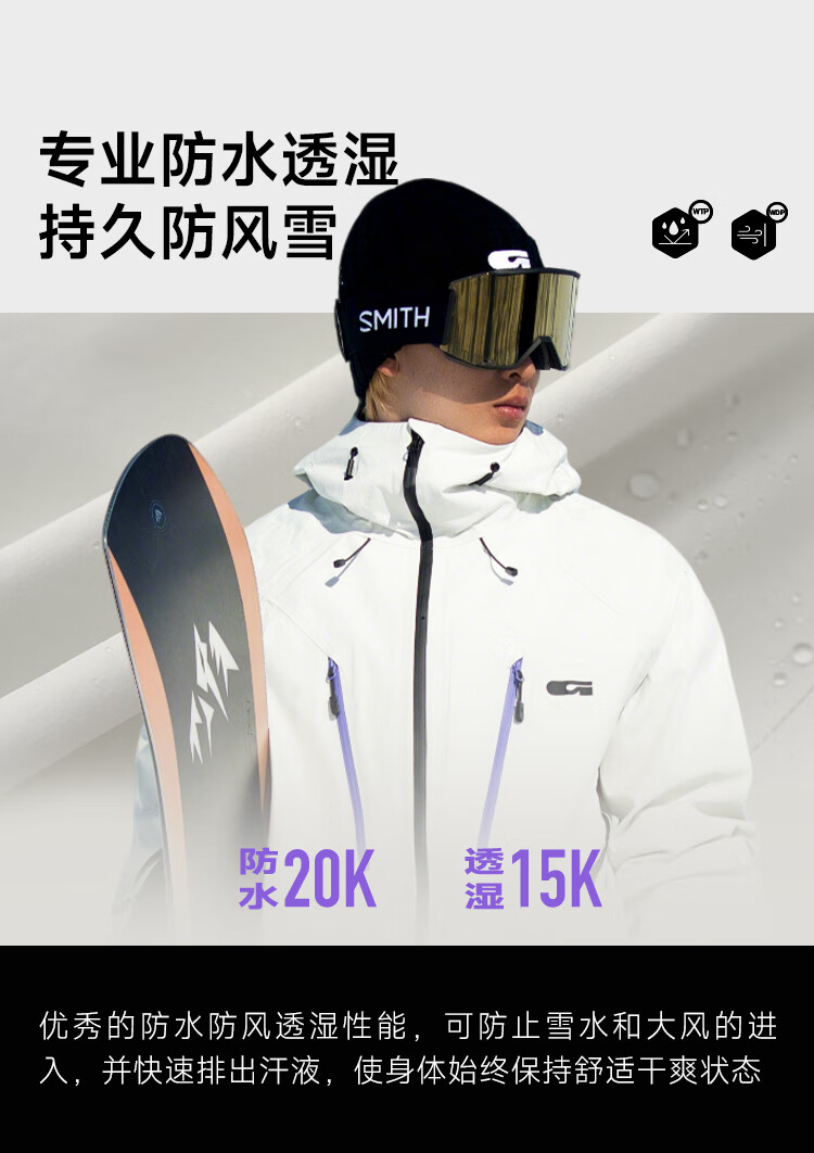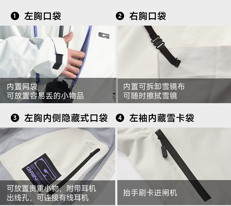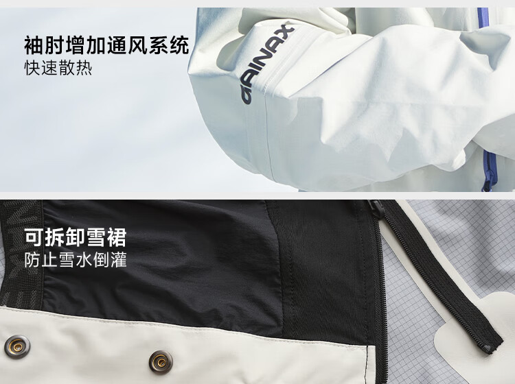 GAINAX Cold Mountain Ski Wear for Men and Women Windproof, Waterproof and Breathable 3L Big G Professional Outdoor Winter Snow Wear 2526 New 3L Ski Wear - Silver Fish Color 20K Waterproof | 15K Breathable M