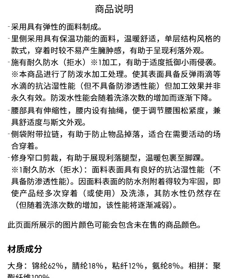 Outseam (cm) 99 cm 101.5 cm 104 cm 106.5 cm 109 cm