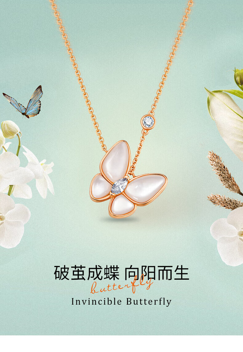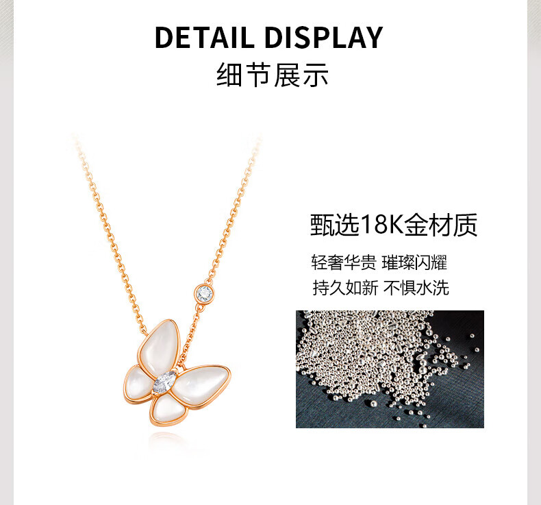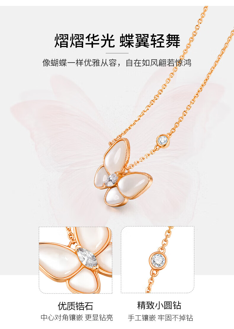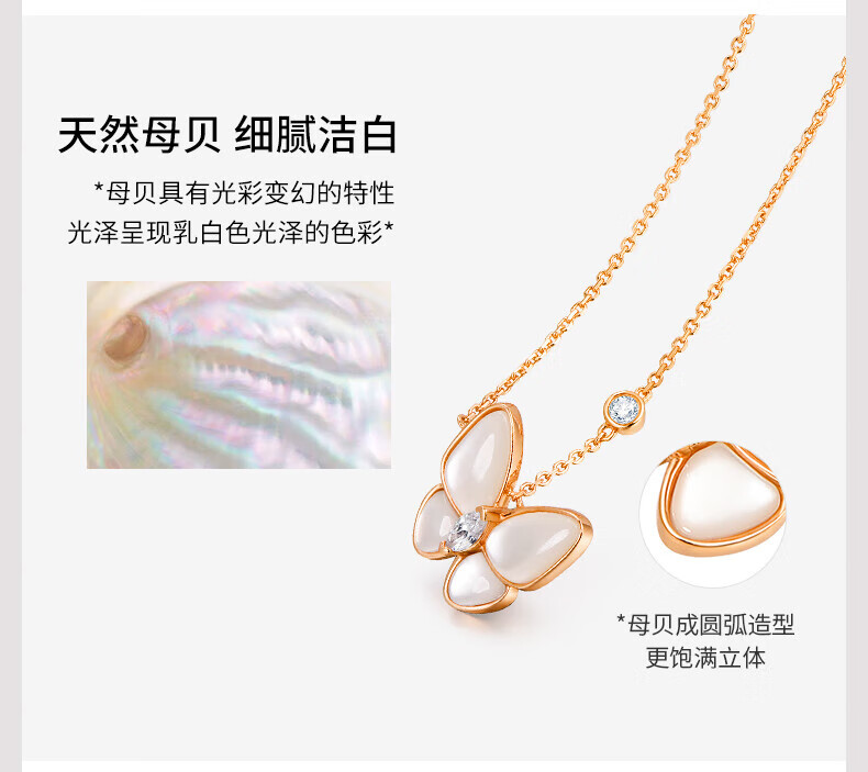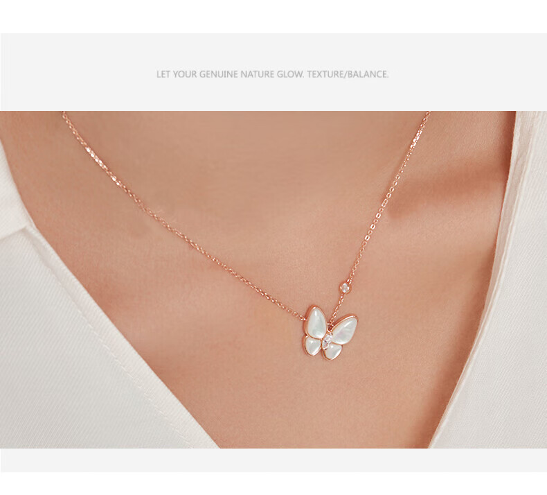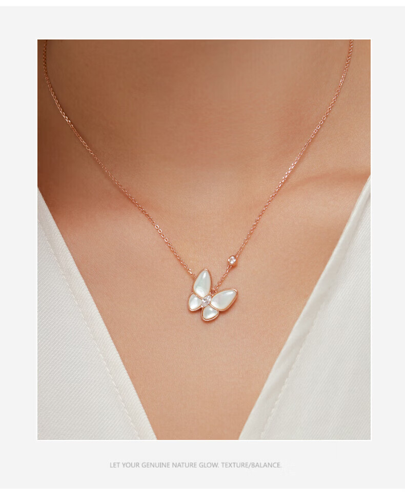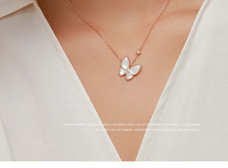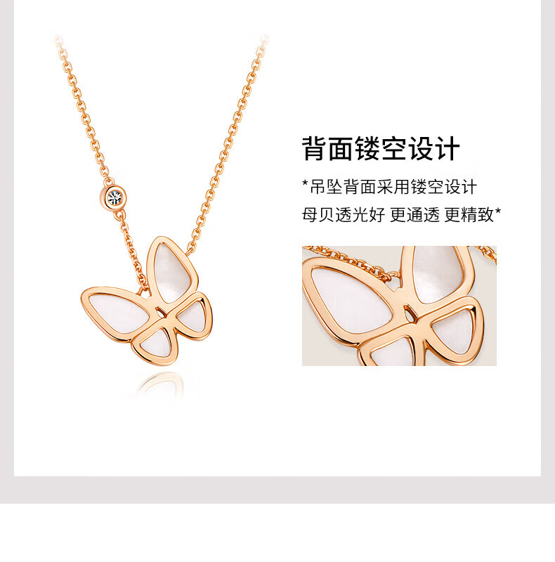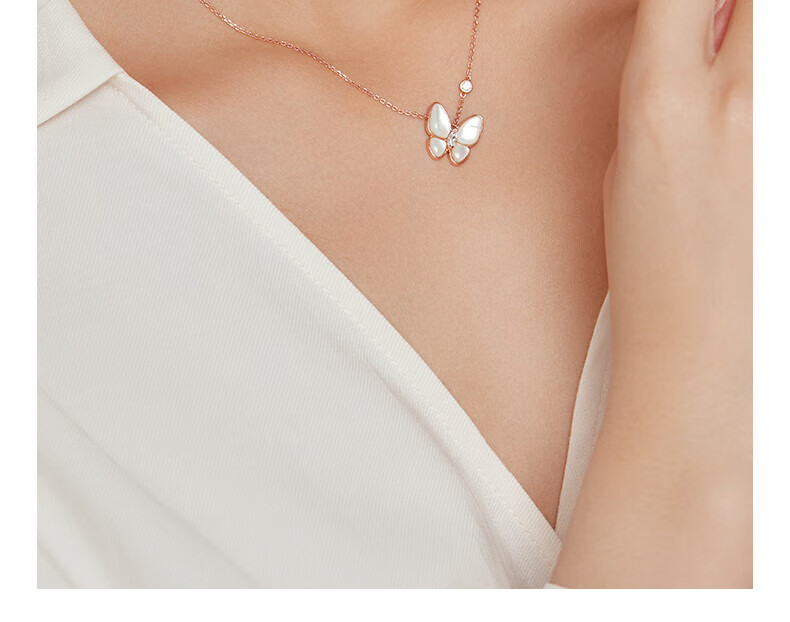 Half a grain of 18K gold butterfly necklace for women, rose gold mother-of-pearl pendant, clavicle chain, birthday Chinese Valentine's Day gift for girlfriend