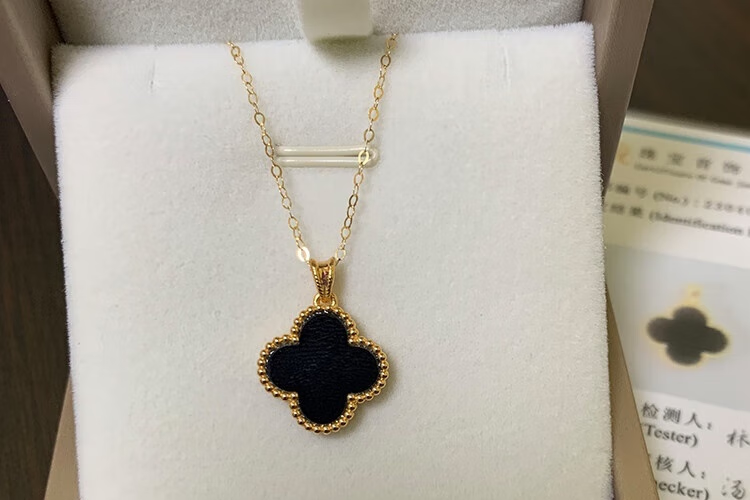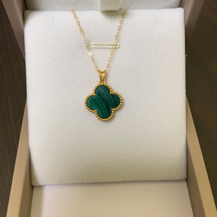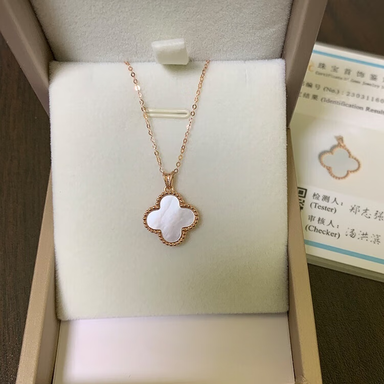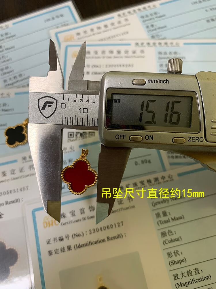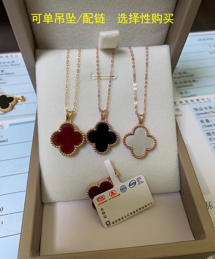 Half grain non-demolding 18K gold AU750 real gold plated four-leaf clover pendant for women 15 non-fading carnelian agate clavicle chain 18K gold non-demolding + rose carnelian + certificate 10mm small single pendant