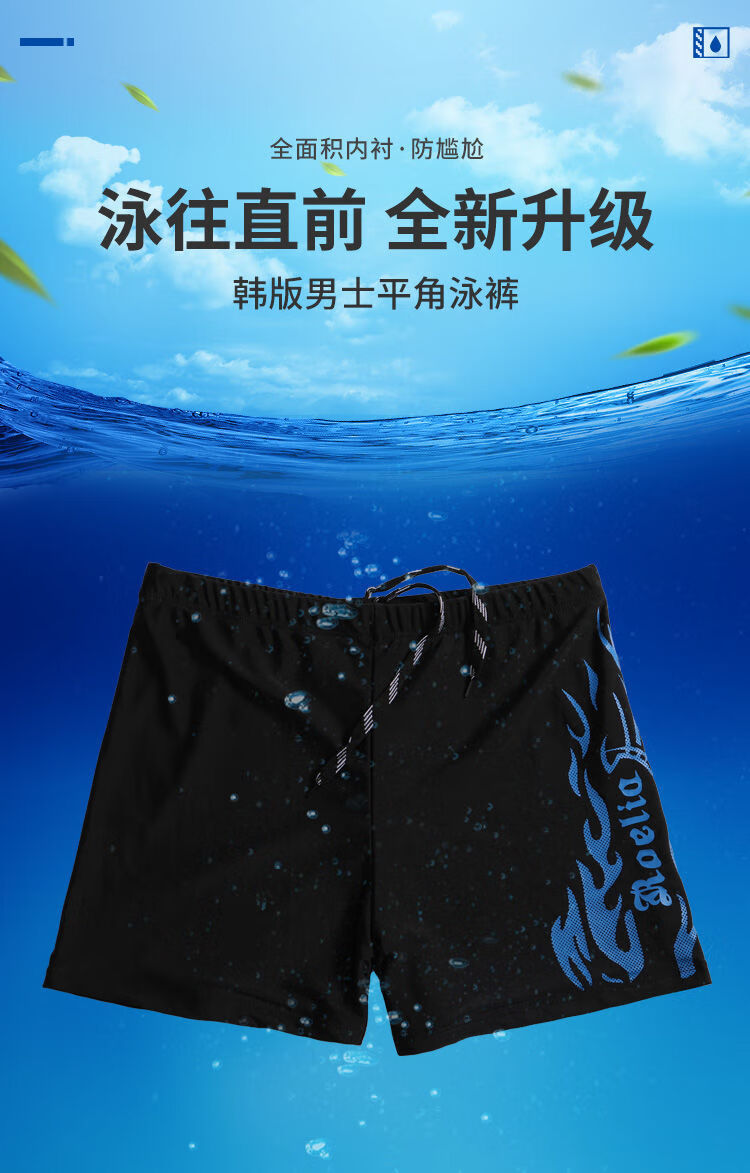 Yusenyi men's swimsuit, men's adult swimming trunks, children's boys, middle-aged and older students' sports quick-drying double-layer anti-embarrassment blue flame + cloth swimming cap + swimming goggles + nose clip earplugs one size fits all size l70-90 Jin Jin equals 0.5 kg