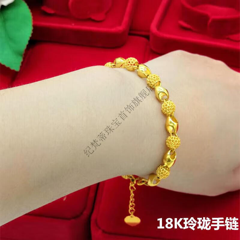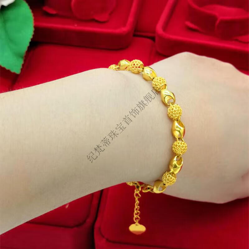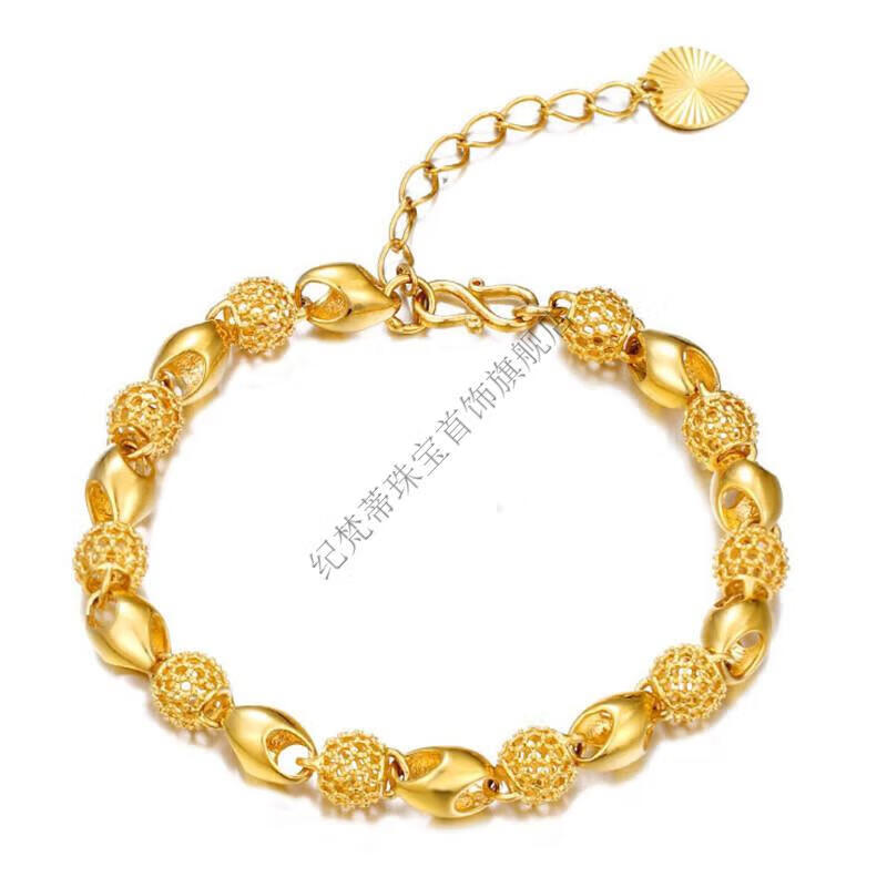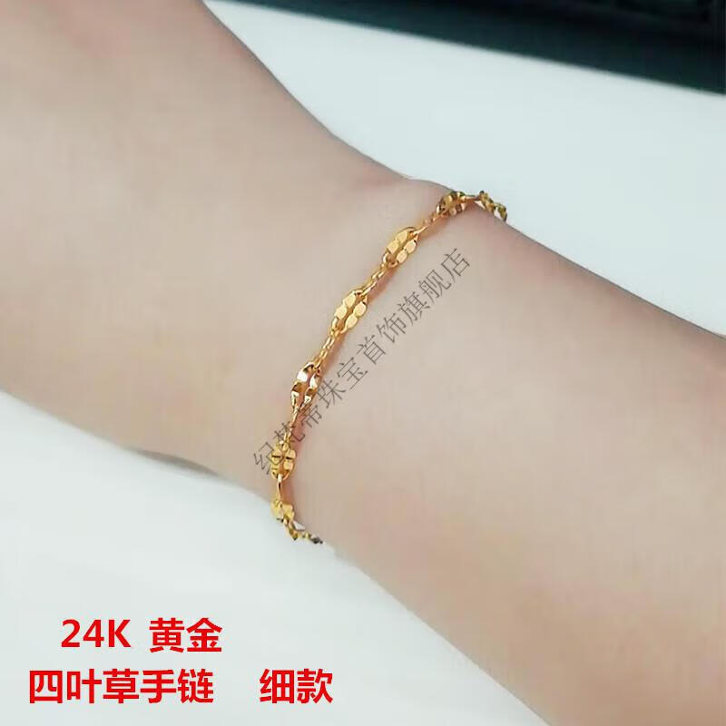 Half a new bracelet for women, transfer beads, plain gold, exquisite 18K gold bracelet, four-leaf clover, 999 pure gold exquisite bracelet