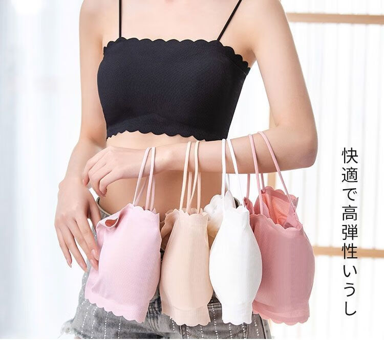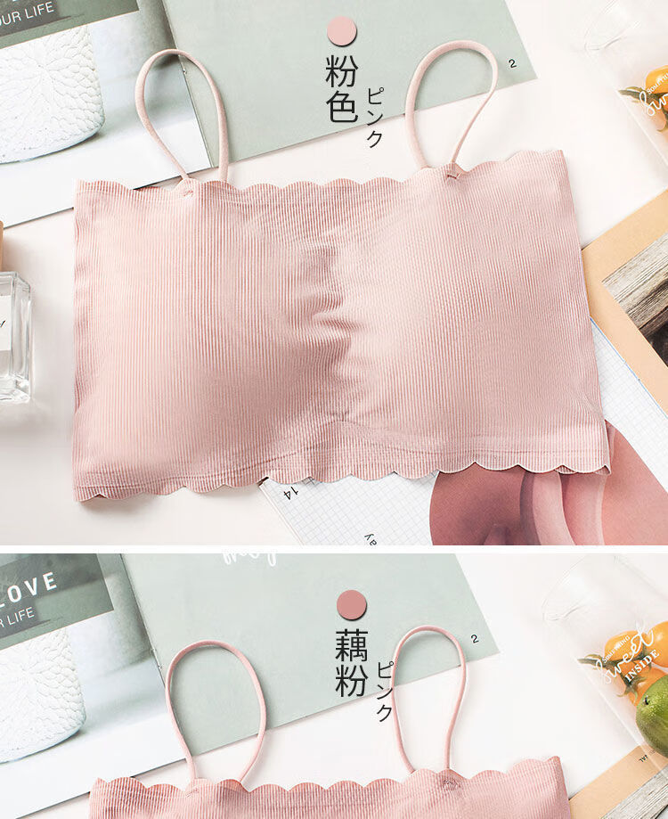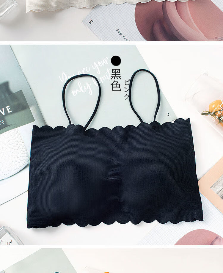 Woodpecker ice silk underwear for female students, Korean version for middle and high school students, anti-exposure tube top, thin bottoming camisole for girls, black + white S (65-85Jin Jin equals 0.5kg)