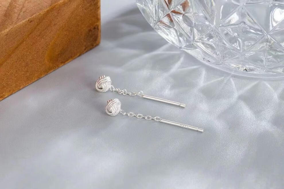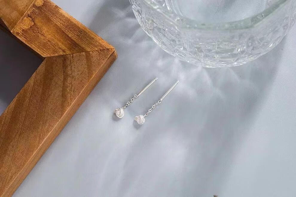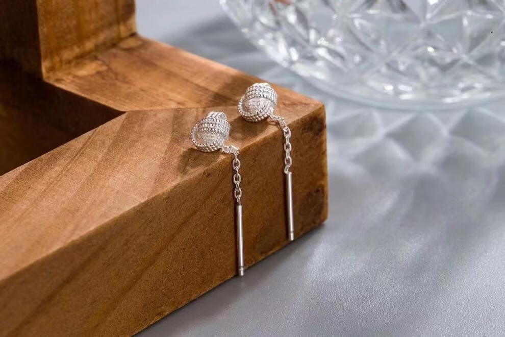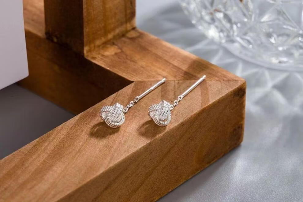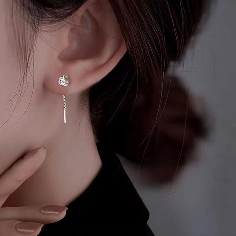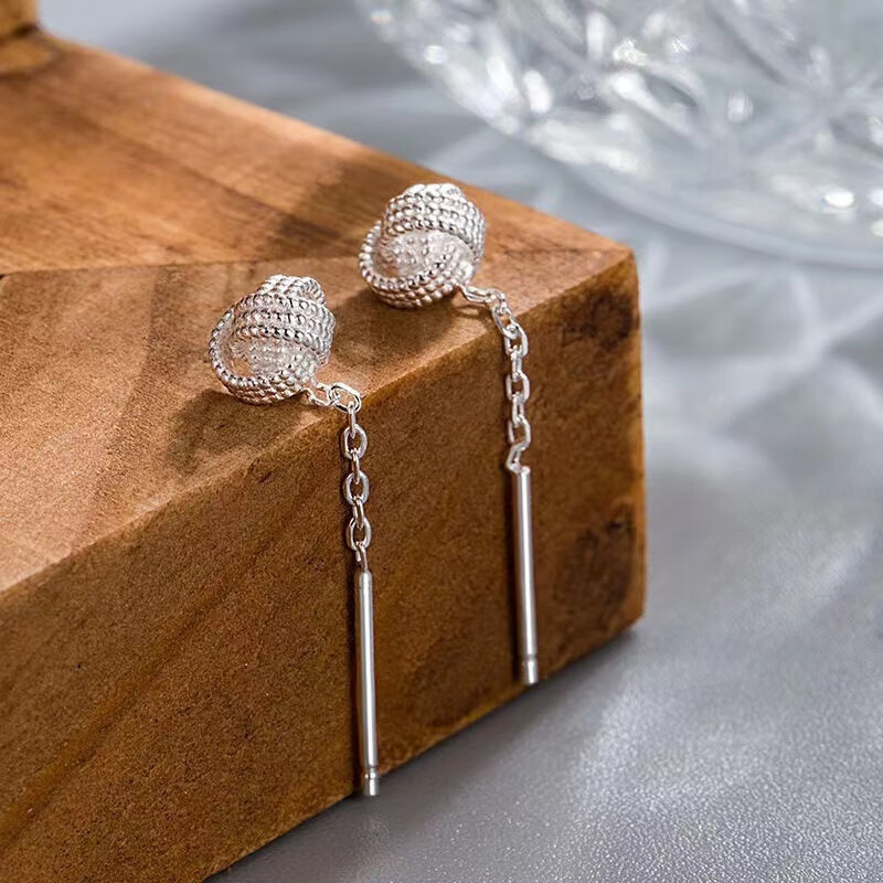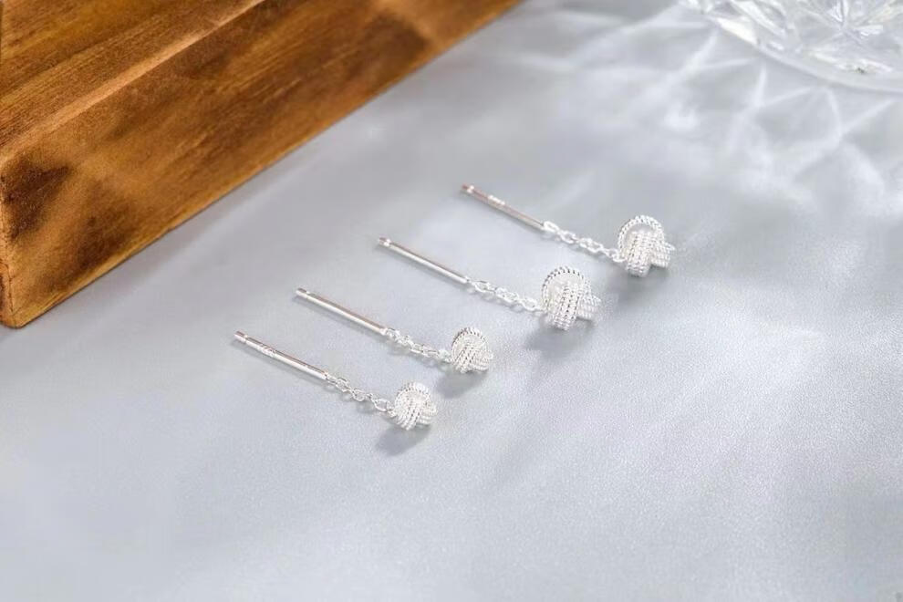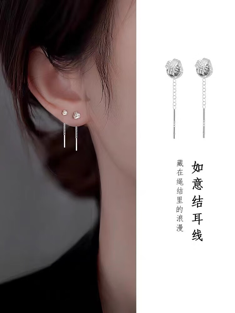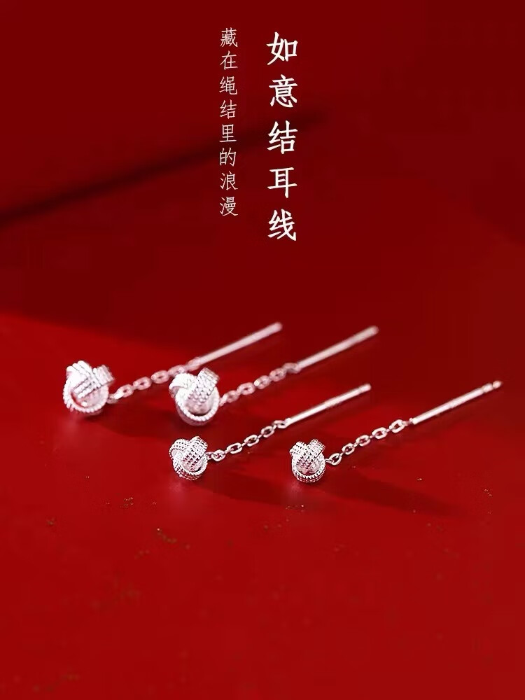 Pupan Lao Phoenix 9999 Sterling Silver Auspicious Ruyi Knot Ear Wire Women's Earrings Short Tassel Ear Chain Simple Earrings Auspicious Ruyi Knot Ear Wire 6mm+4mm Two Pairs of Lao Fengxiang Same Style