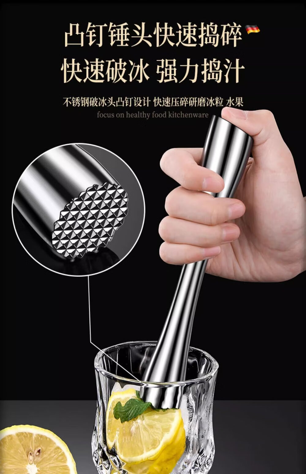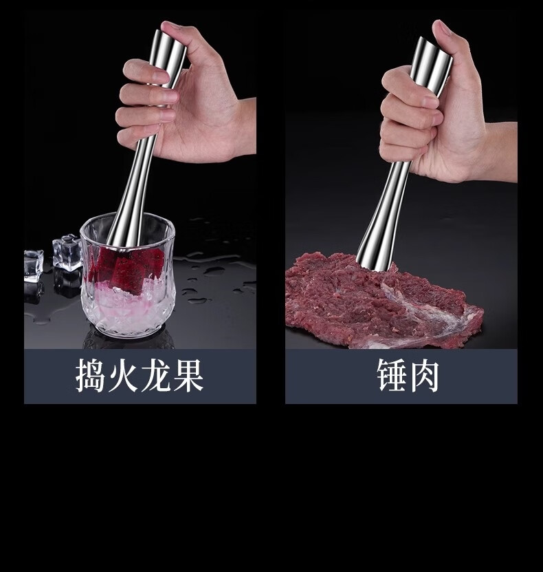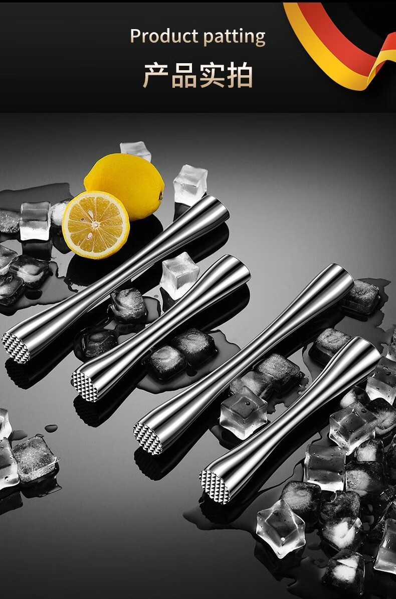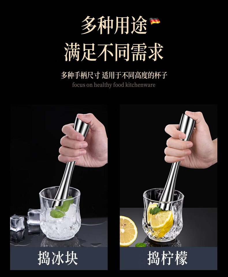 Zhongxun Barra de Martillo de Hielo de Acero Inoxidable Herramienta de Bartending Prensa de Jugo de Frutas Palo de Puré Palo de Jugo de Limón Martillo de Hielo de Cóctel Estilo Corto Palo de Hielo de Acero 304 Completo