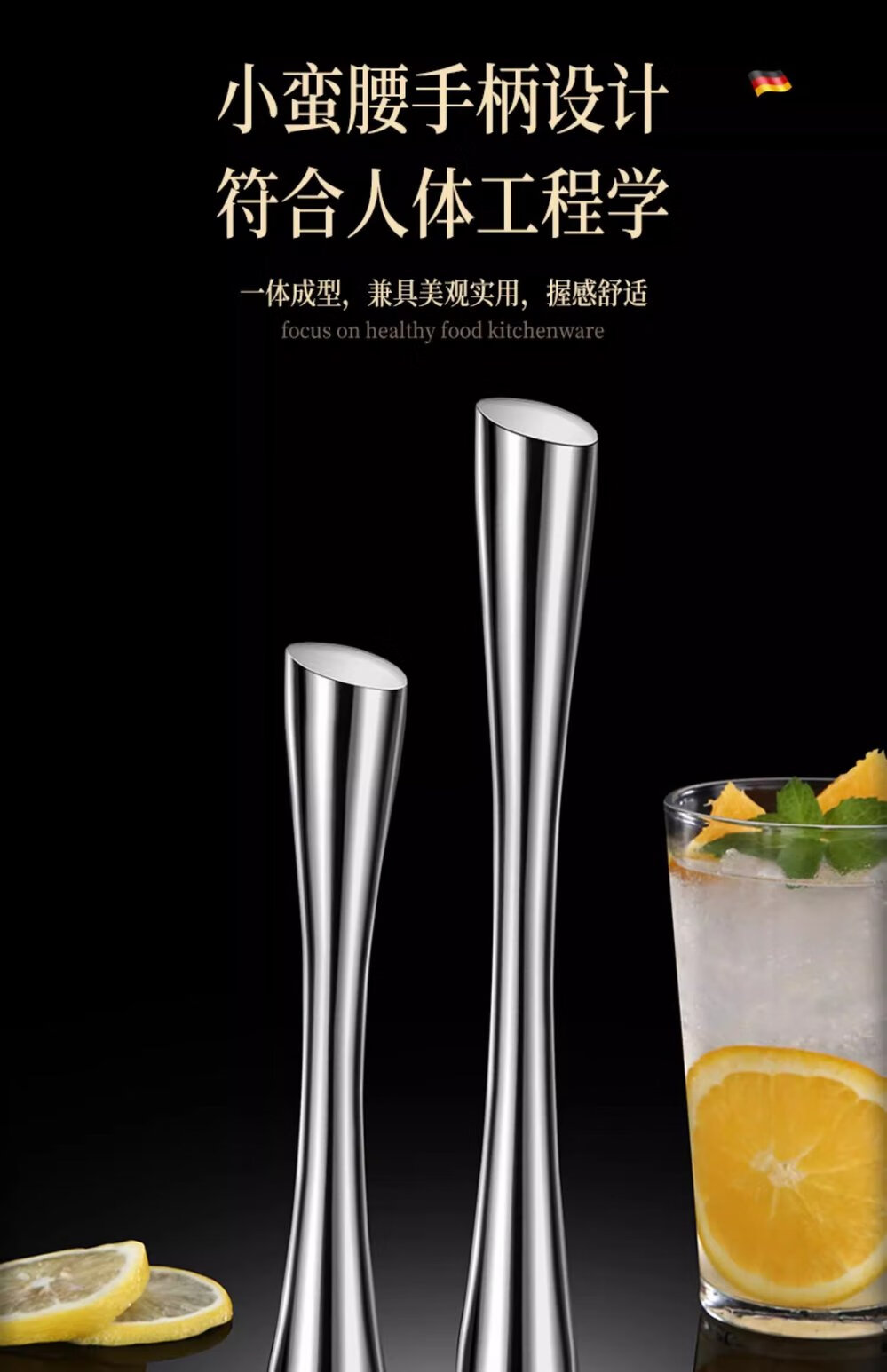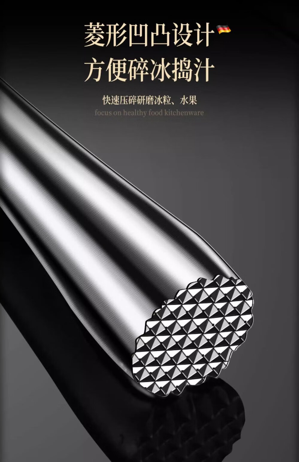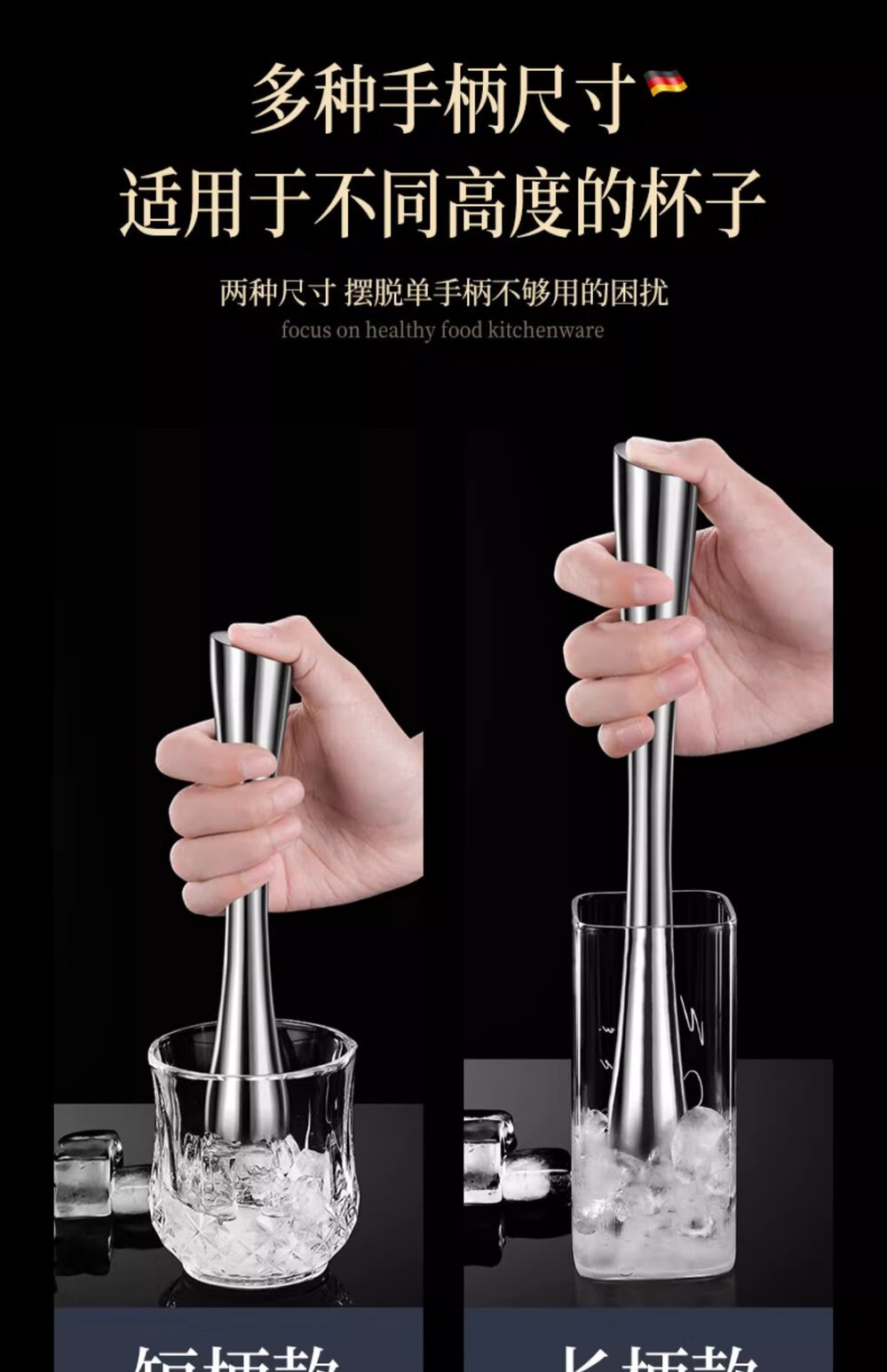 Zhongxun Barra de Martillo de Hielo de Acero Inoxidable Herramienta de Bartending Prensa de Jugo de Frutas Palo de Puré Palo de Jugo de Limón Martillo de Hielo de Cóctel Estilo Corto Palo de Hielo de Acero 304 Completo