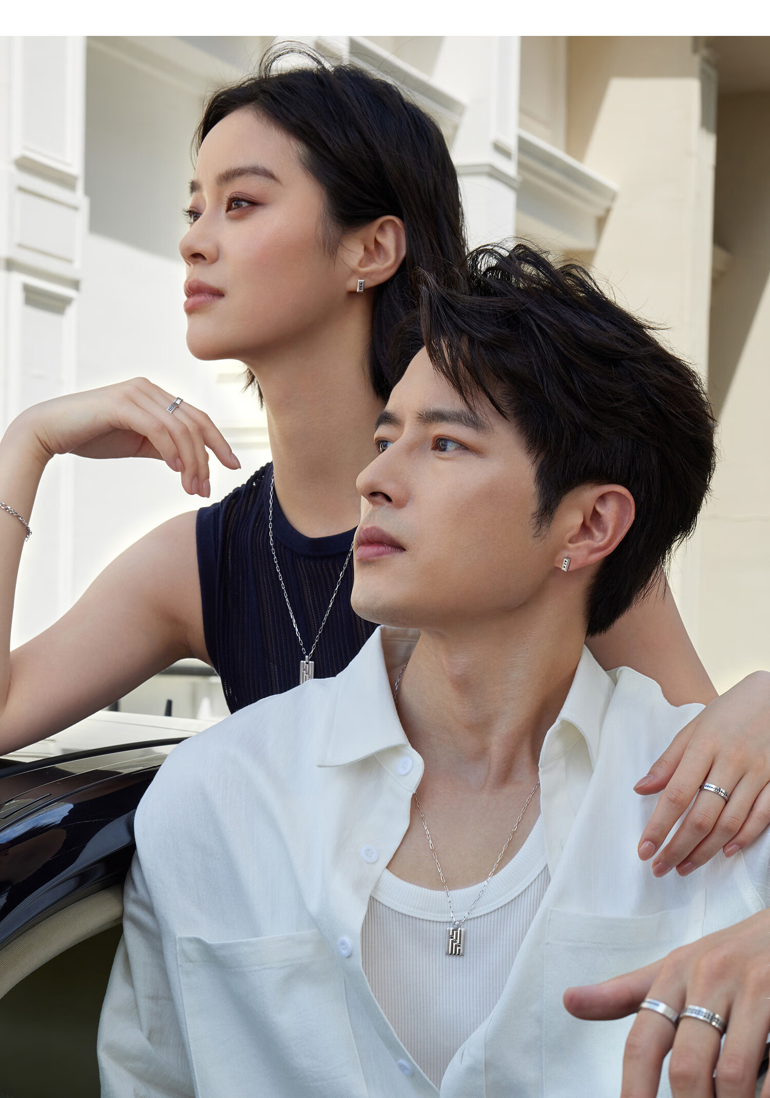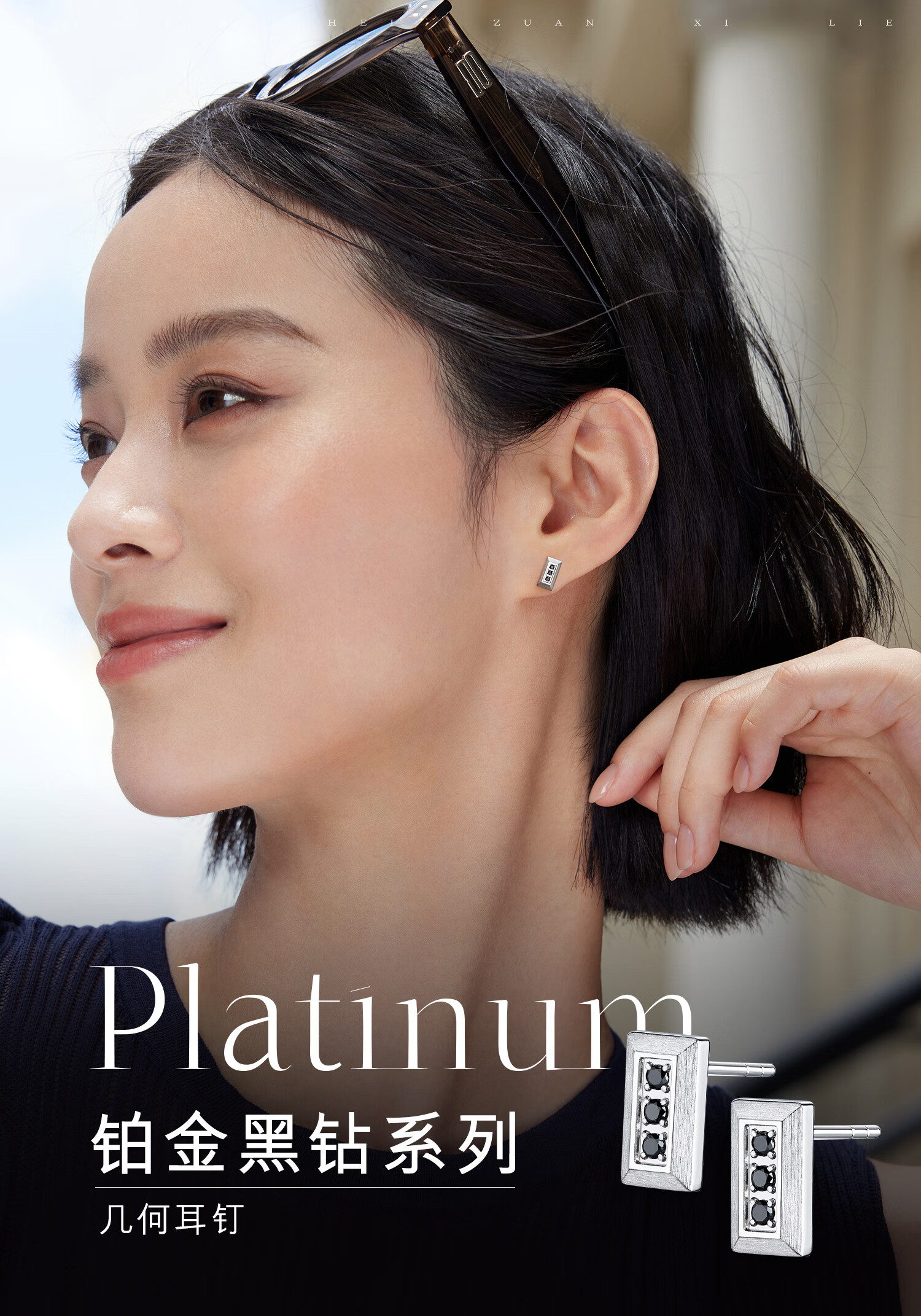 Lukfook Jewelry Black Diamond Series Platinum 950 Geometric Hand Drawn Craftsmanship Platinum Stud Earrings for Couples HEJ0011DS Total Weight 2.86 Grams