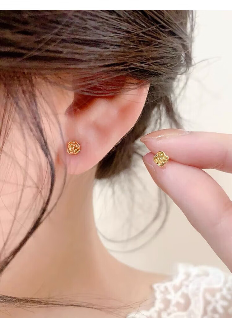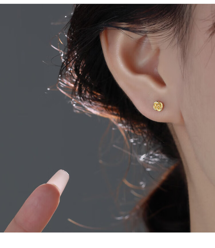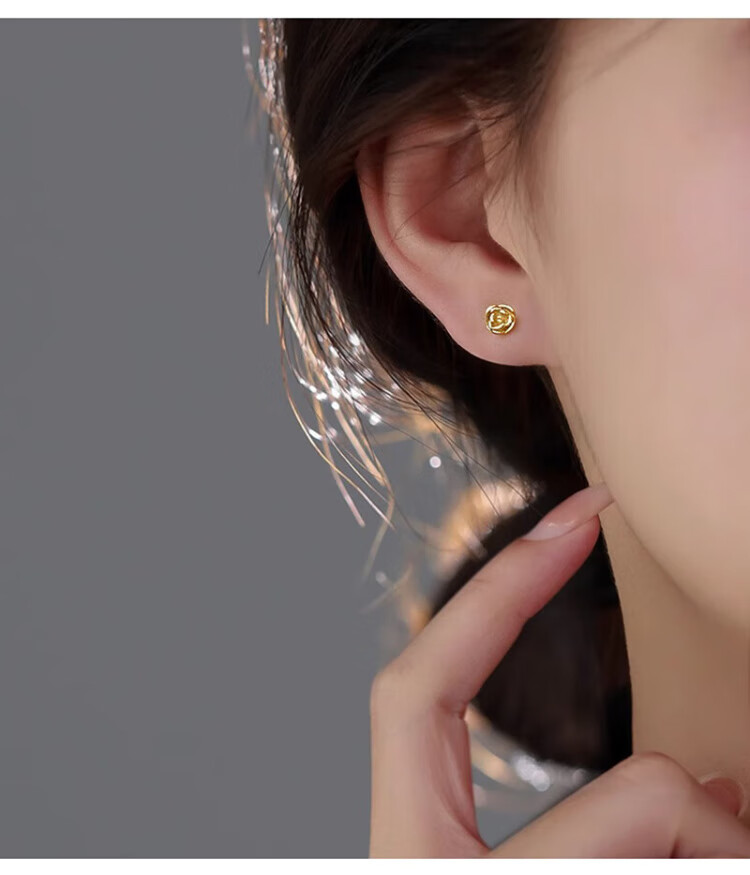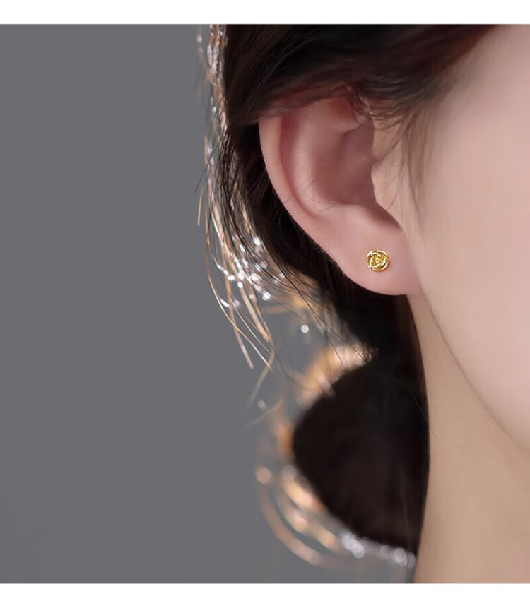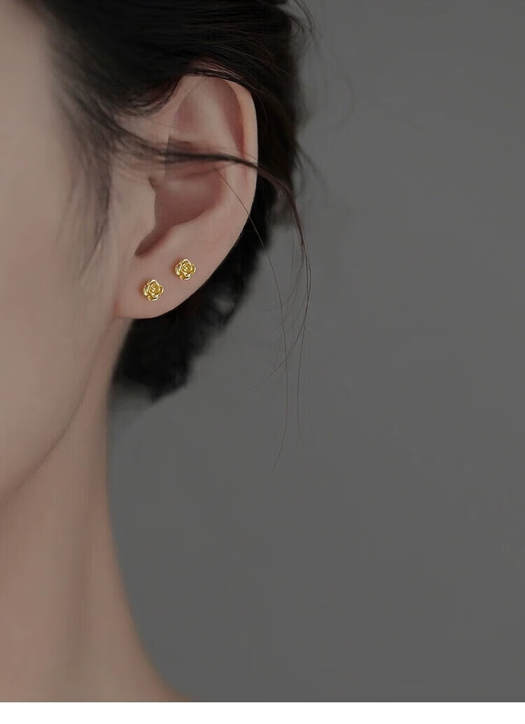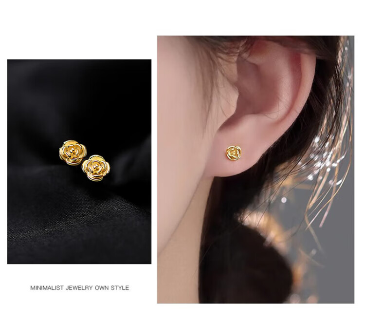 Yumian sterling silver earrings 999 pure silver earrings and earrings 2025 new birthday gifts for girls light luxury niche jewelry accessories a pair of golden rose earrings