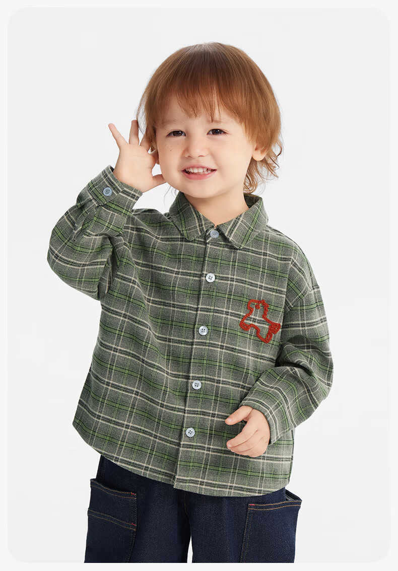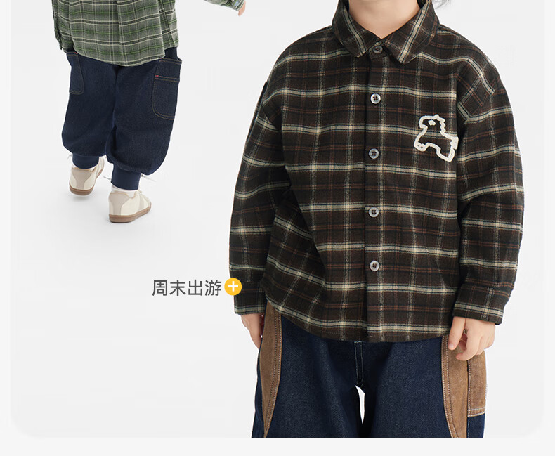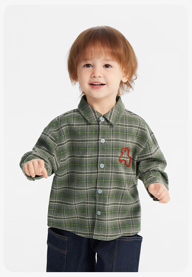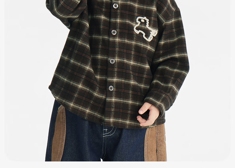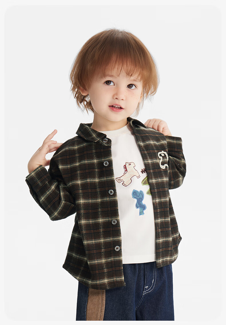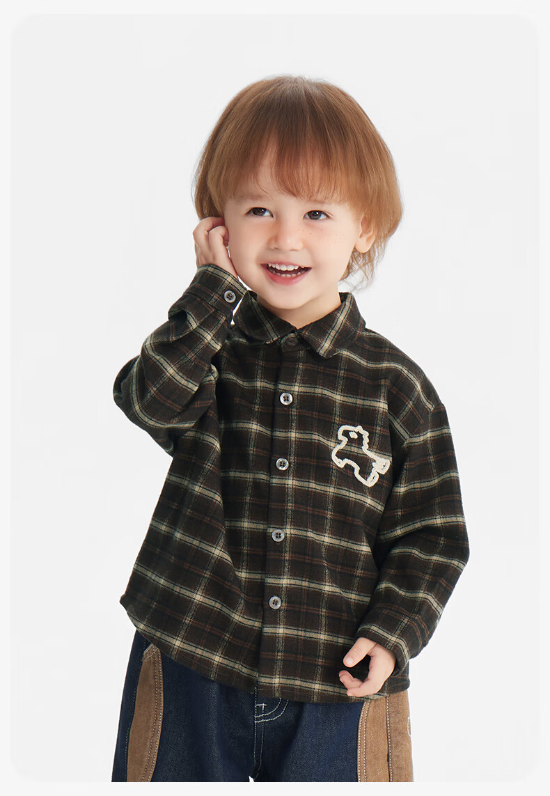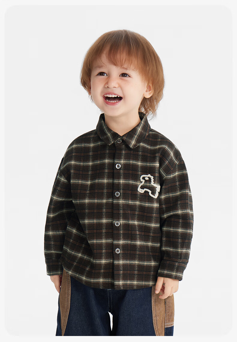 Ciciibear (ciciibear) ciciibear boys plaid shirt autumn 2025 new baby boy long-sleeved shirt jacket children's thermal top red brown group 110