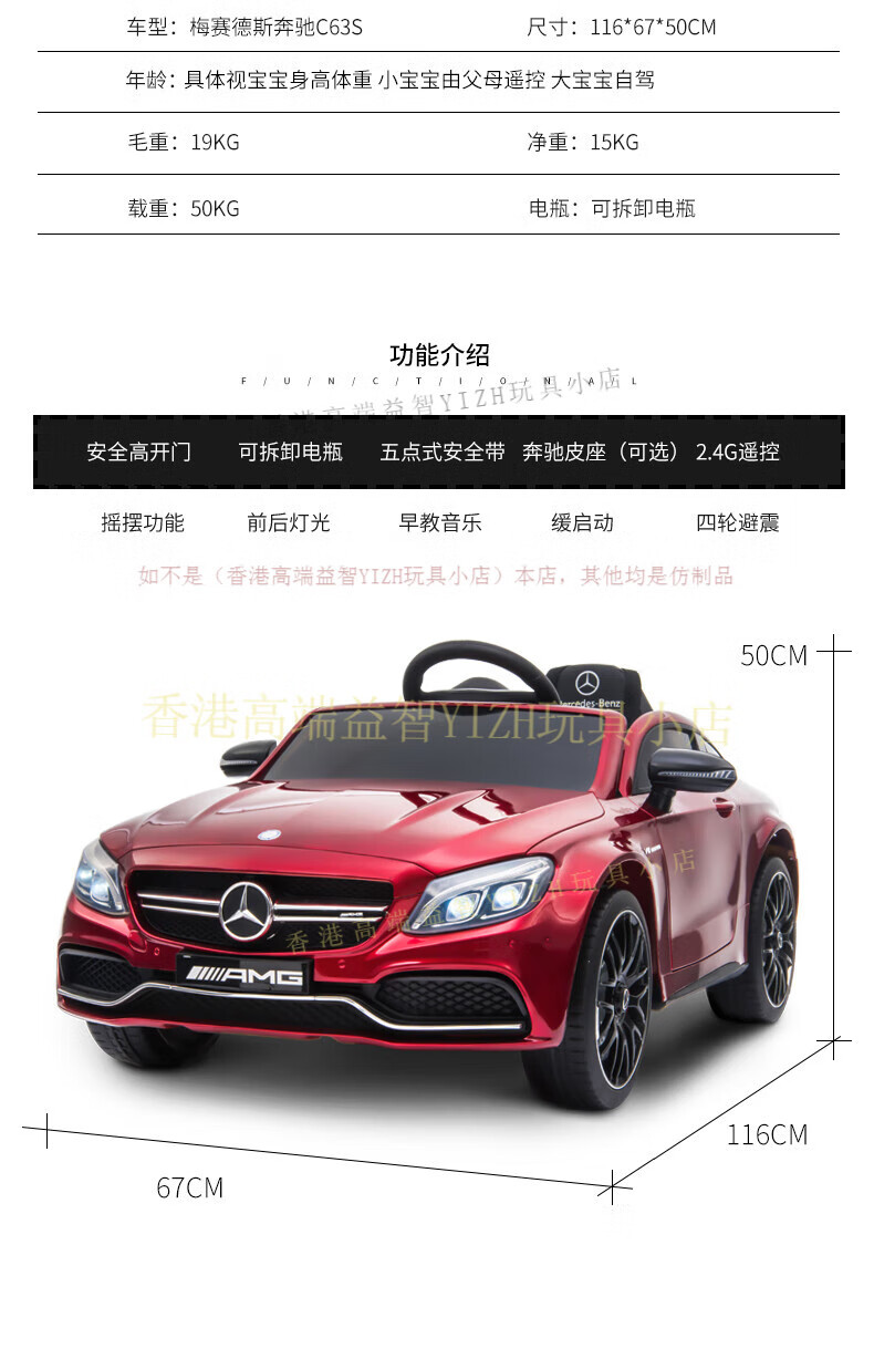 Pushou Mercedes-Benz children's electric car four-wheel drive infant charging remote control toy car for boys and girls 3 years old can seat 1 person, painted red, electric drive