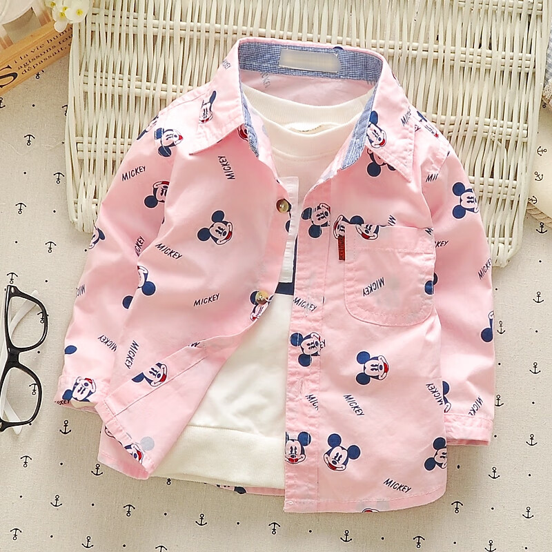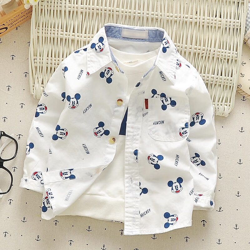 G.duck children's pure cotton shirt spring new fashion trendy boys and girls baby casual cartoon long-sleeved shirt children's clothing Mickey white free socks with purchase 80 cm (recommended height 80 weight 20 Jin Jin equals 0.5 kg hang tag 2