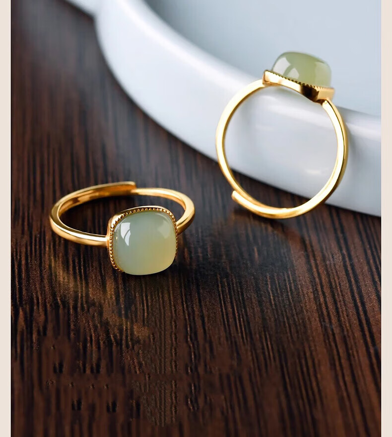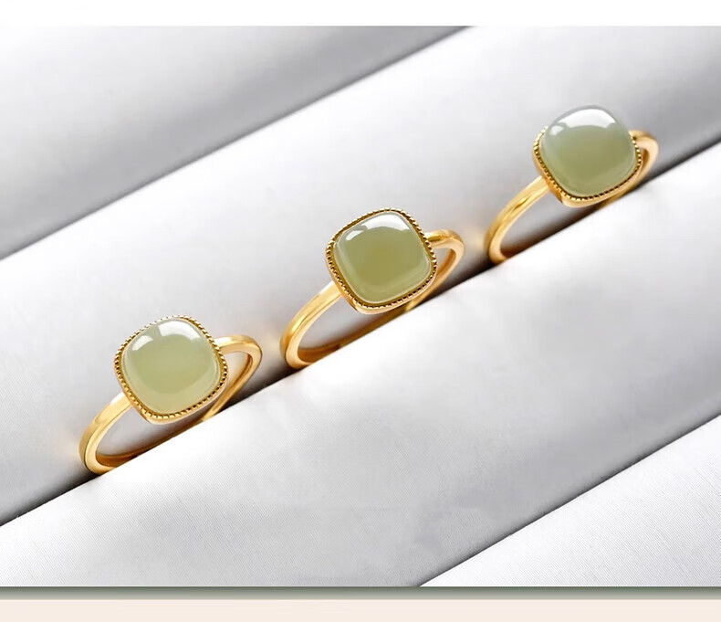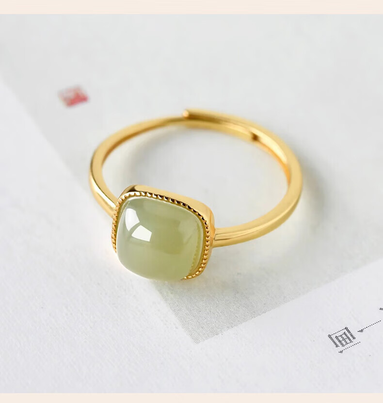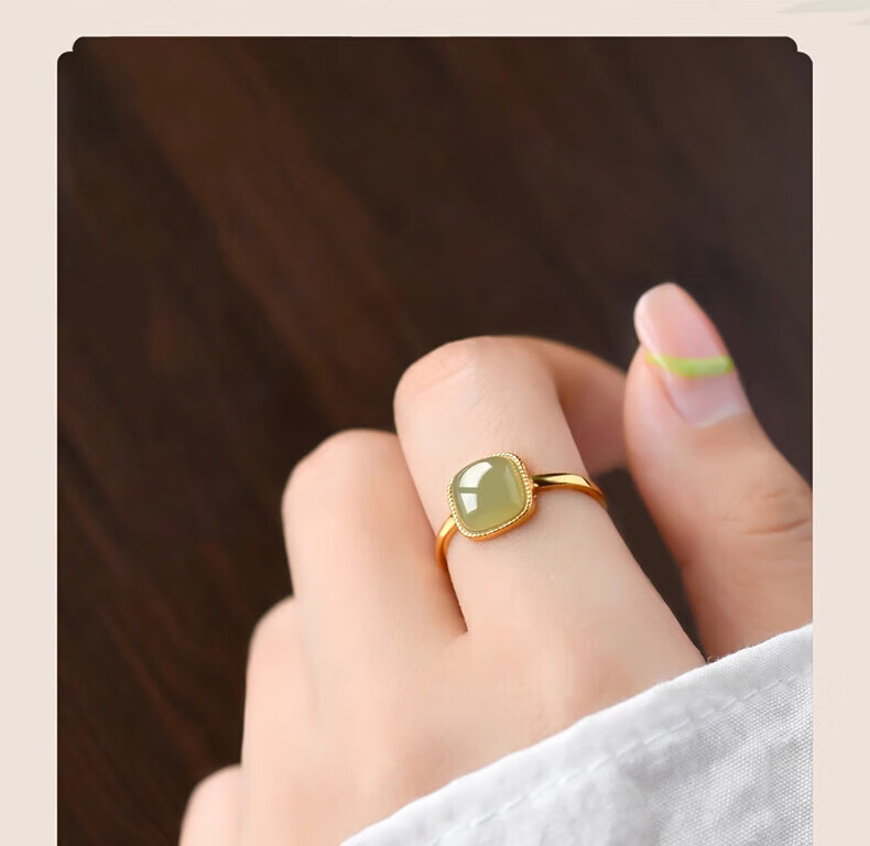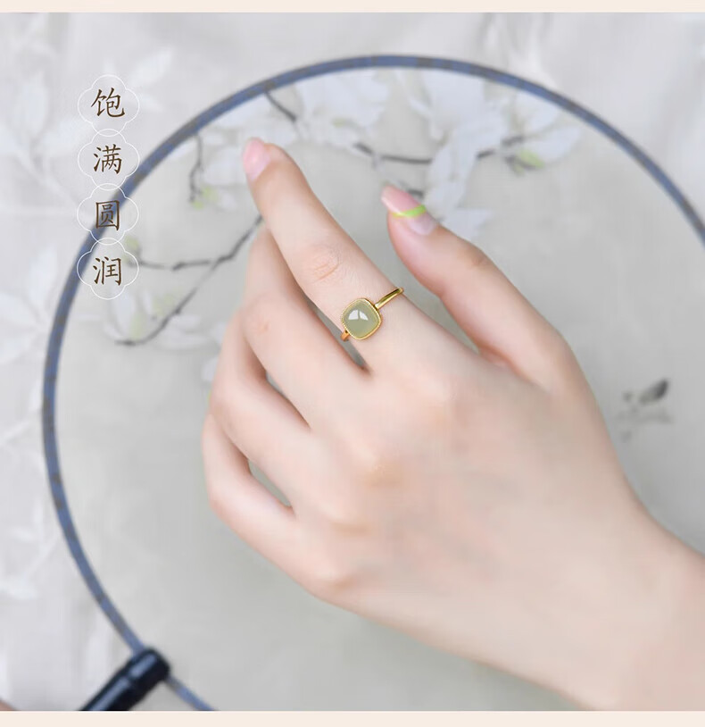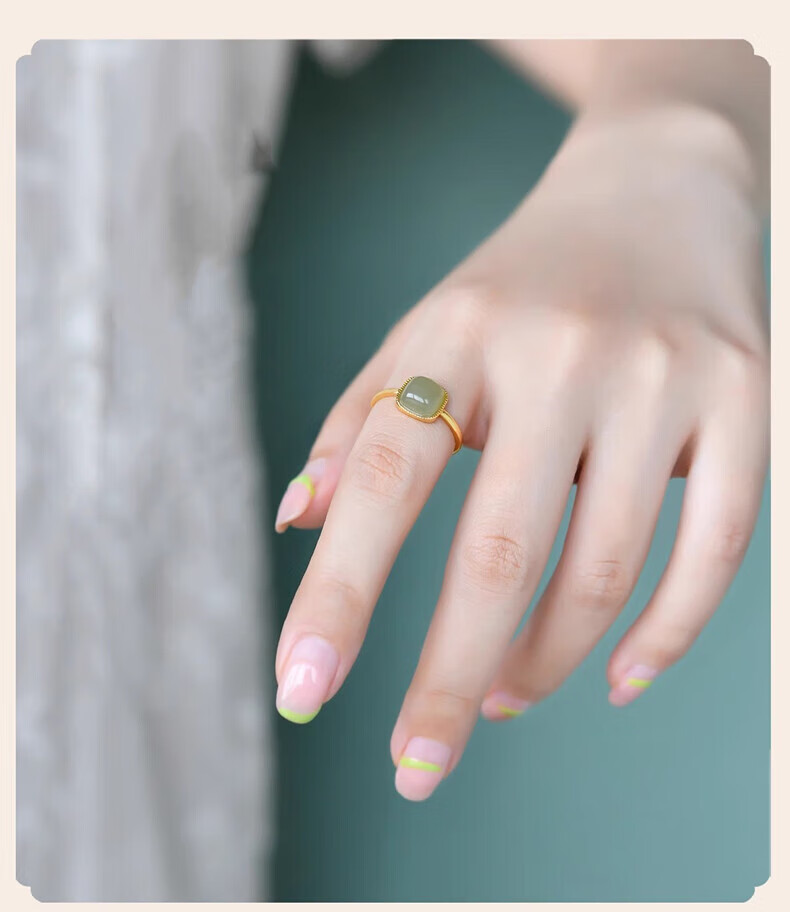 Lao Fengxiang small sugar cube ancient gold deep Hetian jade couple ring women's ring birthday gift girls silver jewelry small sugar cube ring ancient gold deep Hetian jade + certificate + brand gift box