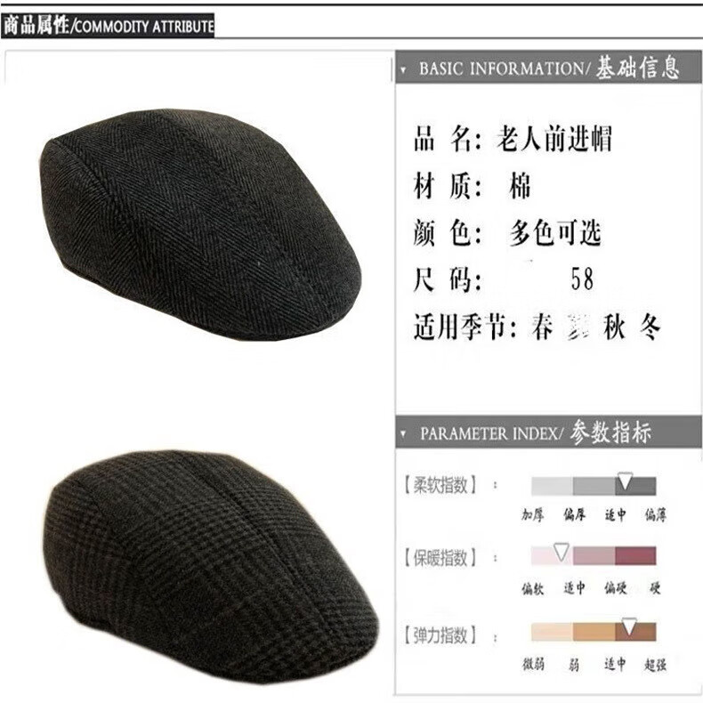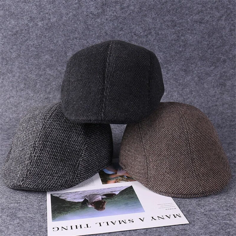 Zhongfei Sombrero Otoño e Invierno para Hombres Nuevo Sombrero de Avance para Personas Mayores y de Mediana Edad Gorra de Visera cálida Ocio al Aire Libre Sombrero de Avance de Lana versátil Sarga Gris Oscuro Talla única