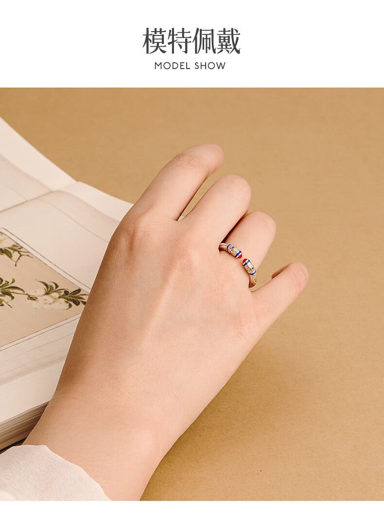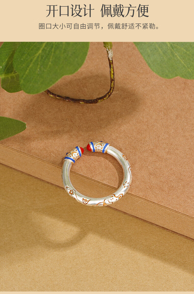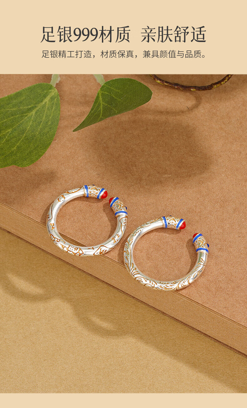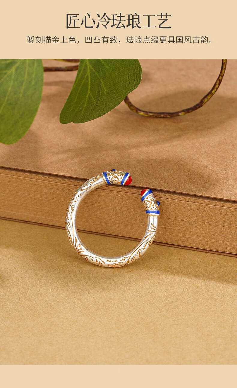 Lao Fengxiang gold-painted Tang grass pattern women's silver 999 open couple ring women's ring birthday gift girl silver jewelry pure silver gold-painted lucky cat open ring + certificate + brand gift box