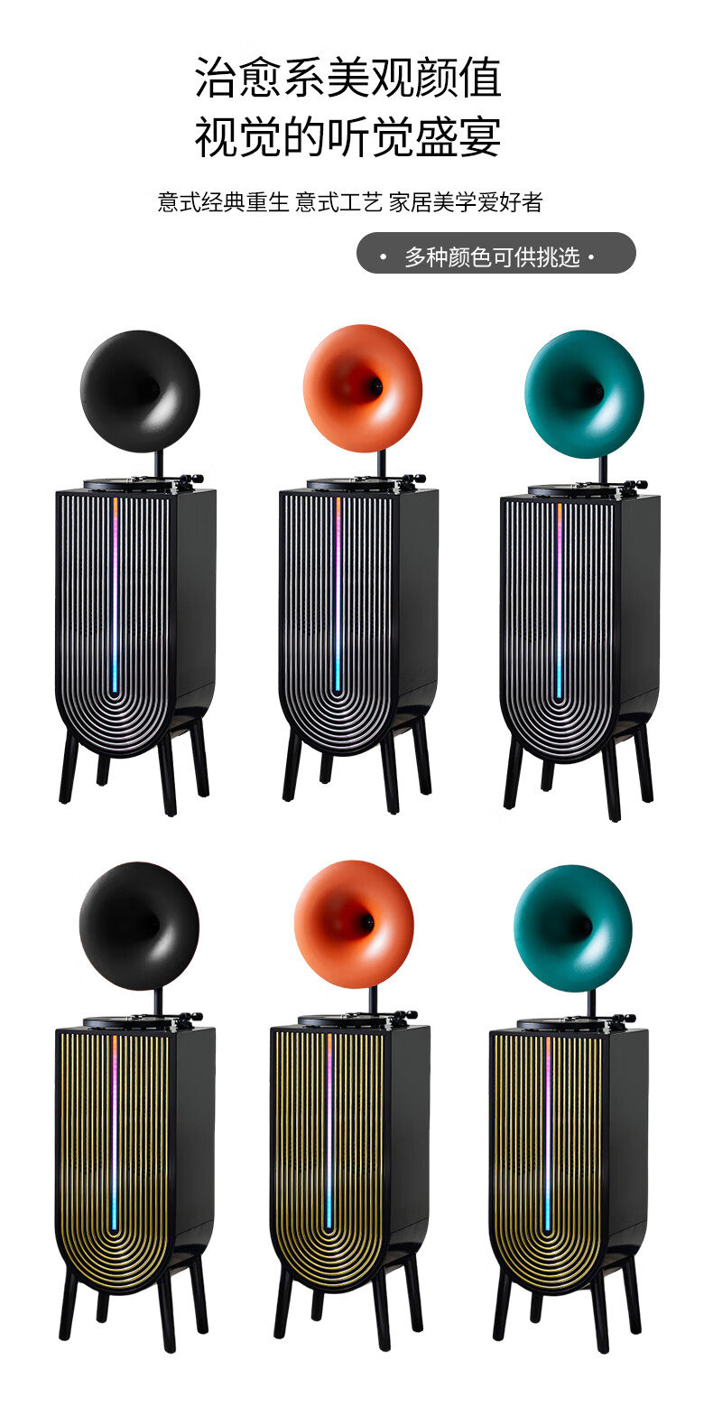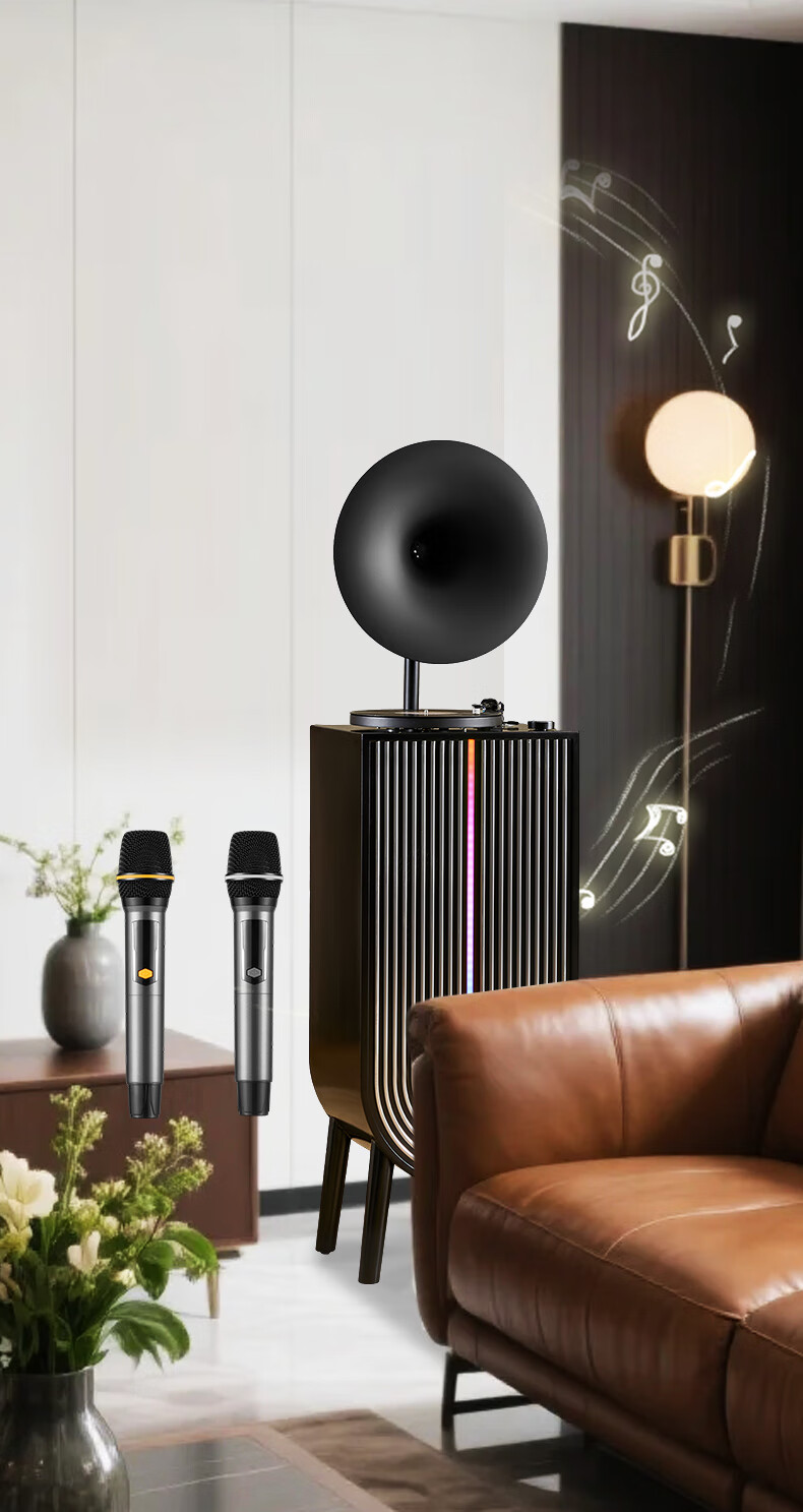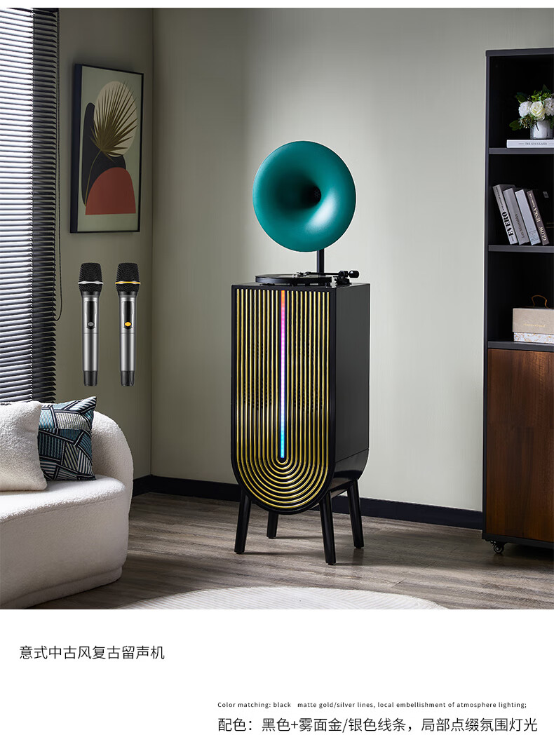 Otieno Modern Karaoke Vinyl Record Player Nordic Light Luxury Living Room Phonograph LP Record Player Bluetooth Audio Player Amplifier CD Player Professional Grade Gramophone CD Vending Machine Orange Speaker + U Disk + Vinyl Record Player + Microphone*2
